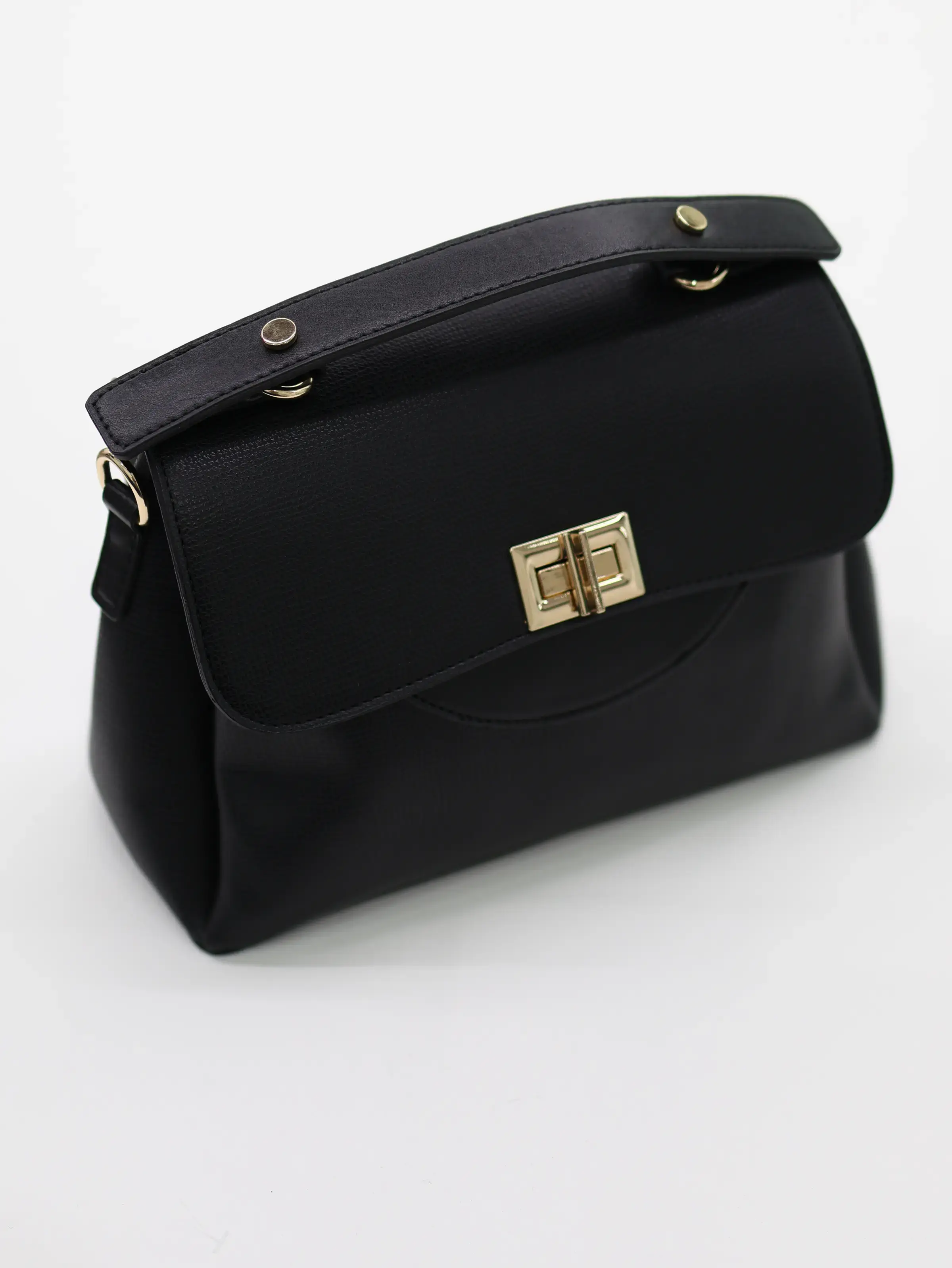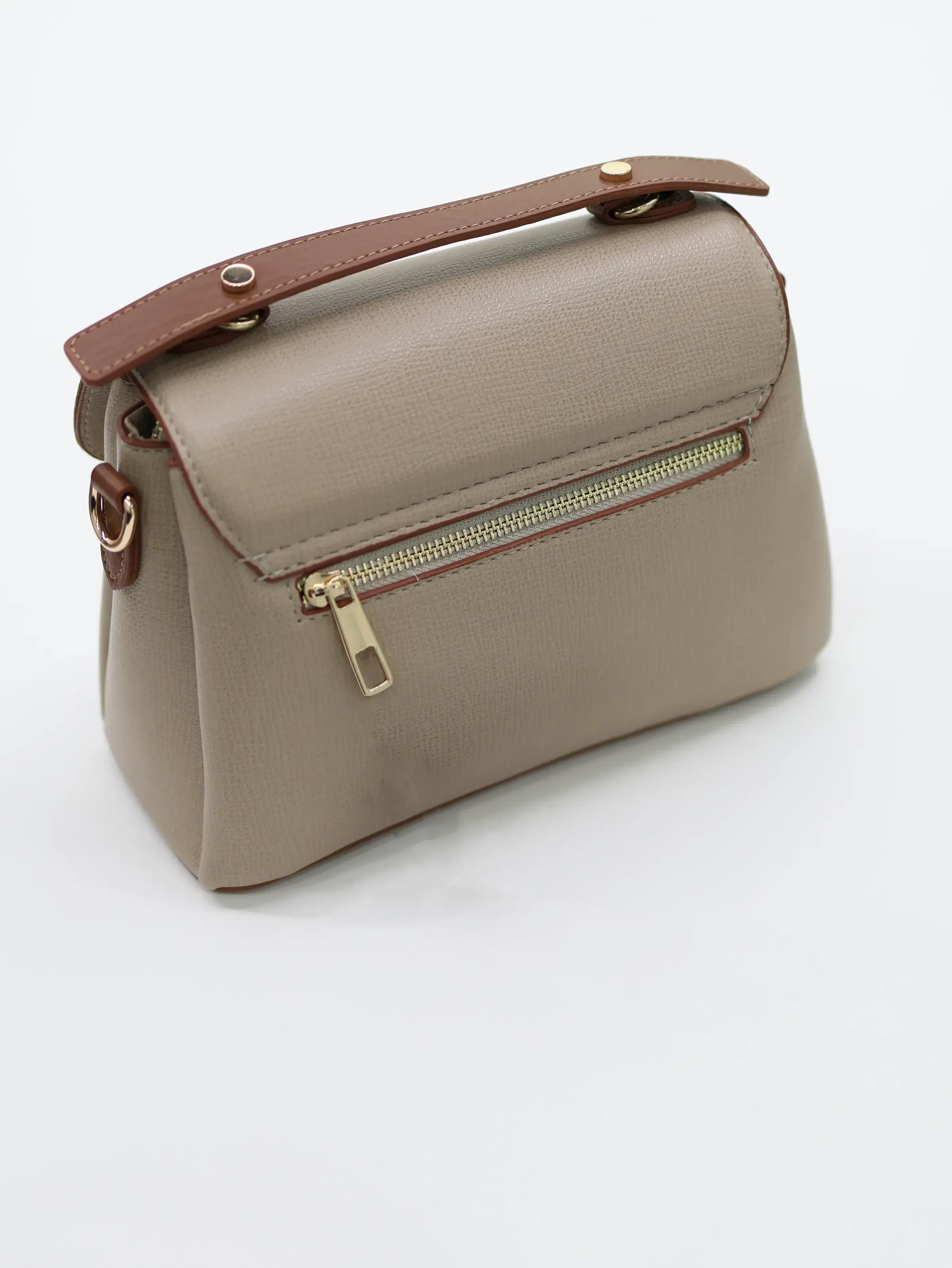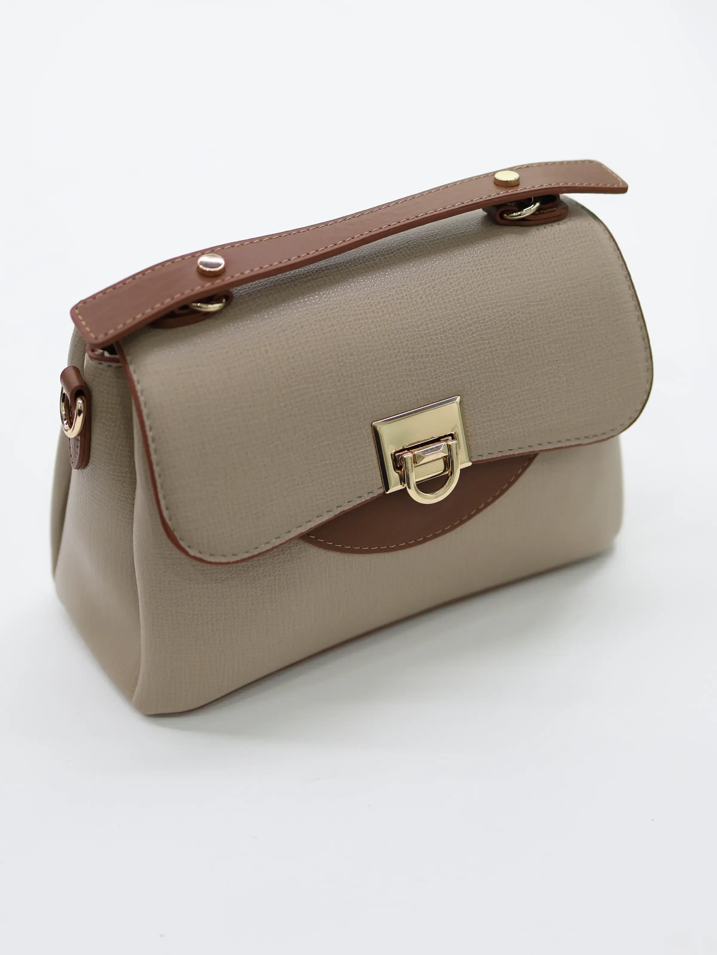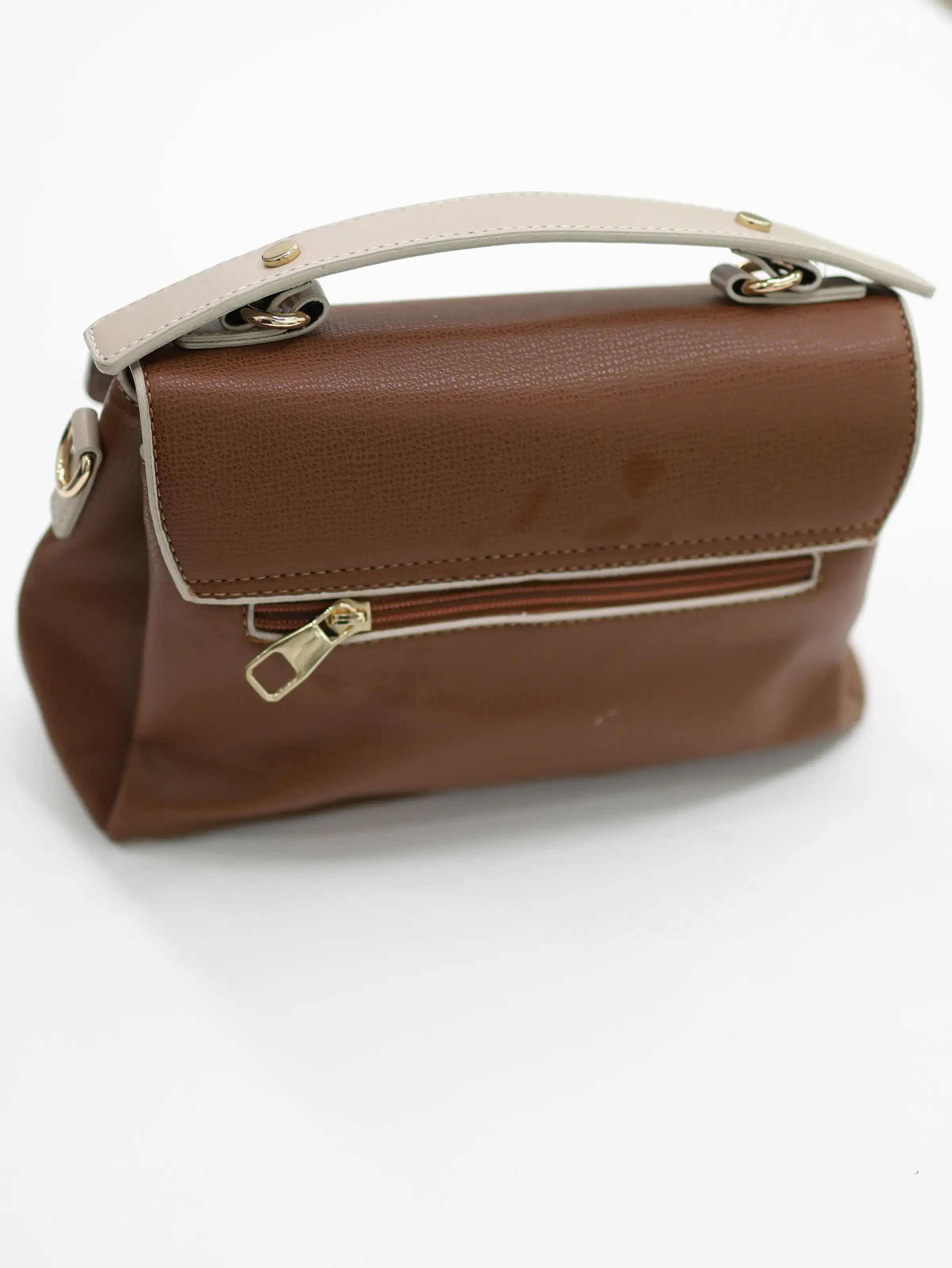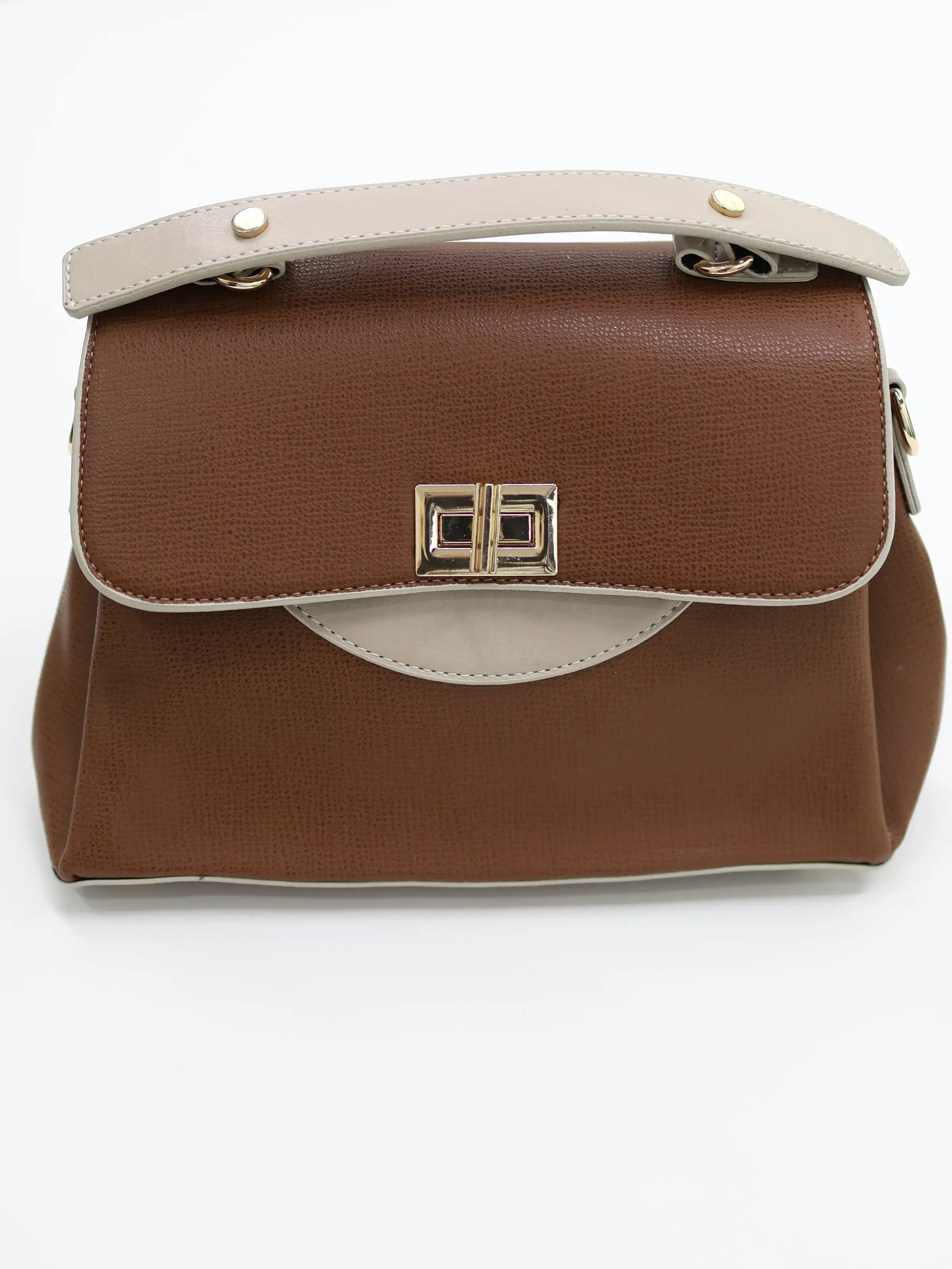 حقيبة يد أنيقة بتصميم كلاسيكي، مزودة بمقبض علوي عملي وإغلاق معدني أمامي يضفي لمسة راقية. تجمع بين العملية والفخامة، مما يجعلها خياراً مثالياً للإطلالات اليومية والمناسبات الرسمية