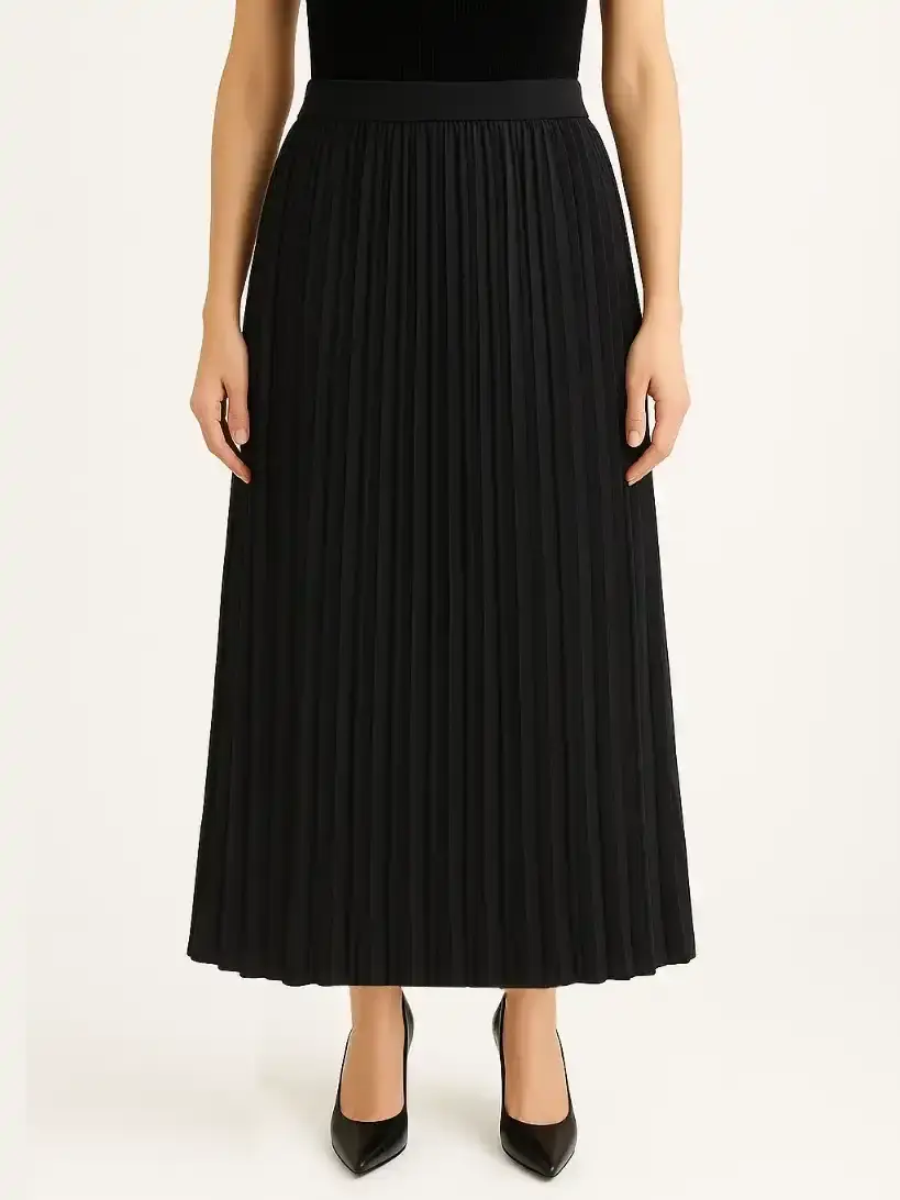 تنورة نسائية خام بوبلين مع سير في الخصر. قطعة كلاسيكية وعصرية بتصميم كسرات أنيق، تمنحك حركة انسيابية وجاذبية خالدة