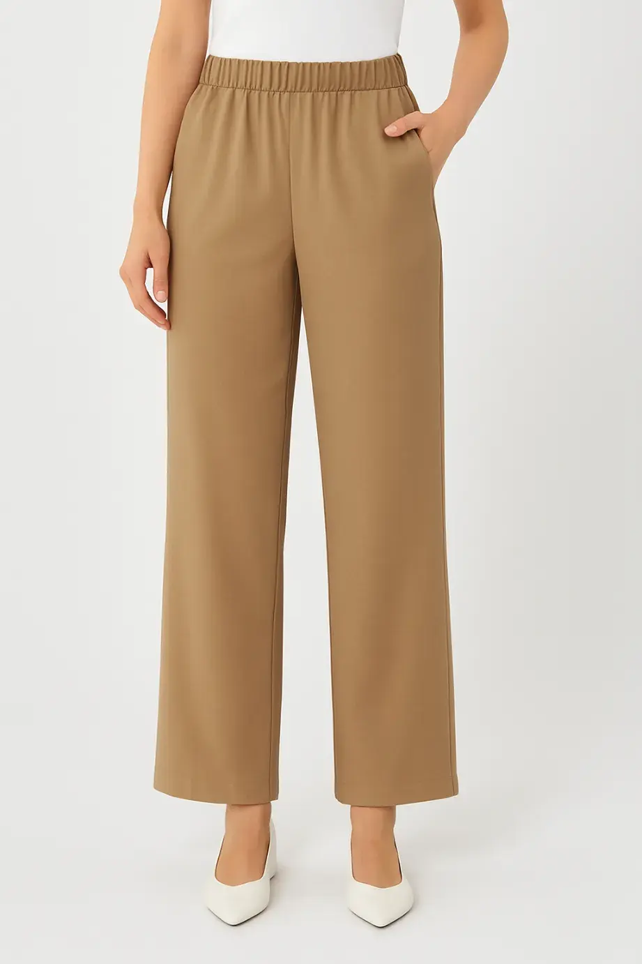 HomeCrepe Pants - Earthy Beige - 6Crepe Pants - Earthy Beige - 6BlackWhite0DescriptionComfortable and modern women's trousers crafted from crepe fabric, featuring a straight cut with a full waist tie, offering a stylish and practical look