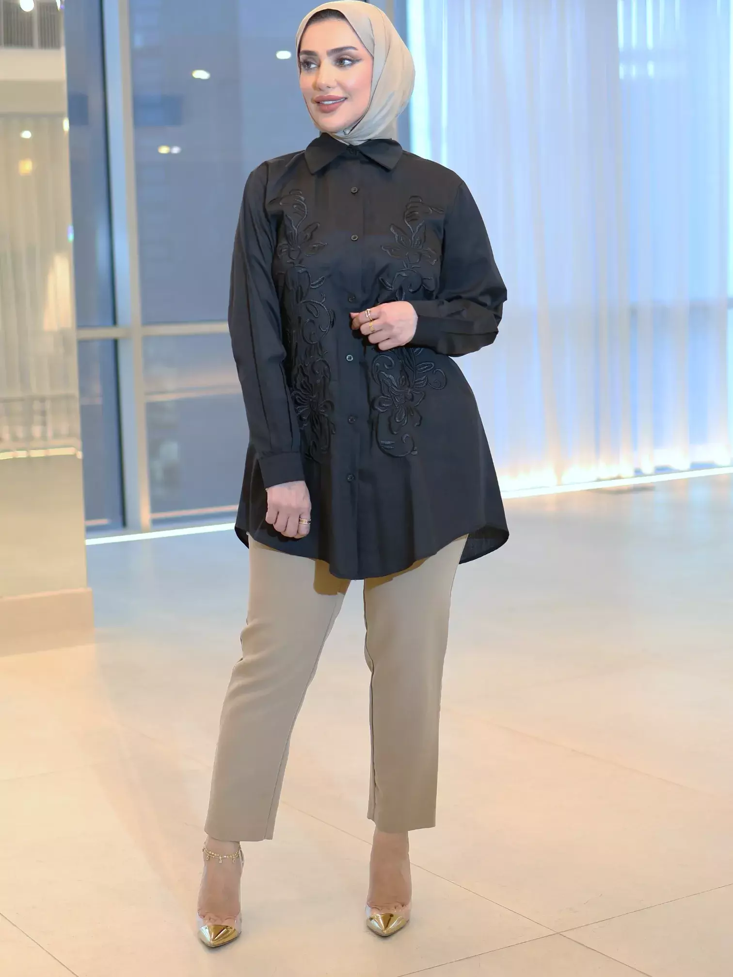HomeDistinctive Cotton Shirt - Black - 4Distinctive Cotton Shirt - Black - 4BlackWhite0DescriptionA stylish and comfortable women's shirt crafted from cotton fabric, featuring artistic embroidery adorning the chest area, offering a unique and modern look