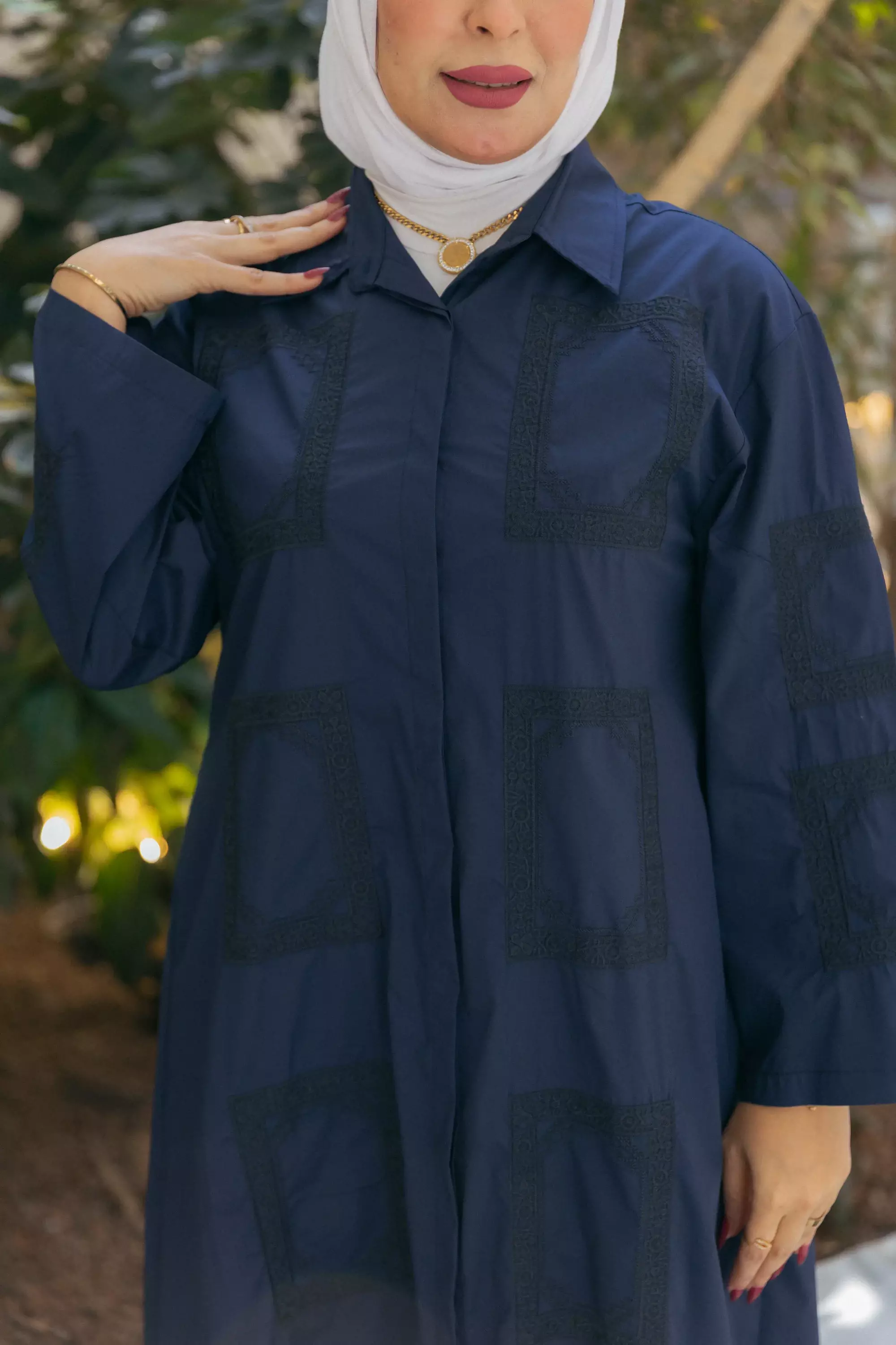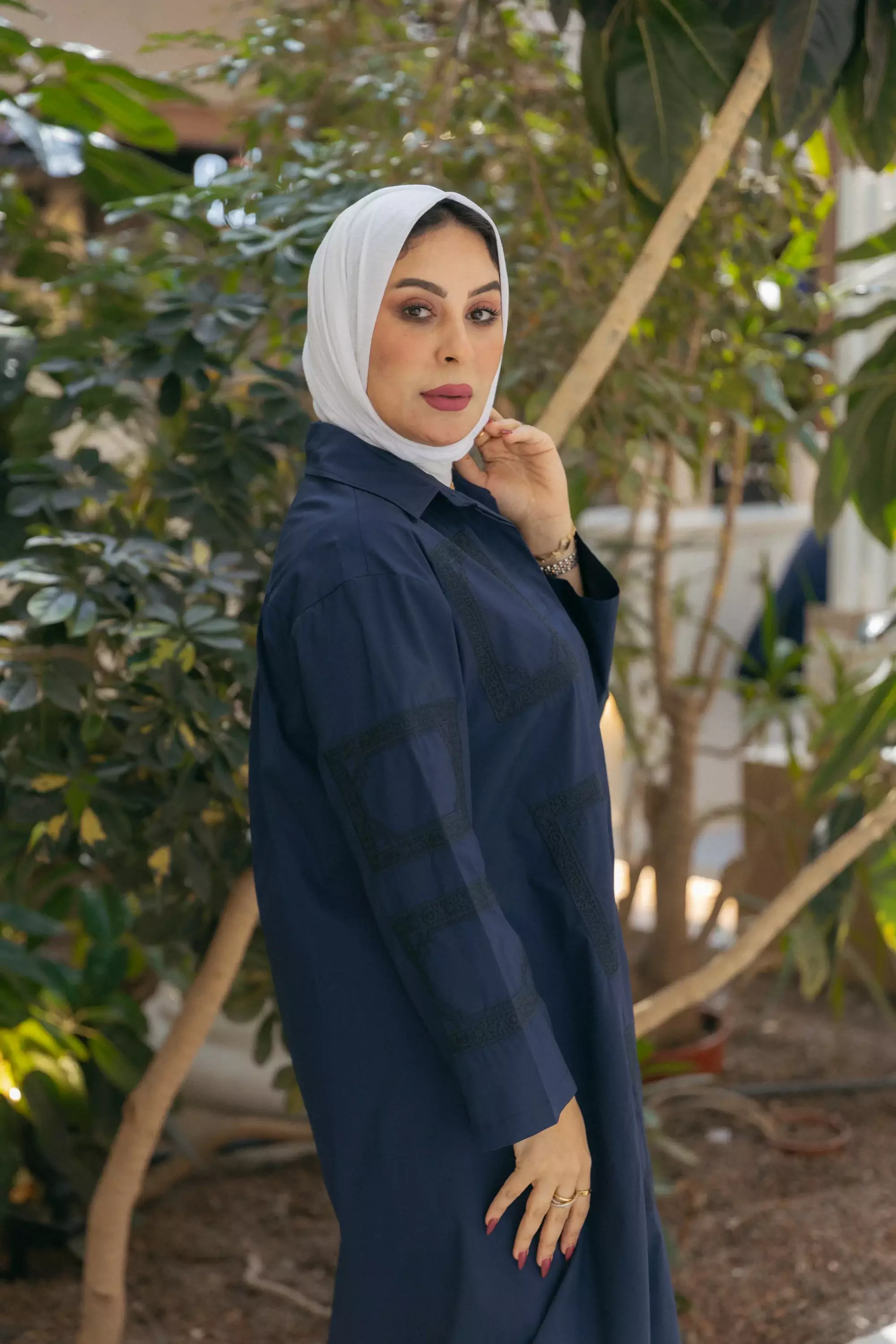 HomeModern Cotton Dress - Navy - 2Modern Cotton Dress - Navy - 2BlackWhite0DescriptionAn elegant women's cotton dress, featuring sophisticated embroidery that adorns the chest and sleeves to add a stylish aesthetic touch to your look
