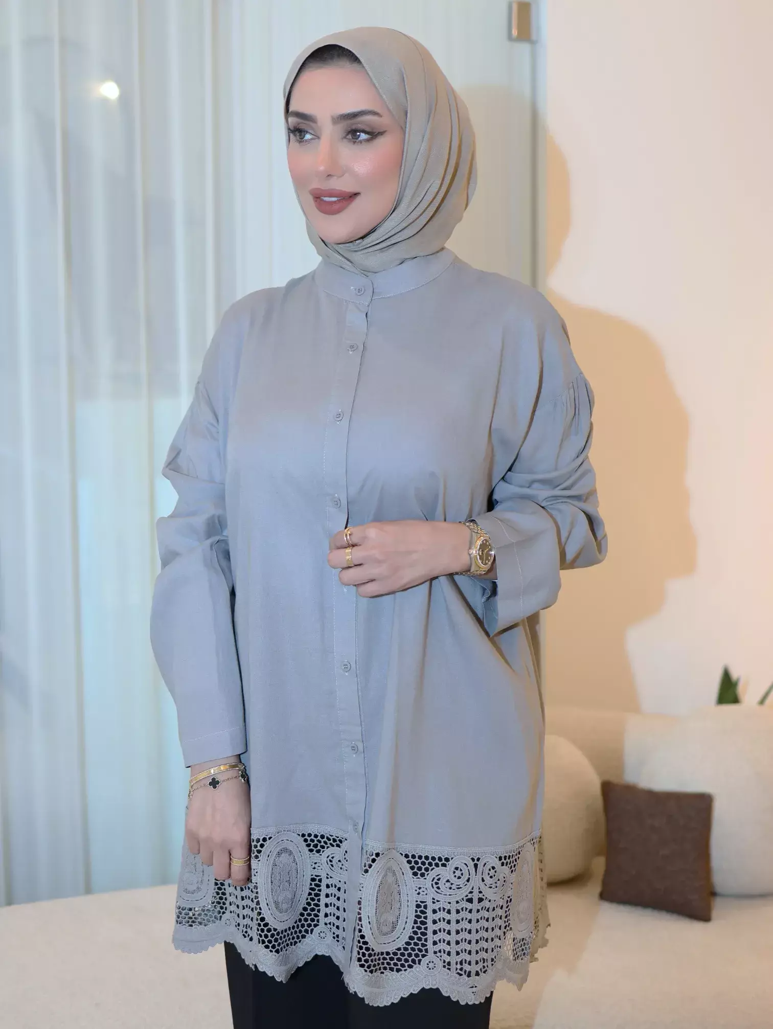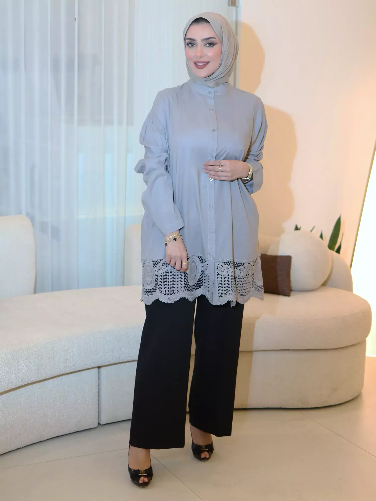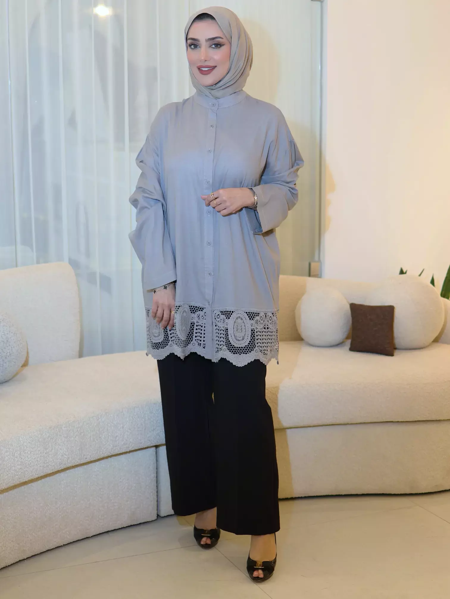 الرئيسيةقميص من خام الأفوالقميص من خام الأفوالبلاك وايت0الوصفقميص نسائي ناعم ومريح من خام الأفوال، يتميز بتصميم أنيق مع دانتيل بنفس لون القميص يضفي لمسة من الأنوثة والرقياللونرمادياسود