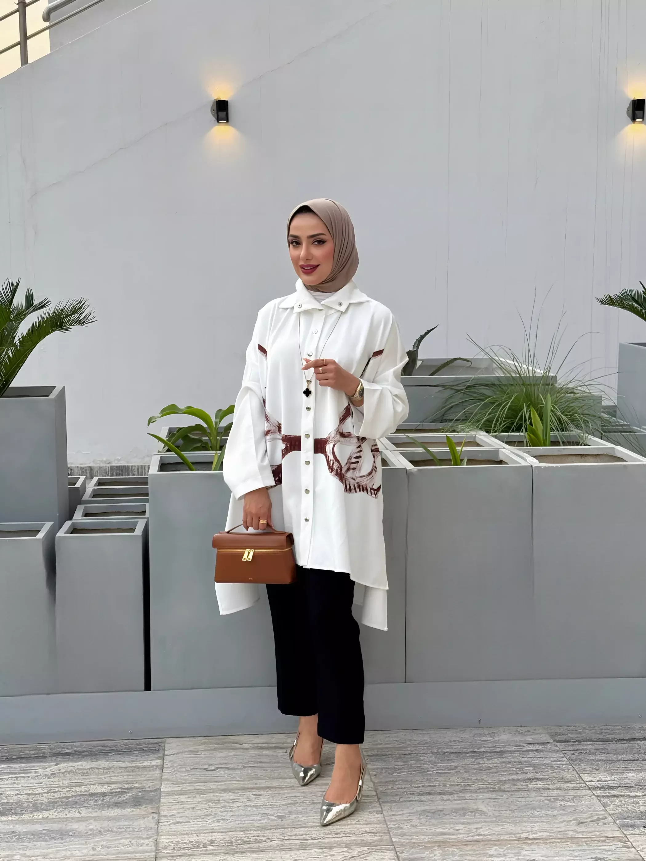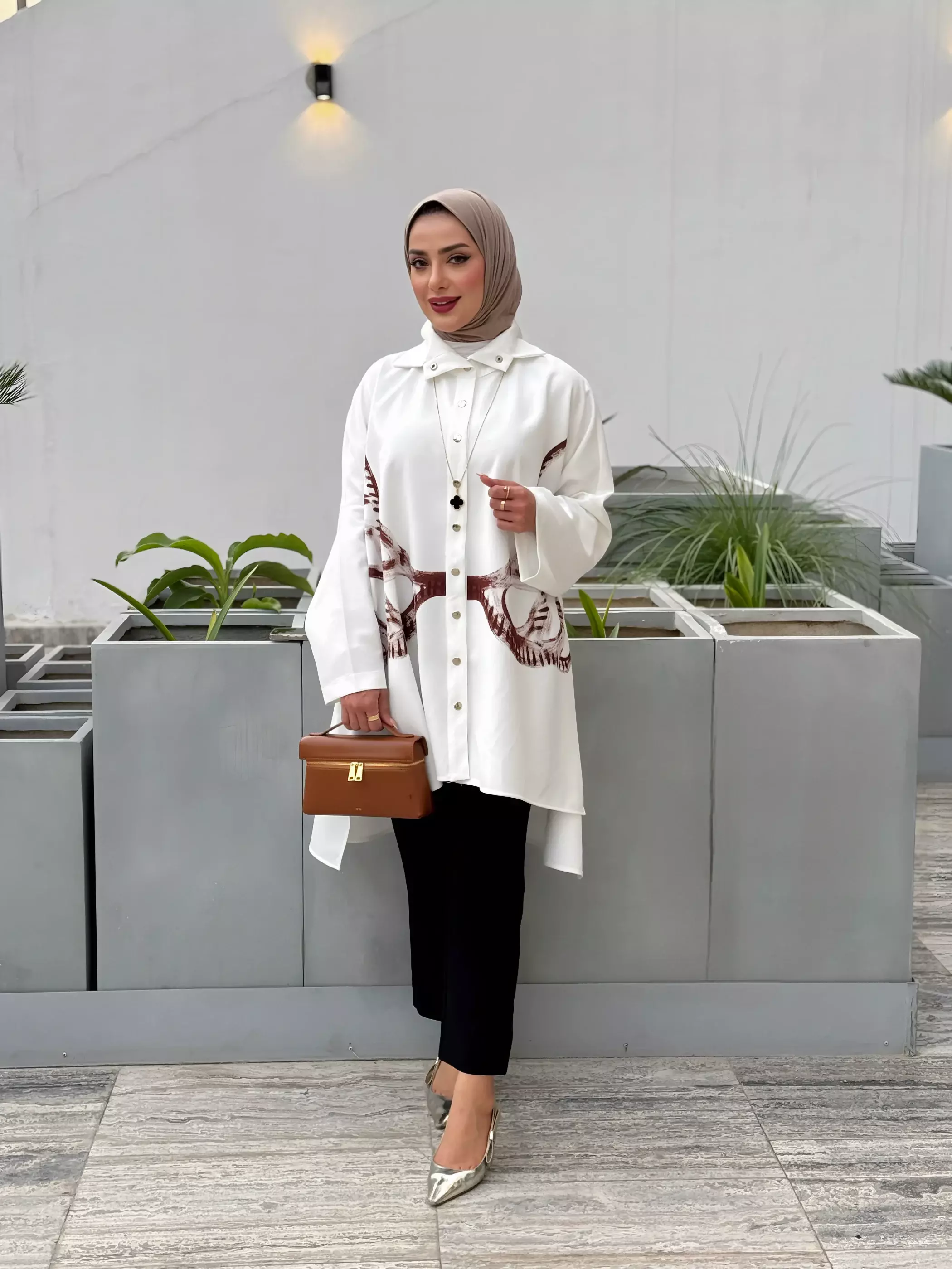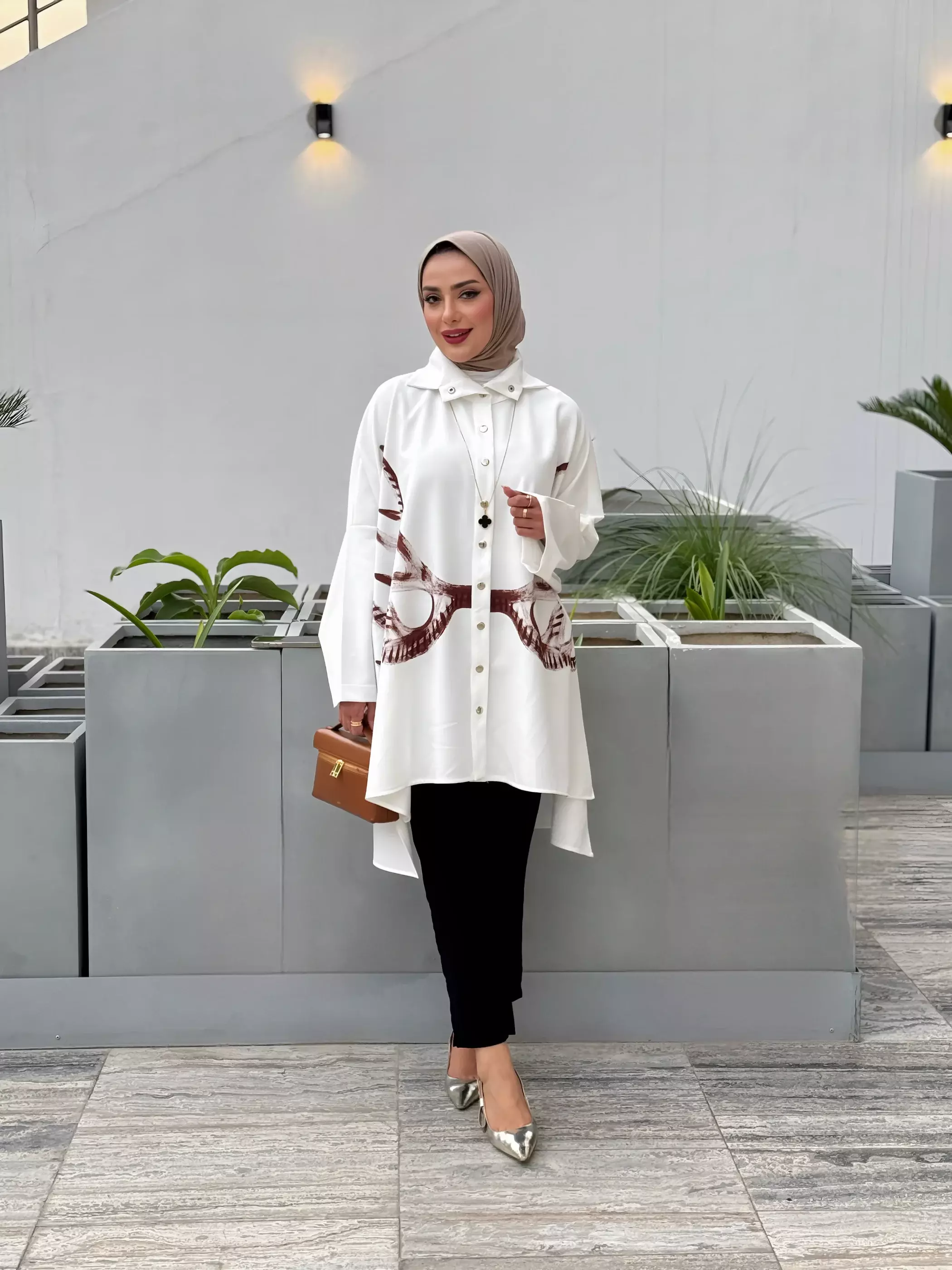 الرئيسيةقميص بطبعة فنية - اوف وايت - FSقميص بطبعة فنية - اوف وايت - FSبلاك وايت0الوصف قميص نسائي من الكريب بانسيابية جذابة وطبعة فنية مميزة على الصدر
