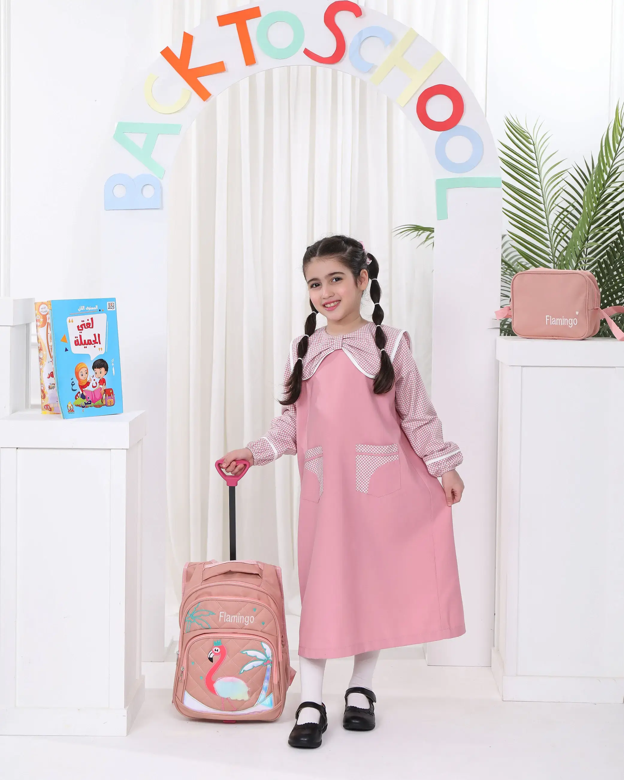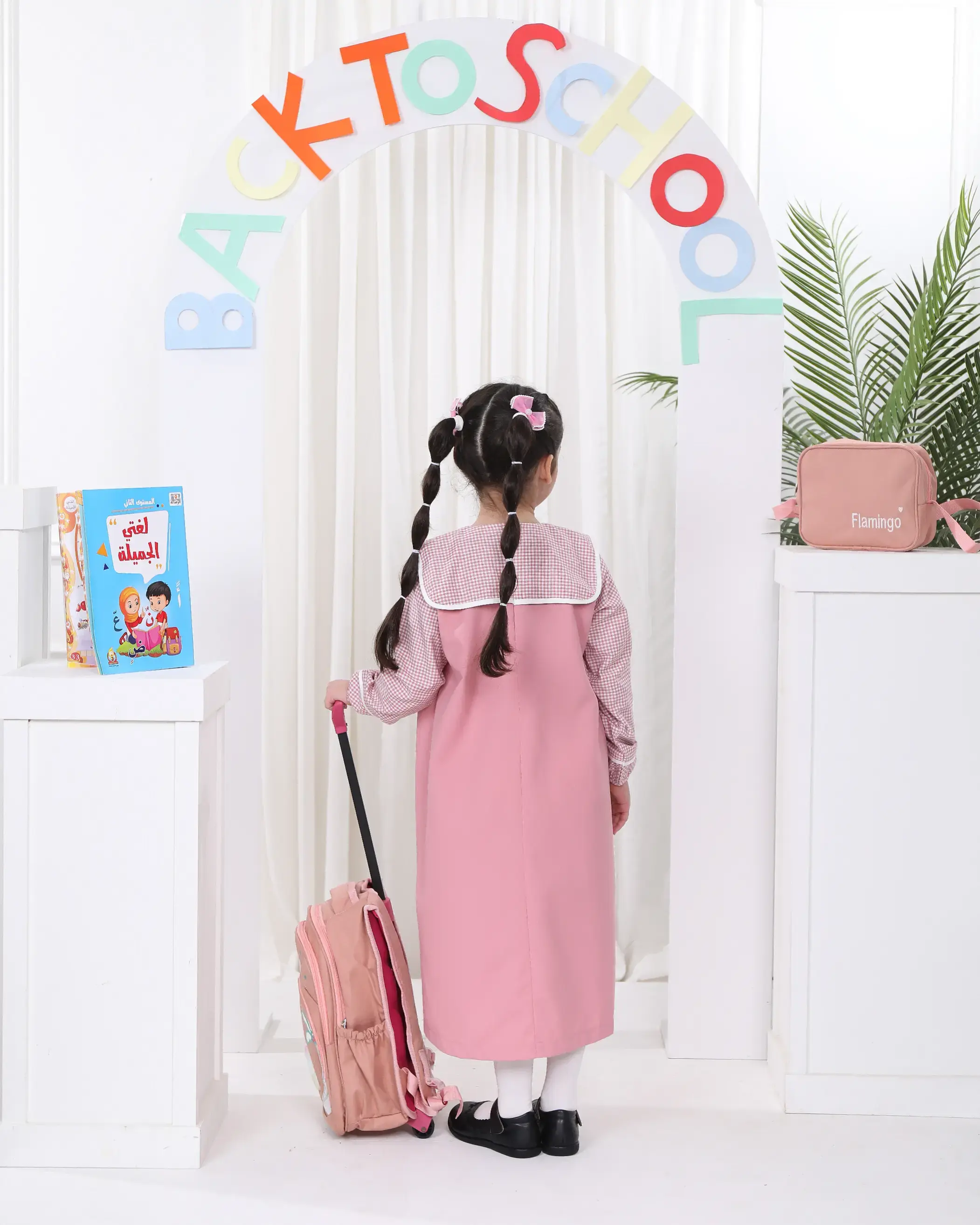 الرئيسيةطقم مدرسي بياقة فيونكة - وردي - 12طقم مدرسي بياقة فيونكة - وردي - 12بلاك وايت0الوصفطقم مدرسي لمرحلة الابتدائي، يتميز بقميص ذي أكمام طويلة مزينة بنقشة كاروهات، ومريول أنيق بفيونكة عند الياقة