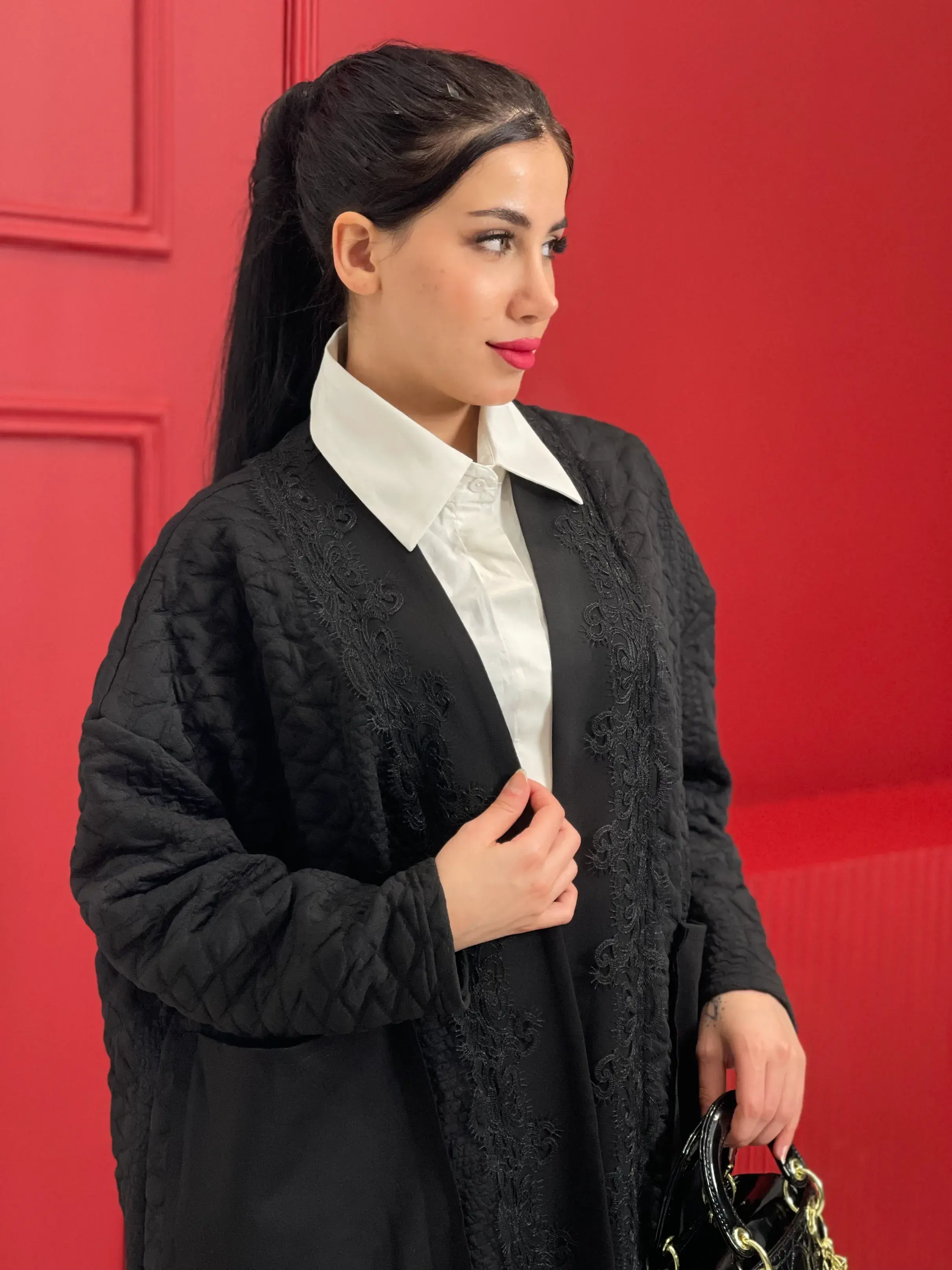 بلاك وايت | أزياء وملابس محجبات | جاكيت طويل نسائي - اسود - FS