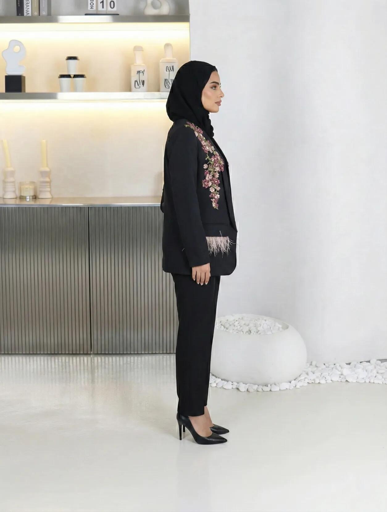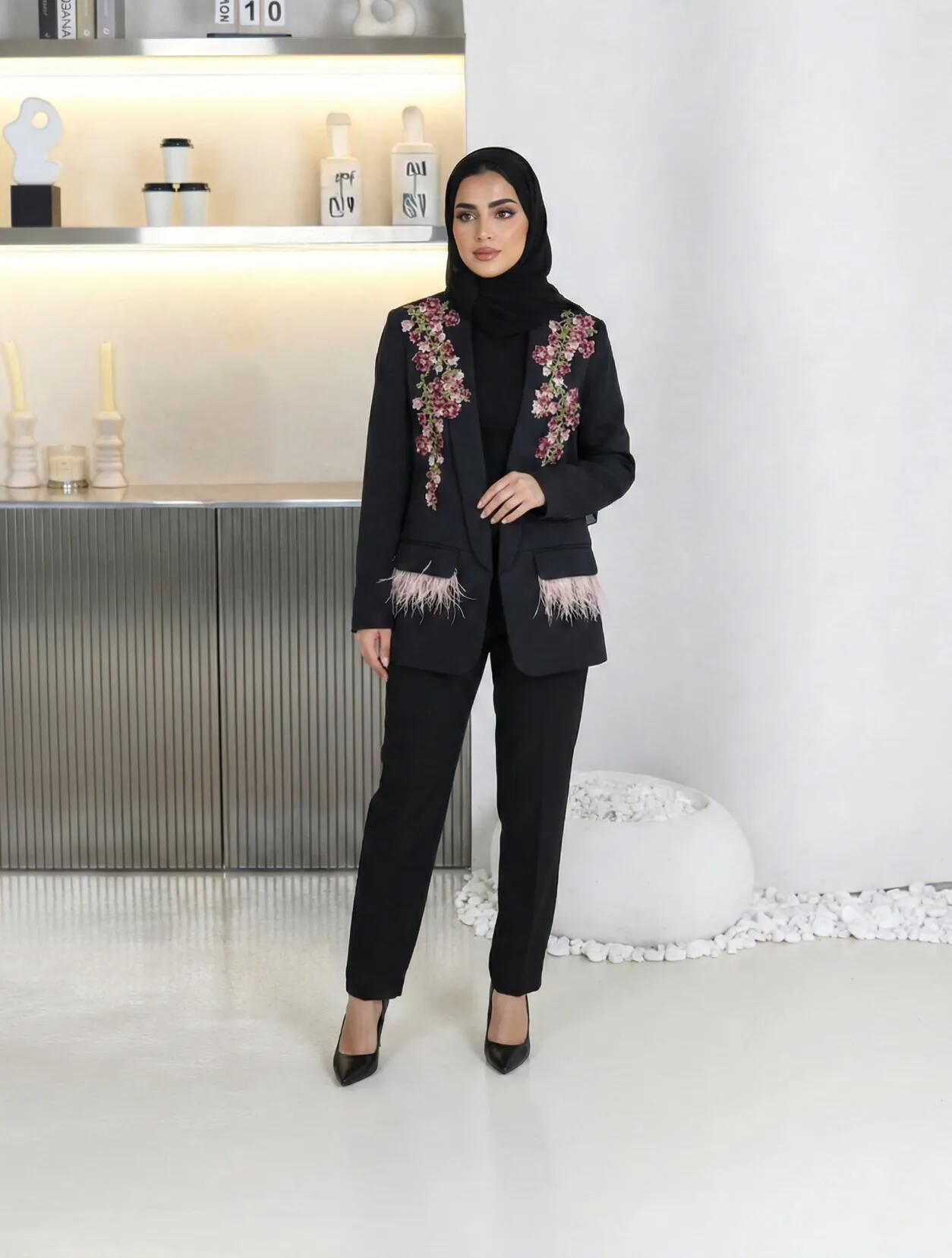 الرئيسيةجاكيت بليزر من القطنجاكيت بليزر من القطنبلاك وايت0الوصفجاكيت بليزر نسائي من خام قطن كريب الفاخر يزدان بتطريزات يدوية مشكوكة بالكرستال البراق مع لمسة حيوية من الريش الناعم على المخابي. تصميم استثنائي يجمع بين الفخامة العصرية والتفاصيل المبتكرة ليمدك بإطلالة ساحرة تخطف الأنظار في أرقى المناسباتاللوناوف وايتاسودالقياس12345