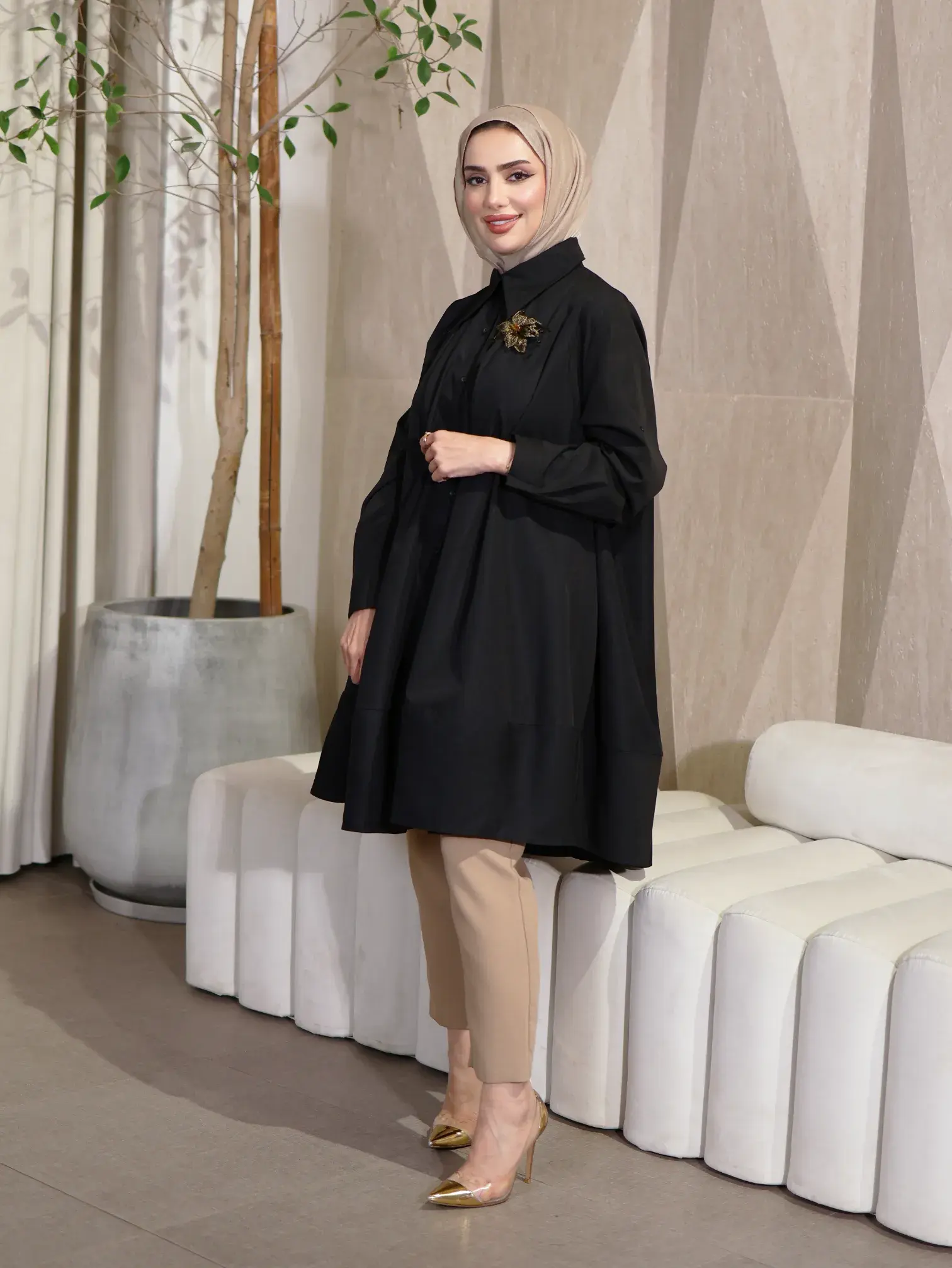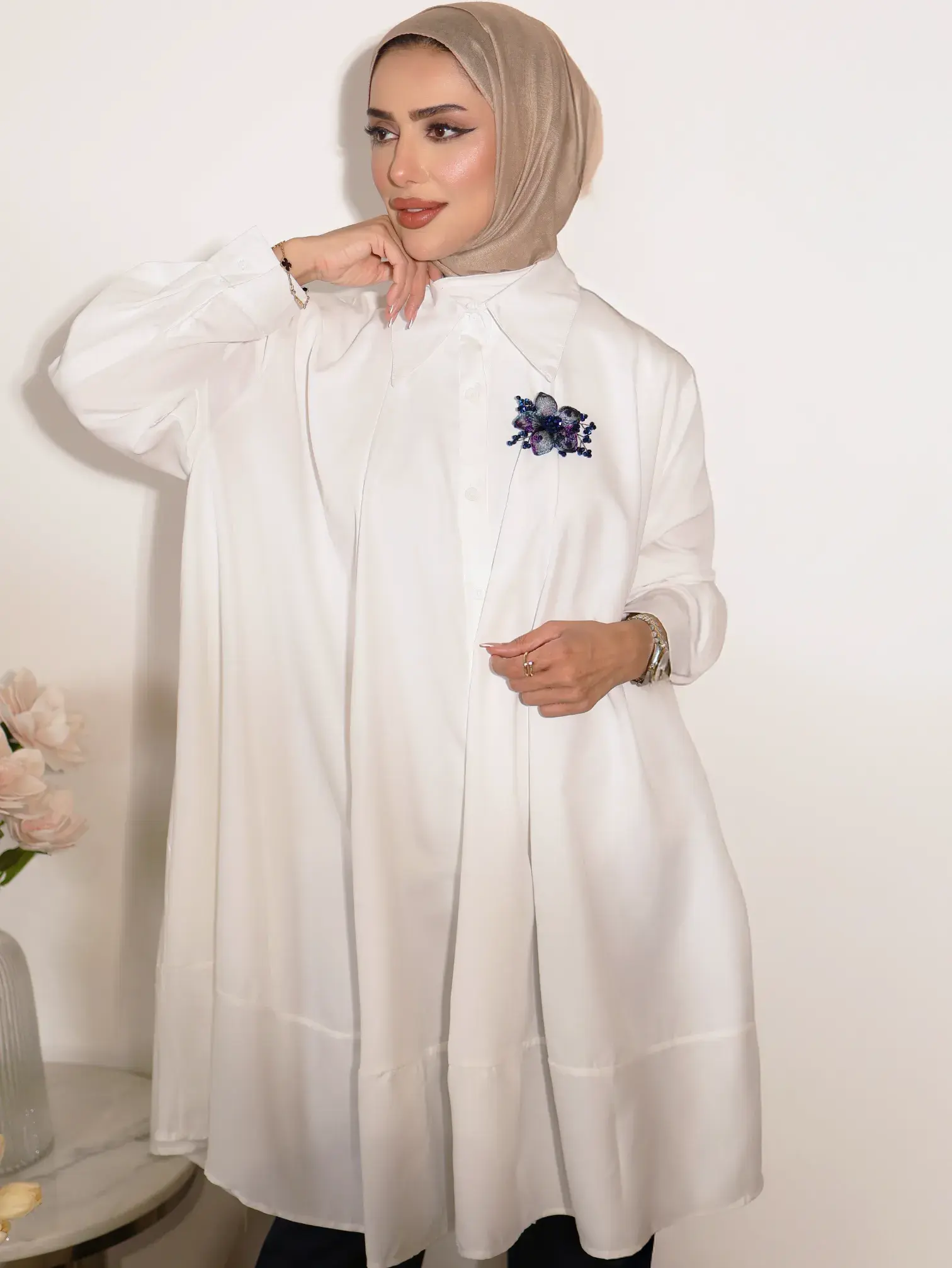 الرئيسيةقميص قطني مع بروشقميص قطني مع بروشبلاك وايت0الوصفقميص نسائي واسع من القطن، يتميز ببروش أنيق وقابل للإزالة على الصدر، يضفي لمسة من الأناقة والتميزاللوناوف وايتاسود