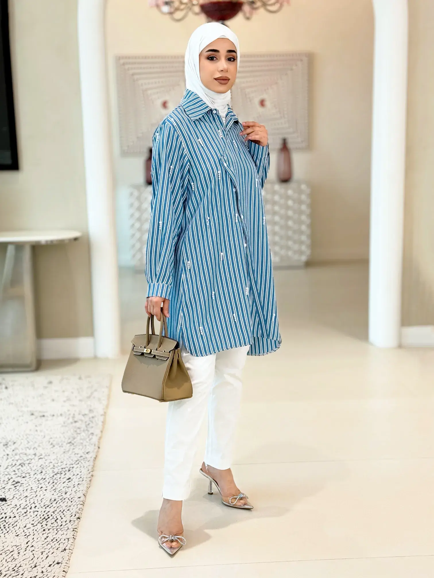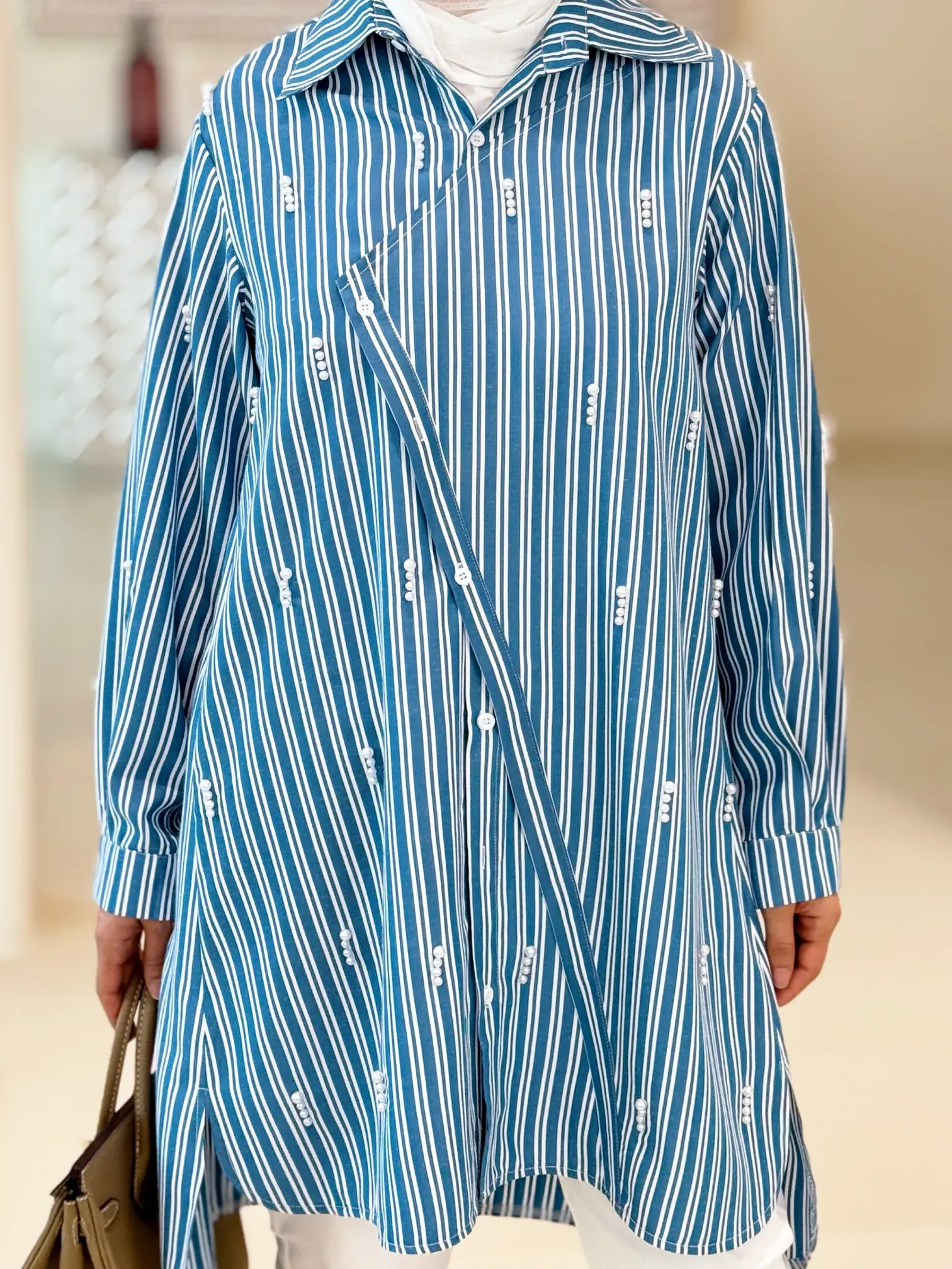 الرئيسيةقميص قطني بحبات اللولوقميص قطني بحبات اللولوبلاك وايت0الوصفقميص نسائي من القطن المخطط ومزين بحبات اللؤلؤ المتناثرة، يتميز بقصة عصرية ذات طبقة أمامية منسدلة من الجانب الأيسر؛ ليكون خيارك الأمثل لإطلالة تجمع بين الرقي والراحةالقياس12345