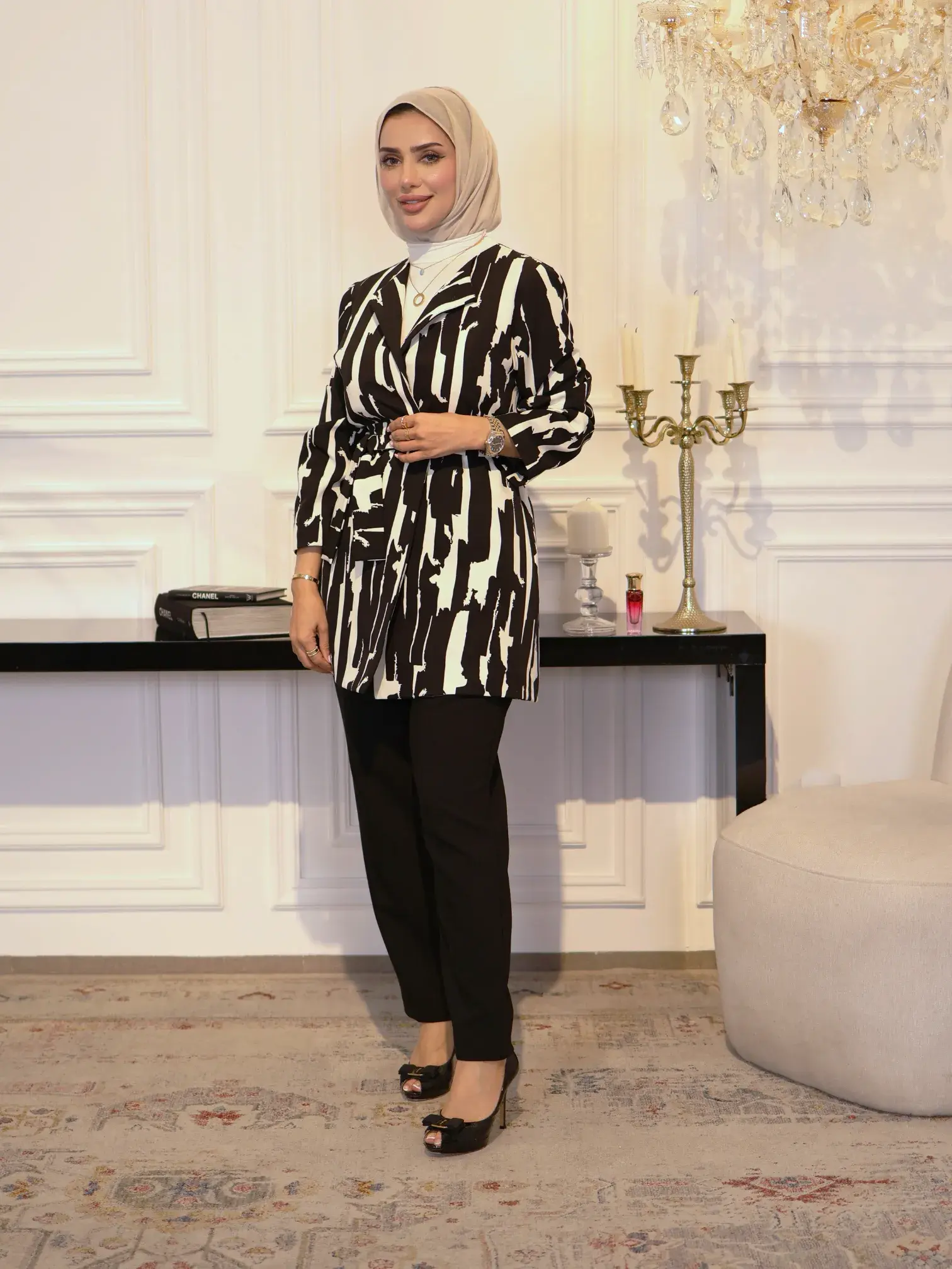 الرئيسيةجاكيت من الكريب - اسود - 4جاكيت من الكريب - اسود - 4بلاك وايت0الوصفجاكيت نسائي عصري وأنيق من خام الكريب، يتميز بنقشة فنية فريدة تجمع بين اللونين الأبيض والأسود، ليمنحك إطلالة جريئة ومميزة