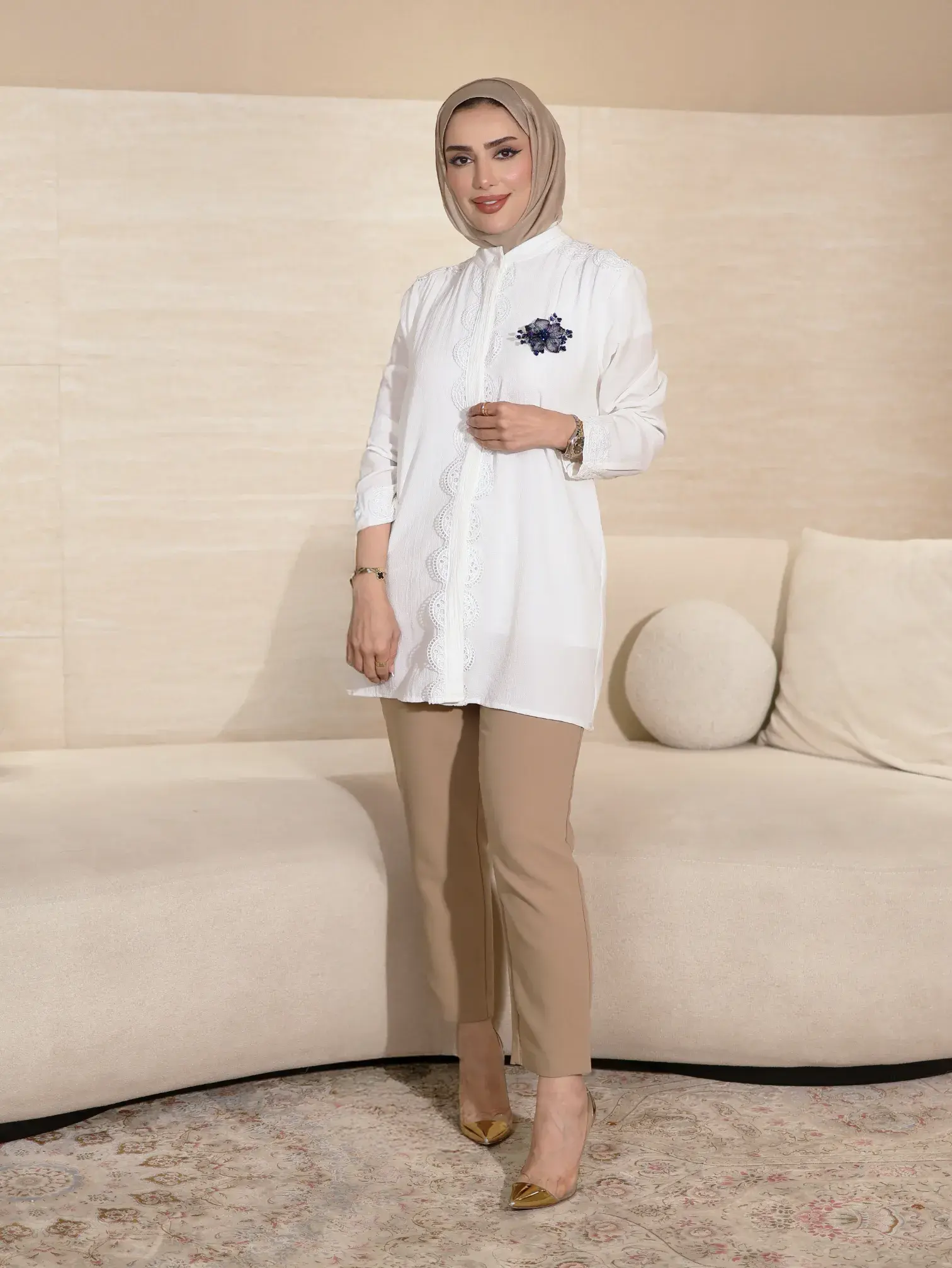 الرئيسيةقميص من الكريب مع بروش - اوف وايت - 2قميص من الكريب مع بروش - اوف وايت - 2بلاك وايت0الوصفقميص نسائي من قماش الكريب الشيفون، يتميز بتصميم أنيق ومريح مزين ببروش قابل للإزالة على الصدر، يضفي لمسة من الأناقة العصرية⚡ بادر الآن! فقط 2 القطع المتاحة