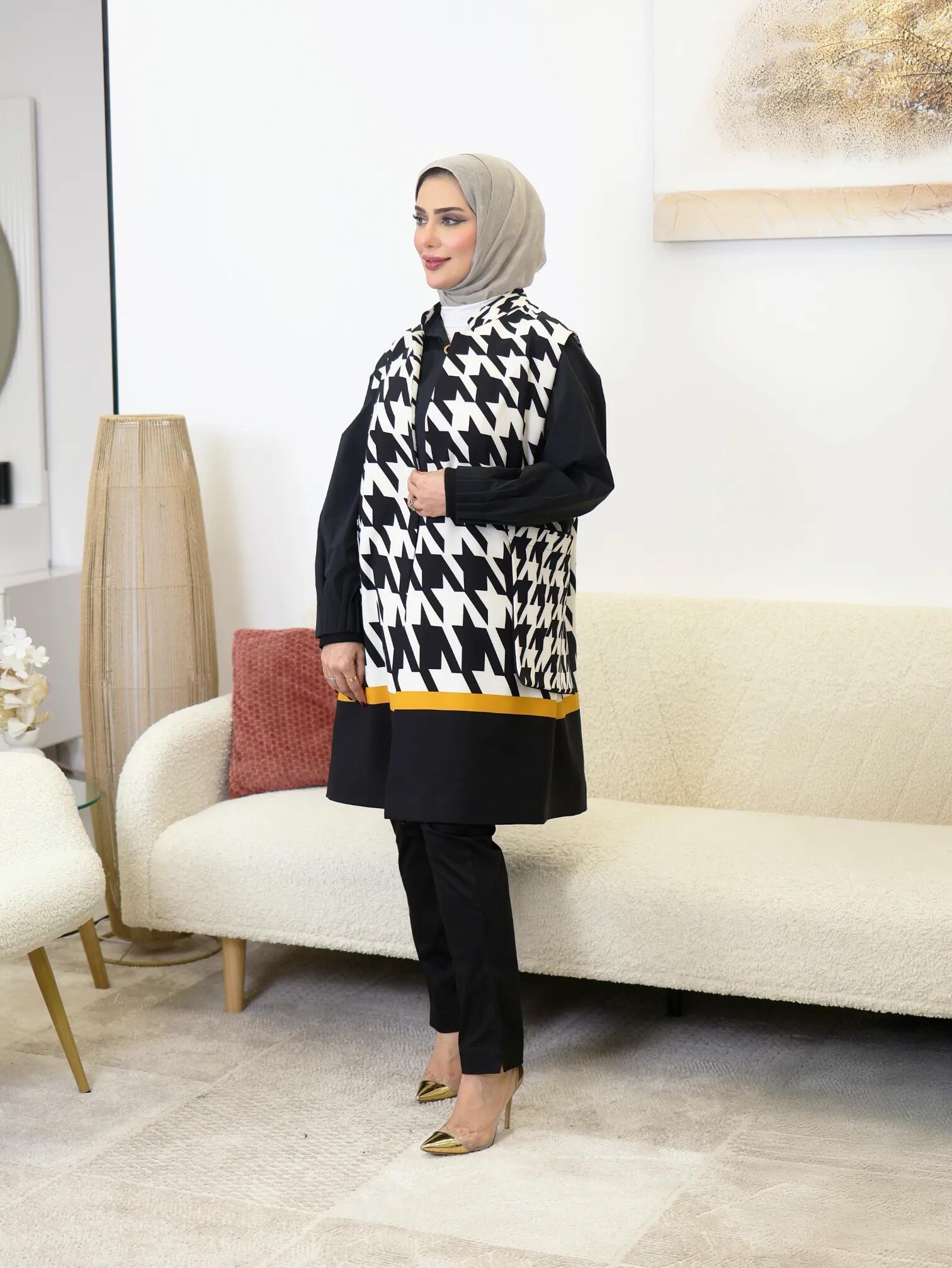 الرئيسيةجيليه من الكريب بنقش هندسيجيليه من الكريب بنقش هندسيبلاك وايت0الوصفجيليه نسائي عصري بتصميم مميز من خام الكريب، يزدان بنقش هندسي جذاب يضفي طابعاً فريداً، ومزود بجيوب جانبية عملية لتمنحك إطلالة يومية تجمع بين الأناقة والراحةالقياس1234