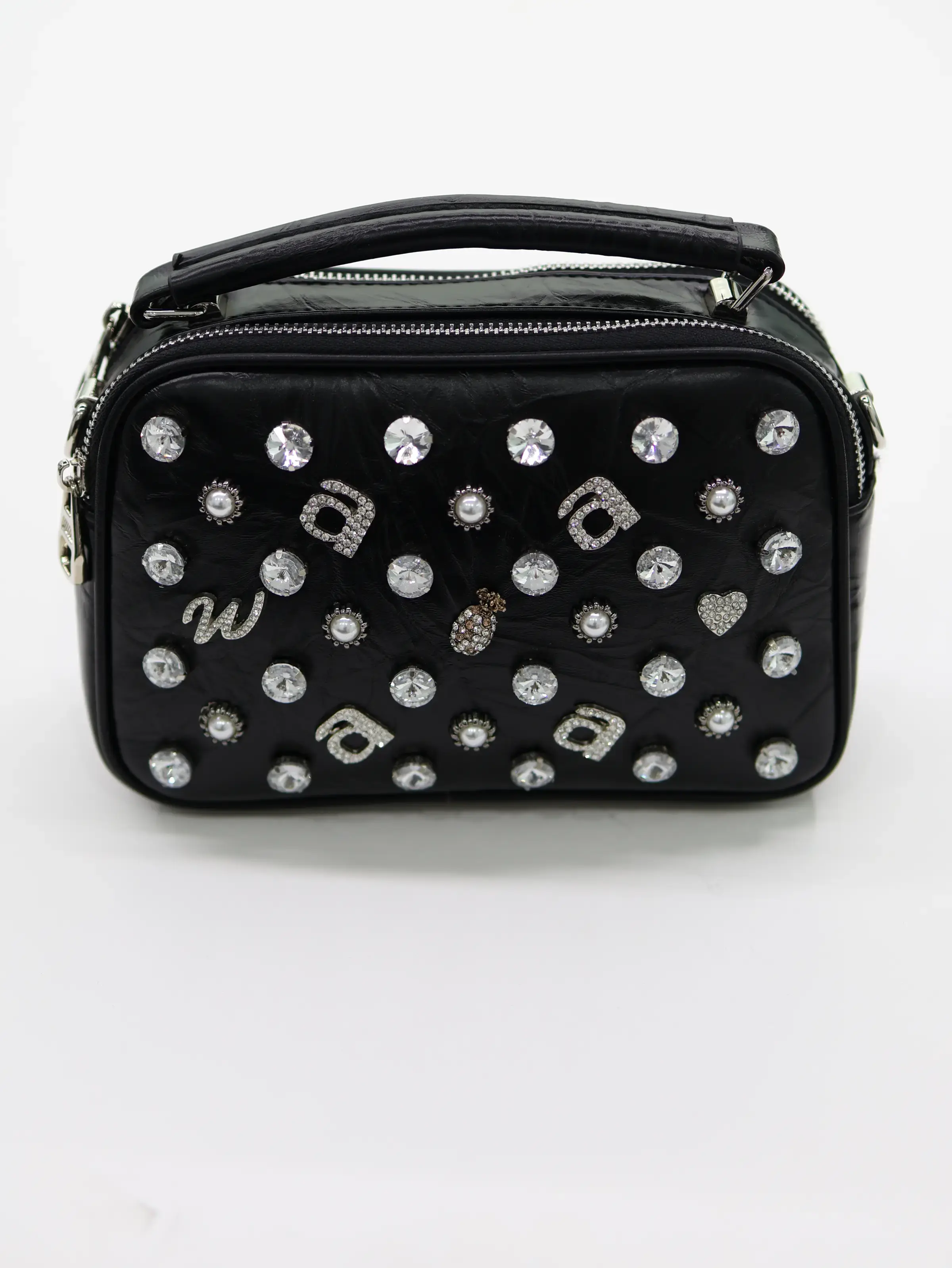 بلاك وايت | أفضل متجر ملابس محجبات وإكسسوارات في الكويت | حقيبة يد مرصعة بالكريستال واللؤلؤ