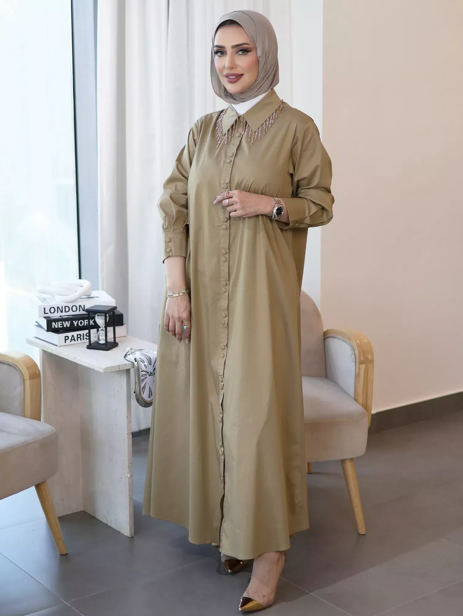 الرئيسيةفستان بياقة من كرستال - عسلي - 2فستان بياقة من كرستال - عسلي - 2بلاك وايت0الوصففستان نسائي طويل أنيق من خامة القطن، يتميز بياقة مزينة بهدب من الكريستال وأزرار مغطاة بالقماش، ليمنحك إطلالة راقية ومتميزة