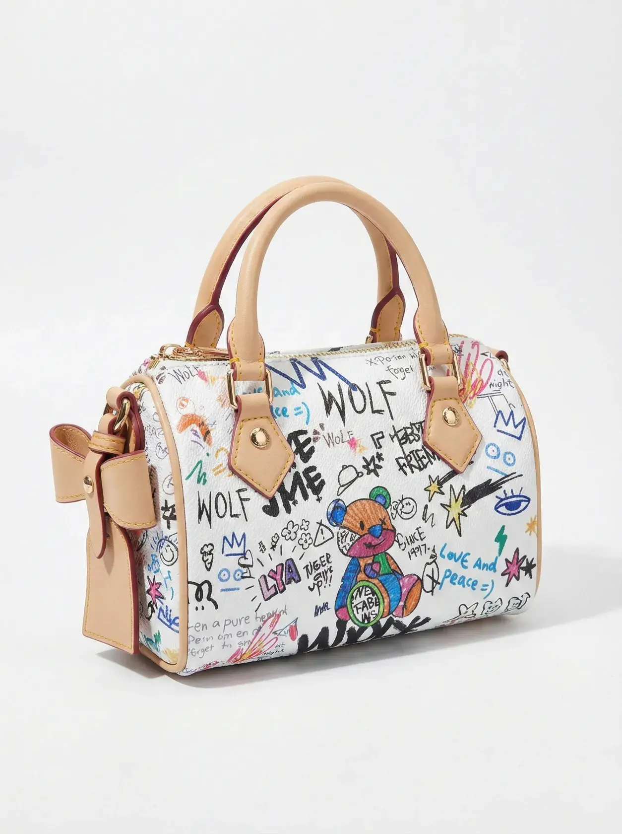 الرئيسيةحقيبة الأسطوانية بفيونكةحقيبة الأسطوانية بفيونكةبلاك وايت0الوصفحقيبة يد بتصميم أسطواني مميز، تتألق برسومات "جرافيتي" فنية ورسمة دبدوب مرحة، وتزدان بفيونكة جانبية كبيرة تضفي لمسة أنثوية ناعمة، لتمنحكِ إطلالة شبابية فريدةاللوناوف وايتبني