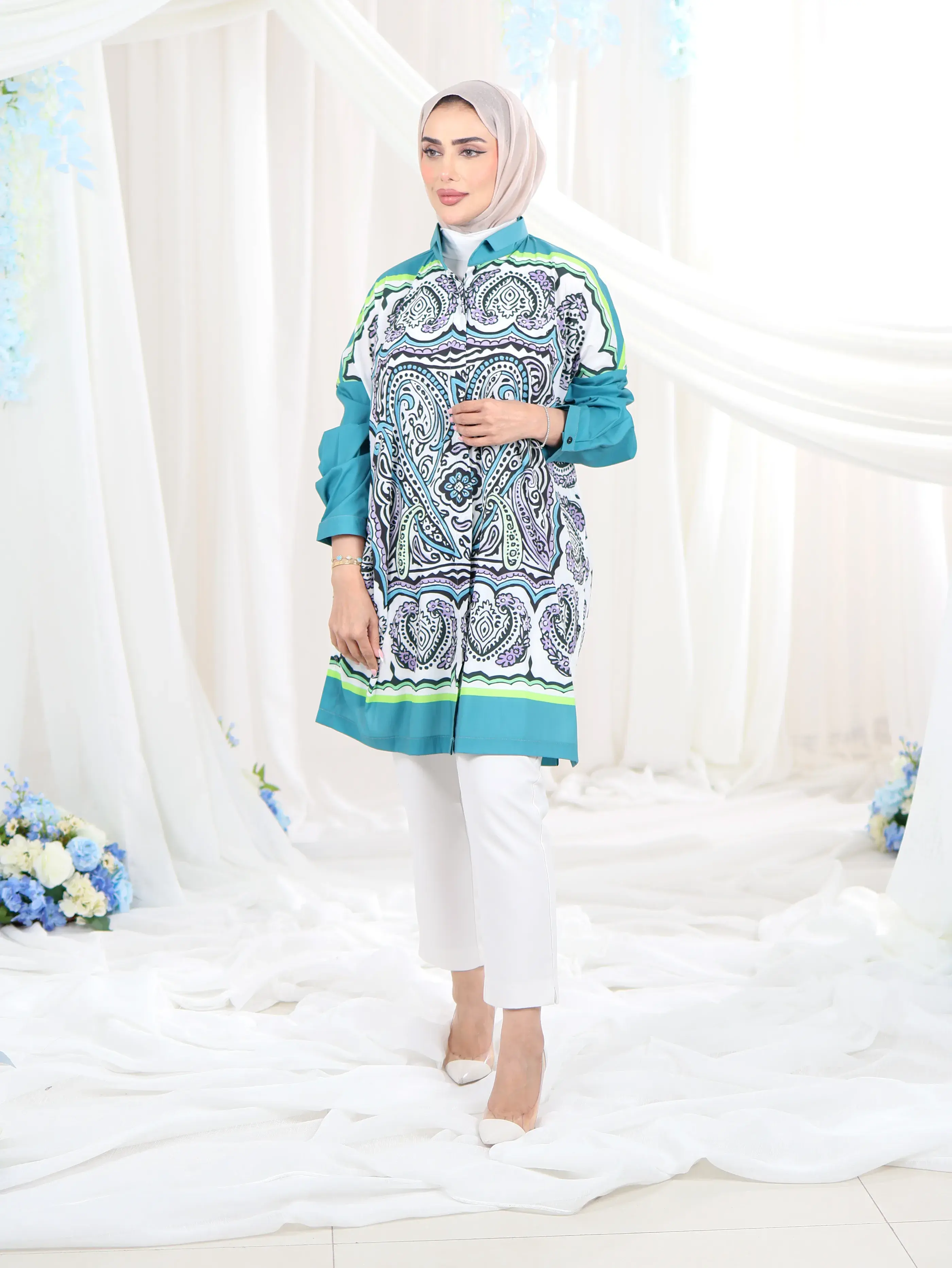 الرئيسيةقميص قطني مميز - تيفاني - FSقميص قطني مميز - تيفاني - FSبلاك وايت0الوصفقميص نسائي واسع من القطن، يتميز بياقة صغيرة مميزة وأزرار على الجوانب، يضفي لمسة من الأناقة والراحة