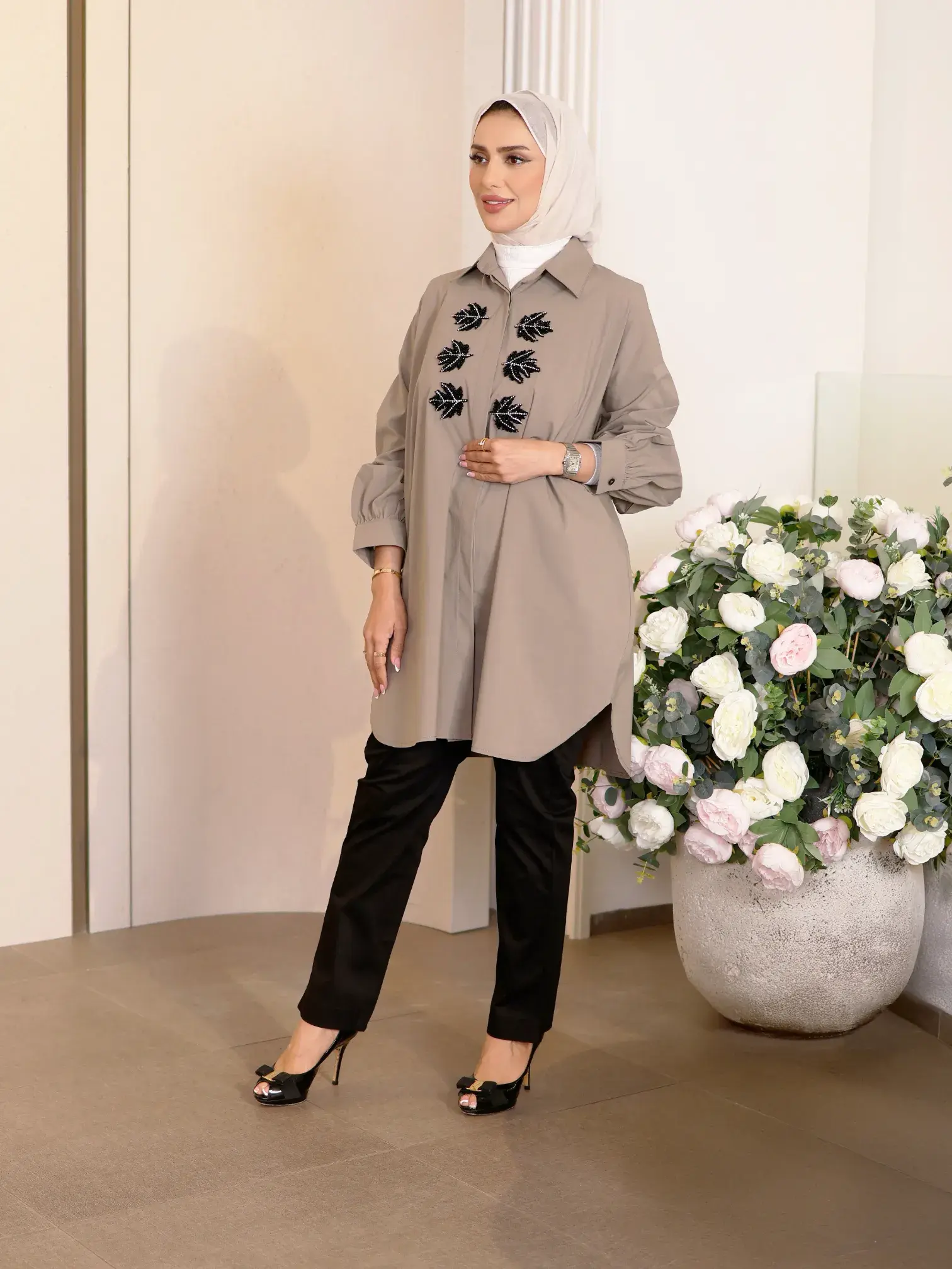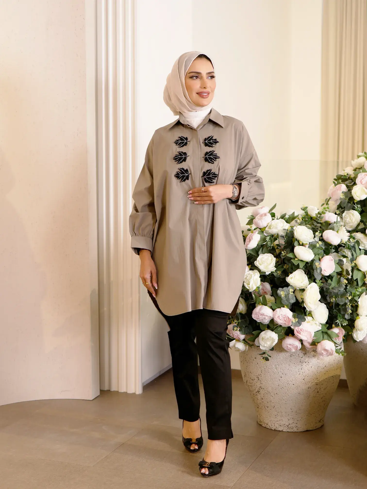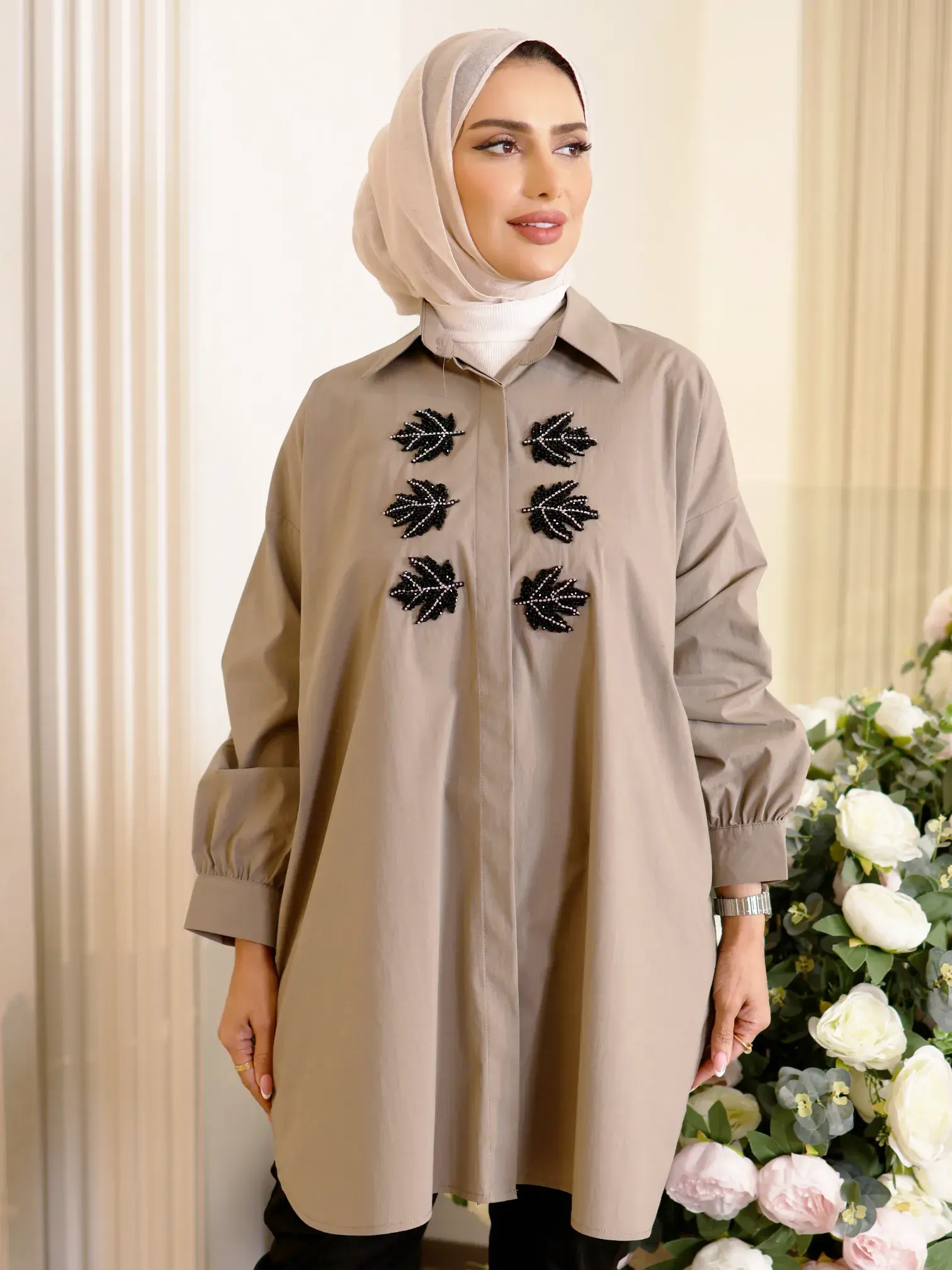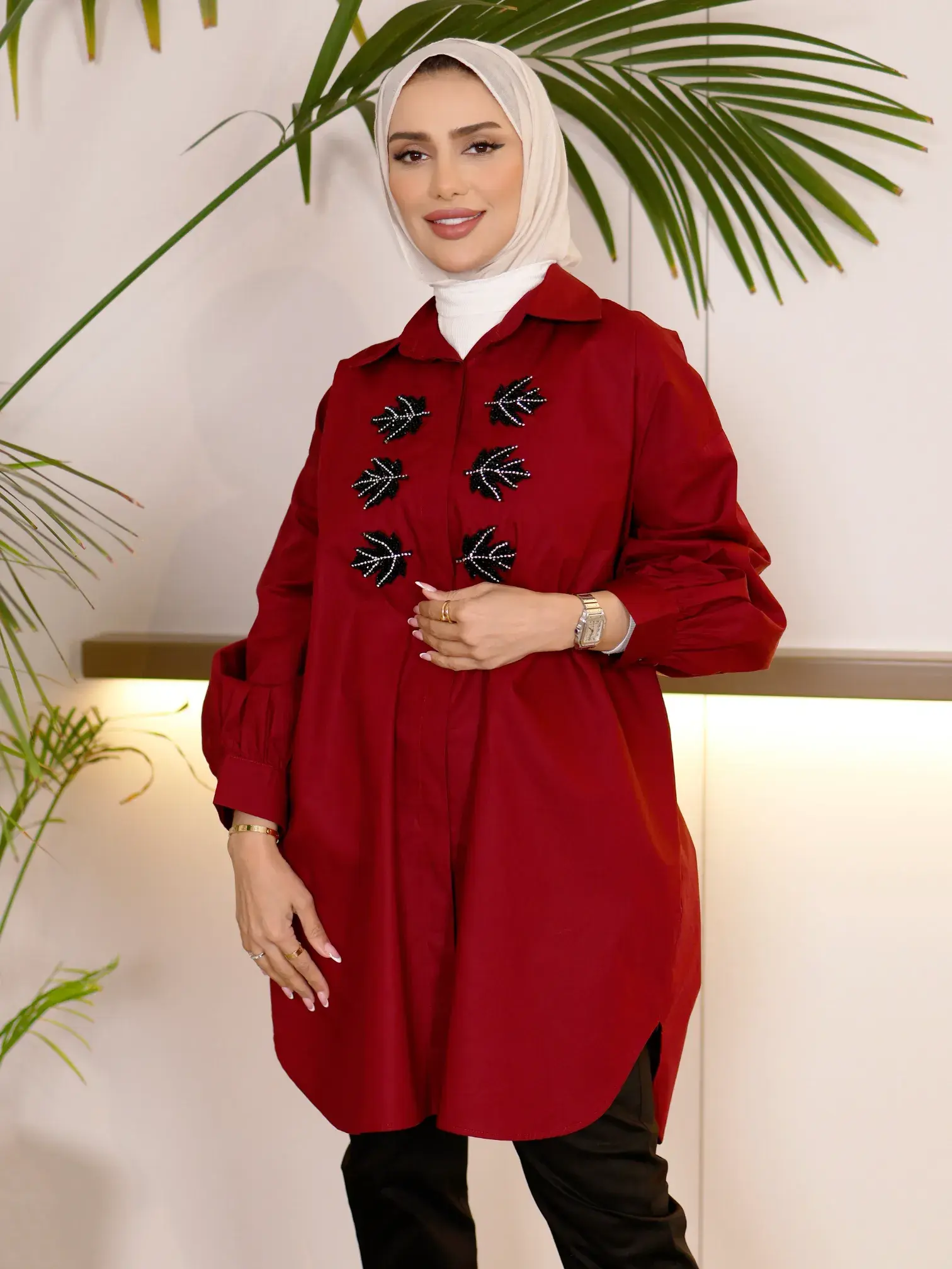 الرئيسيةقميص من القطن الأنيققميص من القطن الأنيقبلاك وايت0الوصفقميص نسائي واسع من القطن، يتميز بكلفة مزينة ومُثبتة على الصدر، يضفي لمسة من الأناقة العصريةاللونبيج ترابيعنابي