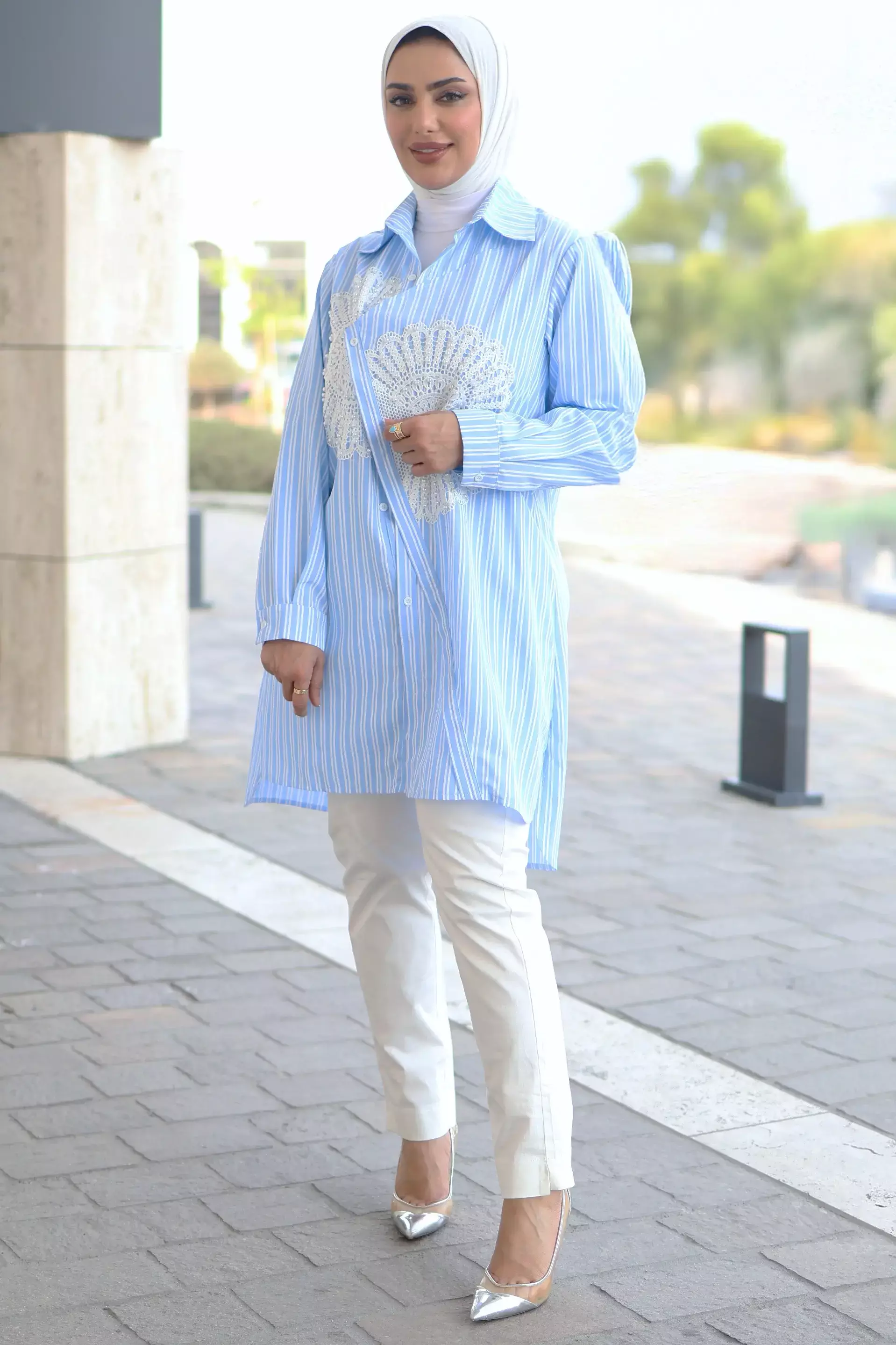 الرئيسيةقميص أنيق من الكريب الناعم - سماوي - 3قميص أنيق من الكريب الناعم - سماوي - 3بلاك وايت0الوصفقميص نسائي أنيق من الكريب الناعم، يتألق بدانتيل فاخر ولؤلؤ رقيق على الصدر يضفي لمسة جمالية ساحرة على إطلالتك⚡ بادر الآن! فقط 1 القطع المتاحة