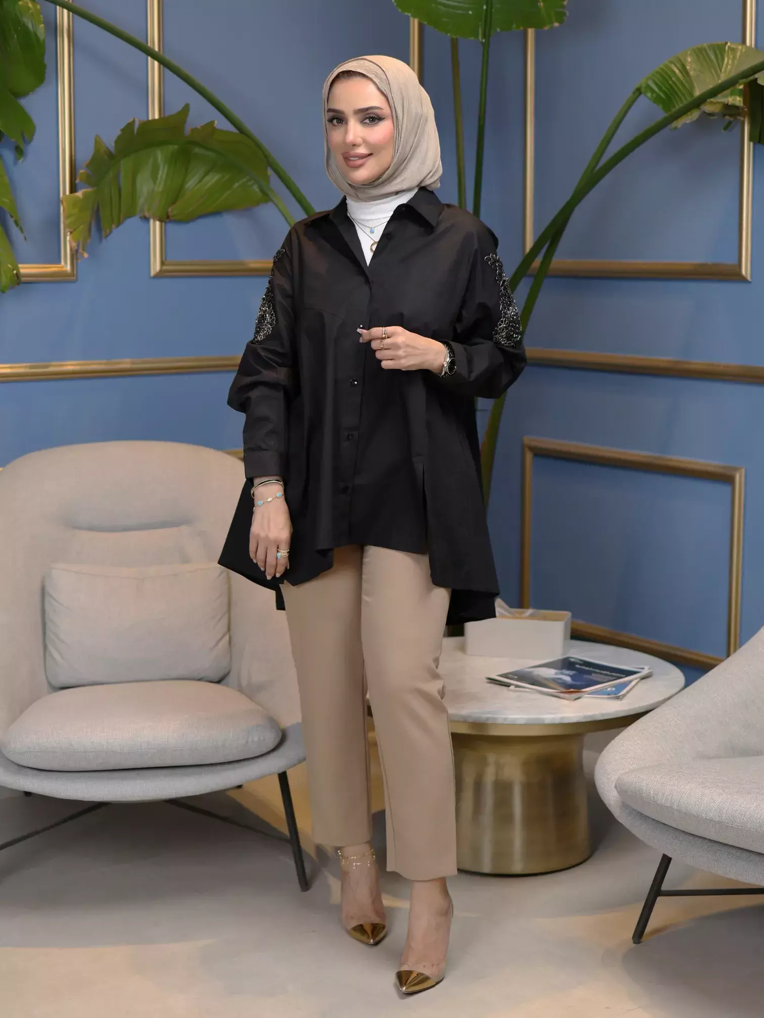 الرئيسيةقميص مع كلفة مزينة بالشك - اسود - 1قميص مع كلفة مزينة بالشك - اسود - 1بلاك وايت0الوصفقميص نسائي أنيق من خامة القطن، يتميز بتصميم فريد مع كلفة مزينة بالشك على الأكتاف، ليمنحك إطلالة راقية ومتميزة⚡ بادر الآن! فقط 1 القطع المتاحة