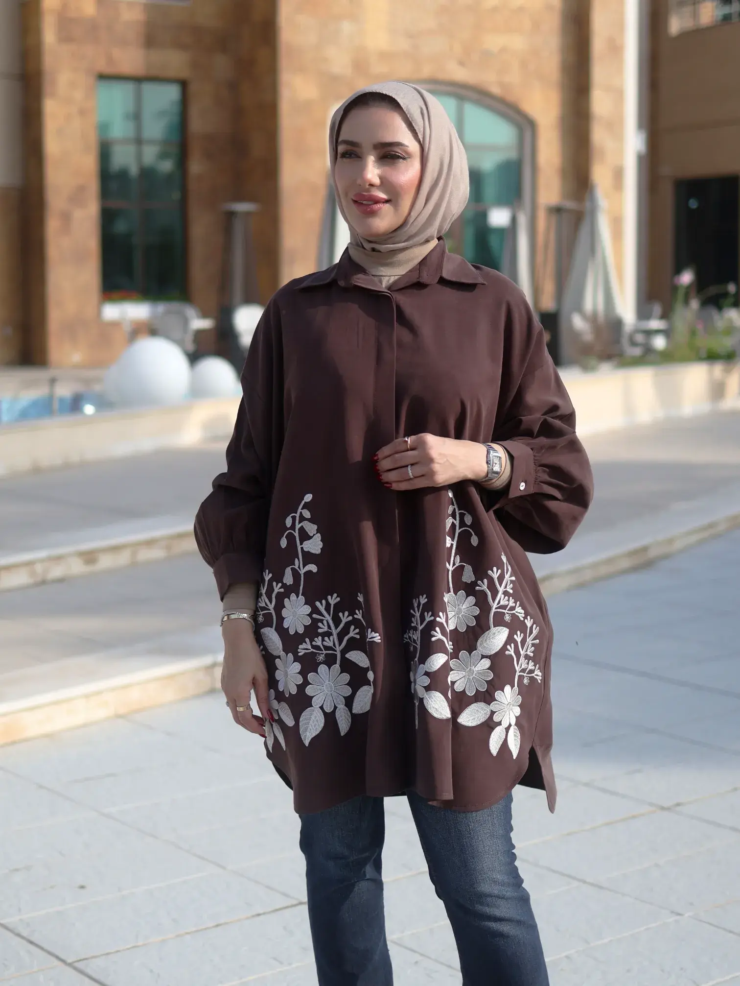 الرئيسيةقميص من التنسل المطرز-بني-FSقميص من التنسل المطرز-بني-FSبلاك وايت0الوصفقميص نسائي من خام تنسل، فضفاض ومطرز بنقش أغصان. قطعة أنيقة وعصرية تمنحك إطلالة مميزة تجمع بين الراحة والفخامة الهادئة