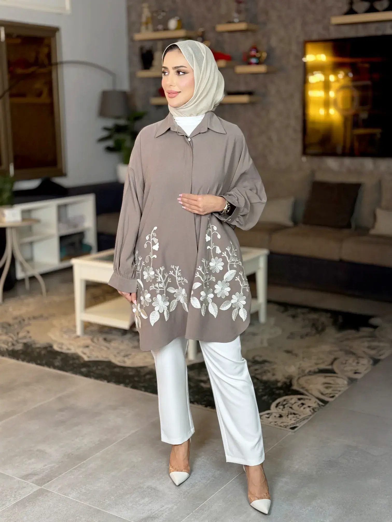 الرئيسيةقميص من التنسل المطرز-بيج كموني-FSقميص من التنسل المطرز-بيج كموني-FSبلاك وايت0الوصفقميص نسائي من خام تنسل، فضفاض ومطرز بنقش أغصان. قطعة أنيقة وعصرية تمنحك إطلالة مميزة تجمع بين الراحة والفخامة الهادئة