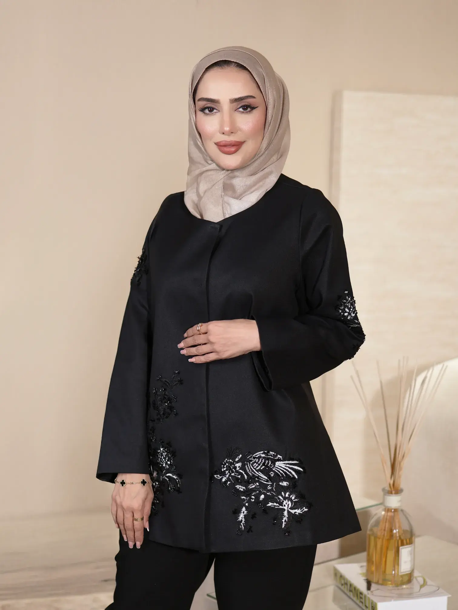 الرئيسيةجاكيت مزين بتطريزاتجاكيت مزين بتطريزاتبلاك وايت0الوصفجاكيت نسائي أنيق مزين بتطريزات دقيقة وشك متقن على المقدمة والأكمام، يضفي لمسة من الفخامة والجمالاللونبيجاسودالقياس12345