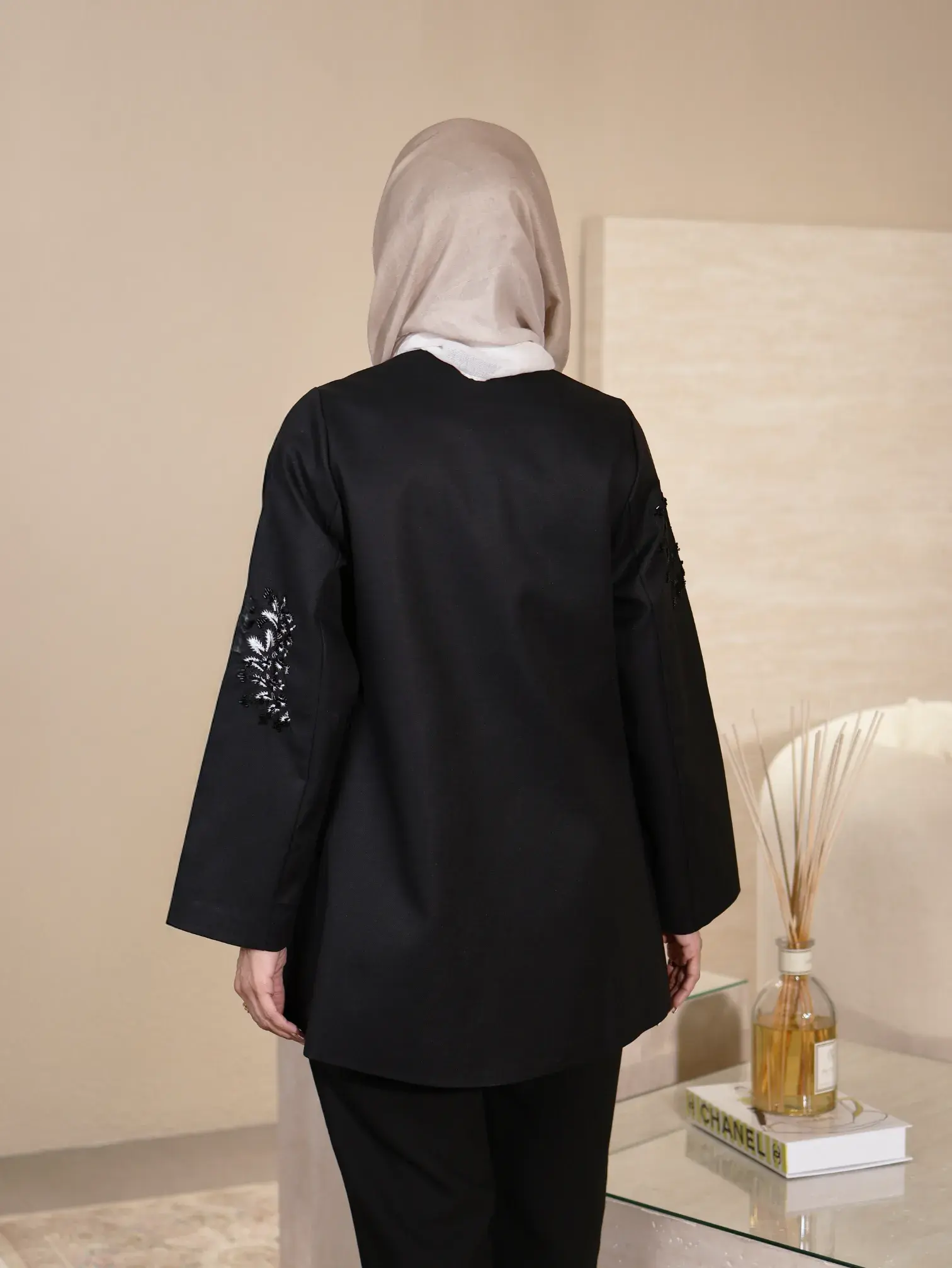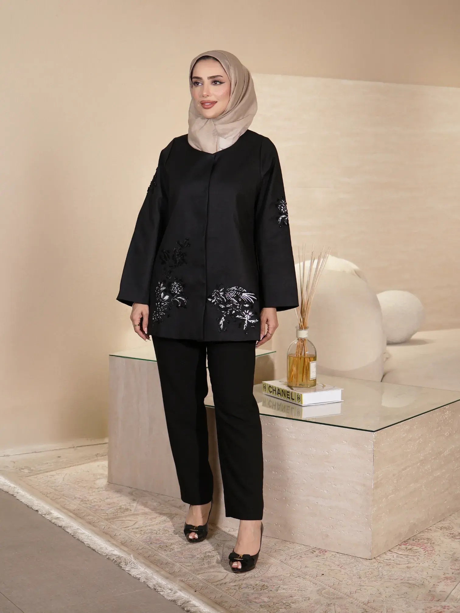 الرئيسيةجاكيت مزين بتطريزات - اسود - 1جاكيت مزين بتطريزات - اسود - 1بلاك وايت0الوصفجاكيت نسائي أنيق مزين بتطريزات دقيقة وشك متقن على المقدمة والأكمام، يضفي لمسة من الفخامة والجمال