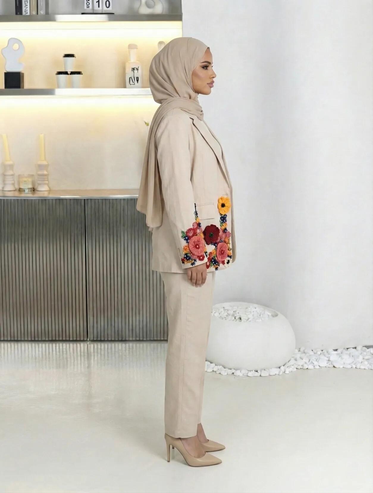 الرئيسيةجاكيت بليزر من اللننجاكيت بليزر من اللننبلاك وايت0الوصفجاكيت بليزر نسائي من خام اللنن الفاخر يتميز بتطريزات متقنة بنقشة الورد المرصعة بكرستال يضفي بريقاً خاصاً. قطعة عصرية تجمع بين رسمية القصّة وجمال التفاصيل الفنية لتمنحك إطلالة أنيقة ولافتة في آن واحداللونبيجرماديالقياس1234