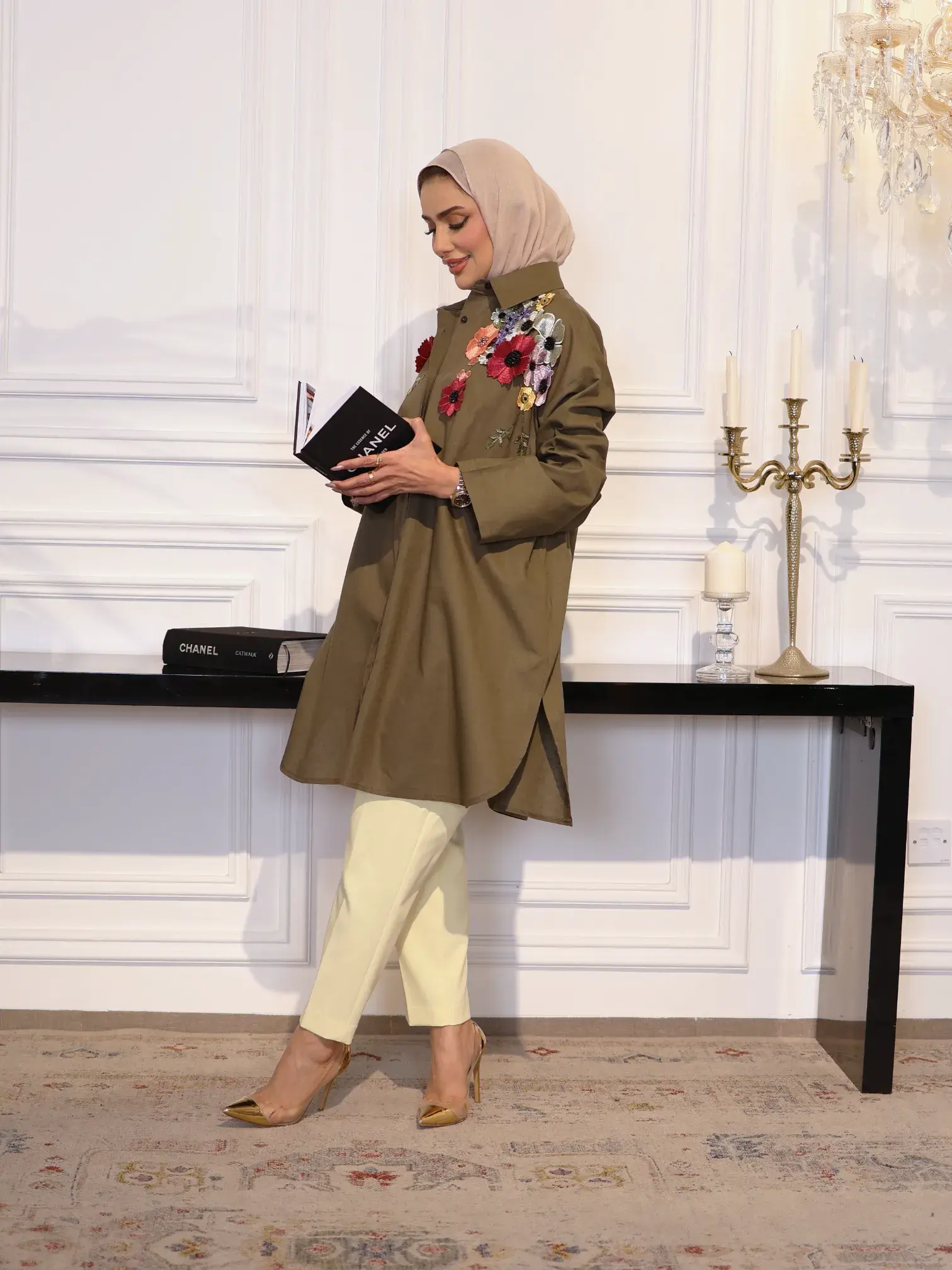 الرئيسيةقميص من اللنن مع ورد وشكقميص من اللنن مع ورد وشكبلاك وايت0الوصفقميص نسائي مميز من خامة اللنن، يتزين الصدر بزهور ثلاثية الأبعاد تعلوها لمسات من الشك، ليمنحك إطلالة فريدة ومفعمة بالجمالاللونزيتيشويتيبيج كمونياسود