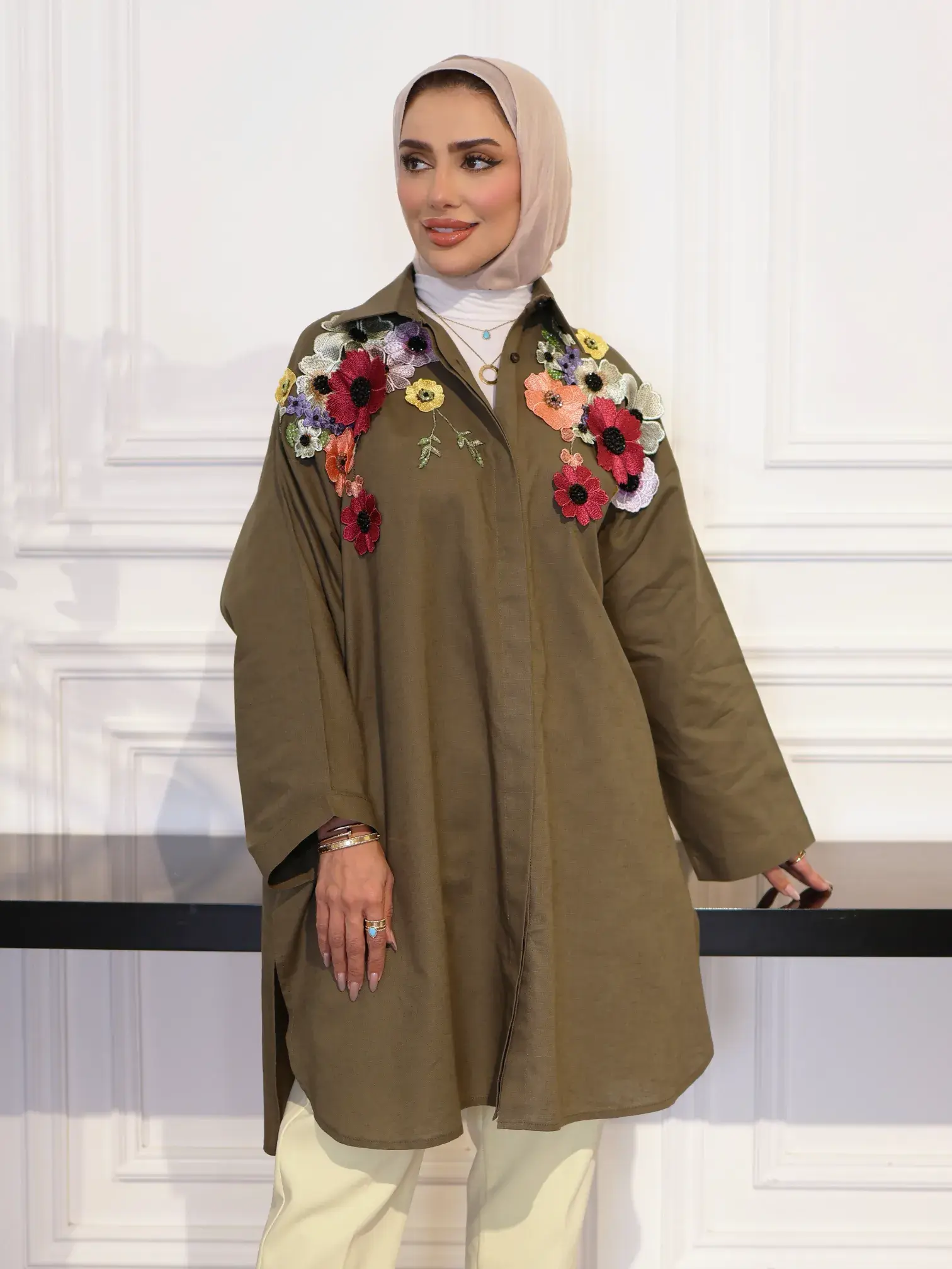 الرئيسيةقميص من اللنن مع ورد وشك - زيتي - FSقميص من اللنن مع ورد وشك - زيتي - FSبلاك وايت0الوصفقميص نسائي مميز من خامة اللنن، يتزين الصدر بزهور ثلاثية الأبعاد تعلوها لمسات من الشك، ليمنحك إطلالة فريدة ومفعمة بالجمال