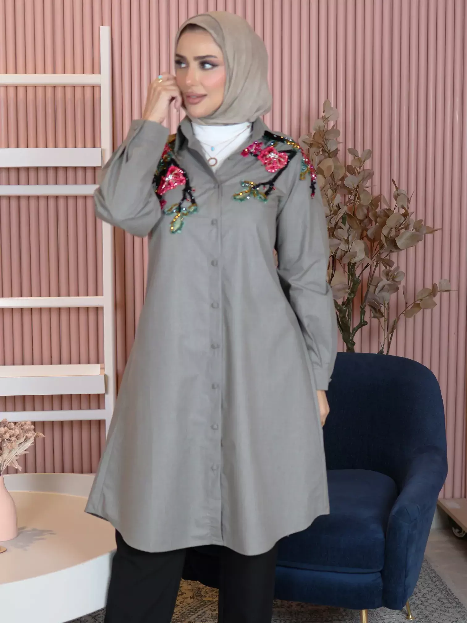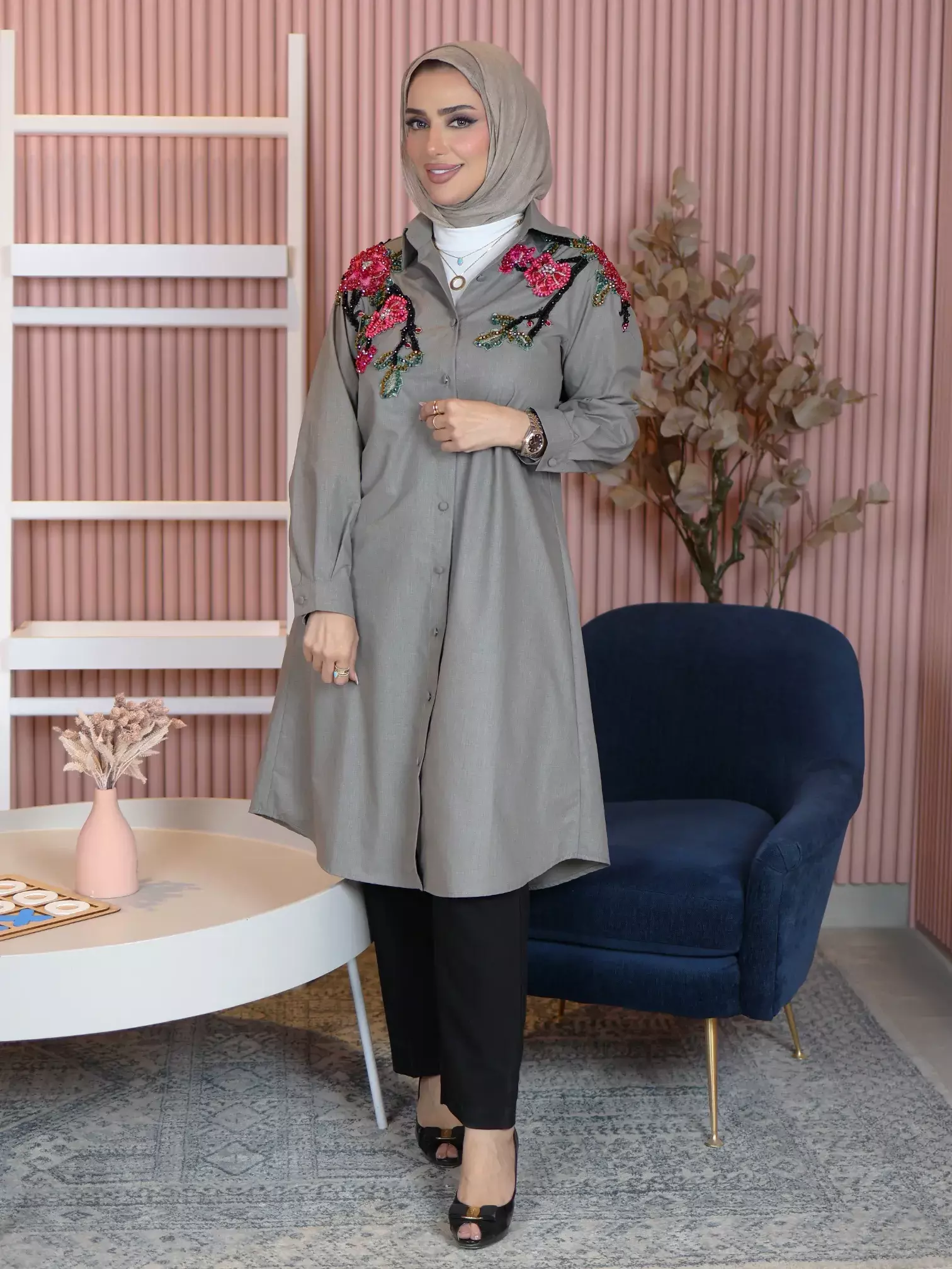 الرئيسيةقميص طويل من القطن - رمادي غامق - 1قميص طويل من القطن - رمادي غامق - 1بلاك وايت0الوصفقميص طويل نسائي أنيق من خامة القطن، يتميز بتصميم فريد مع ورود ثلاثية الأبعاد مزينة بالشك، وأزرار من نفس الخام، ليمنحك إطلالة راقية ومميزة⚡ بادر الآن! فقط 3 القطع المتاحة