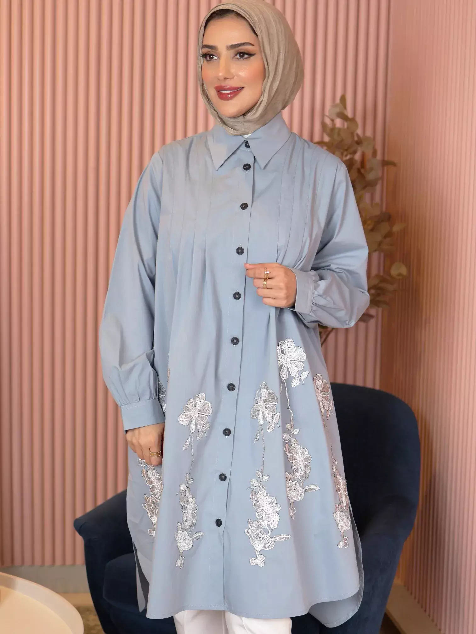 الرئيسيةقميص طويل من القطن مع وردة - سماوي - 1قميص طويل من القطن مع وردة - سماوي - 1بلاك وايت0الوصفقميص طويل نسائي ومريح من خامة القطن، يتميز بتصميم أنيق مع ورود ثلاثية الأبعاد مثبتة ببراعة في الجزء السفلي، ليمنحك إطلالة فريدة ومفعمة بالجاذبية⚡ بادر الآن! فقط 3 القطع المتاحة