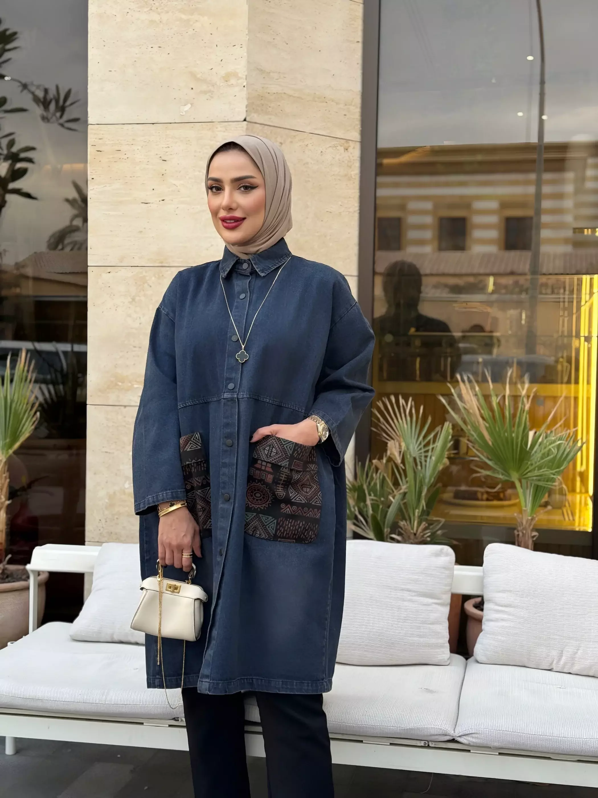 الرئيسيةقميص طويل من الجينز - جينز كحلي - FSقميص طويل من الجينز - جينز كحلي - FSبلاك وايت0الوصفقميص طويل نسائي من جينز عصري يتميز بجيوب بنقشة فريدة وتصميم طباقي أنيق من المنتصف