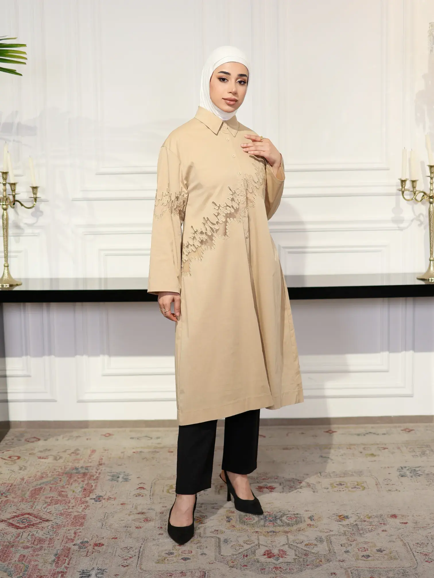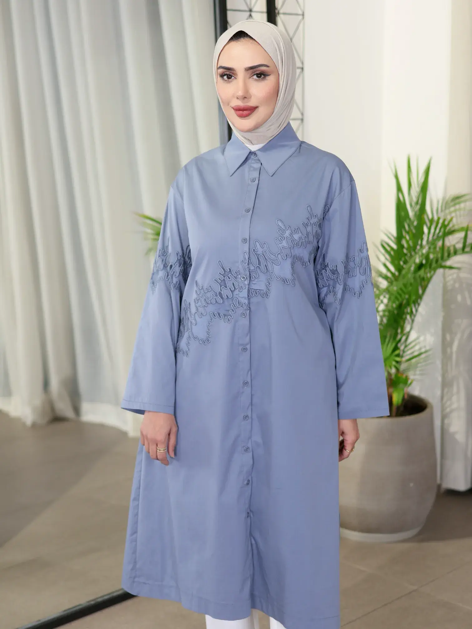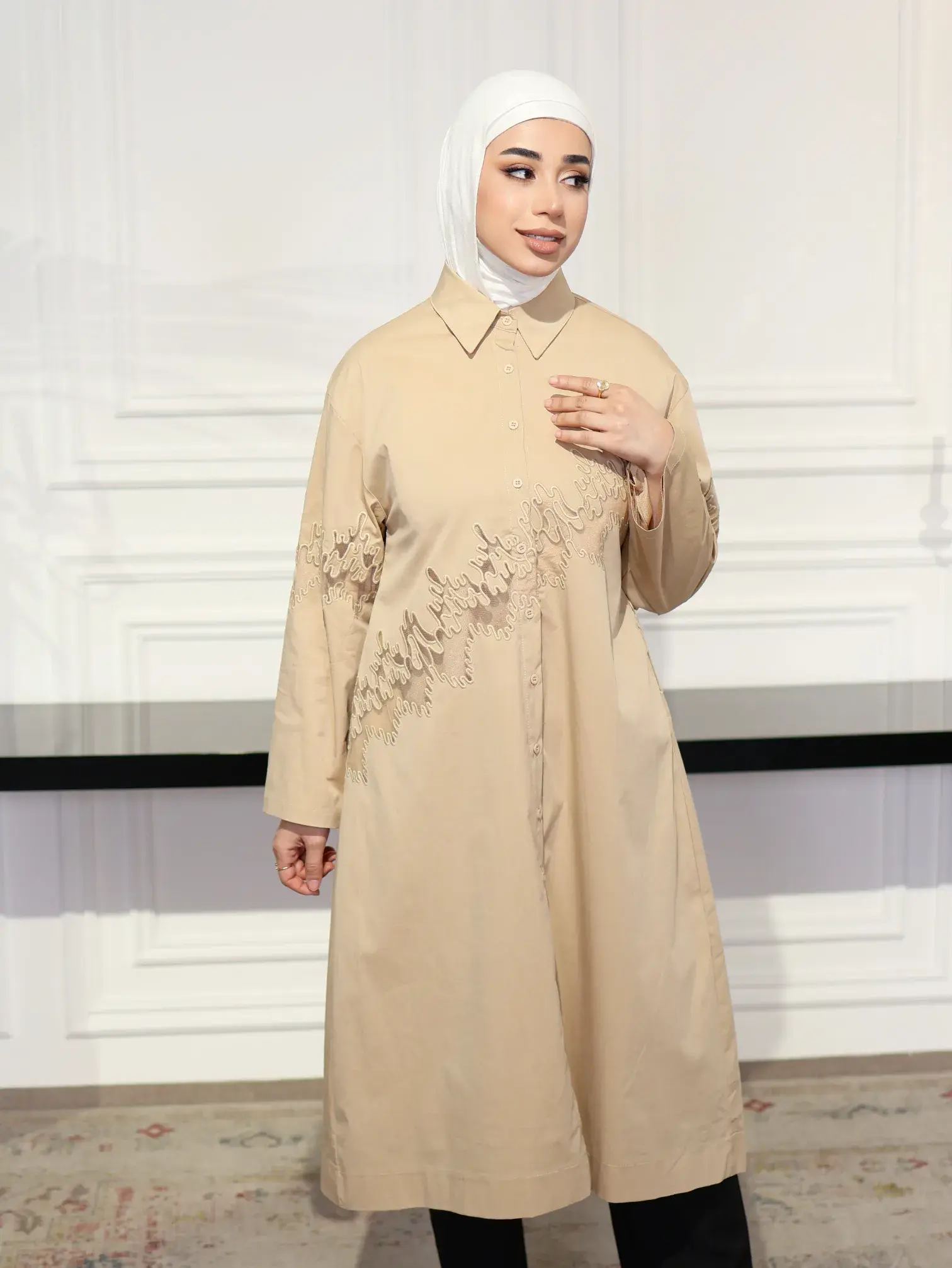 الرئيسيةقميص طويل قطني مطرزقميص طويل قطني مطرزبلاك وايت0الوصفقميص قطني طويل يتسم بالأناقة الهادئة مع تطريزات يدوية متقنة من نفس لون القماش تزين منطقة الصدر والأكماماللونبيجسماويالقياس12345