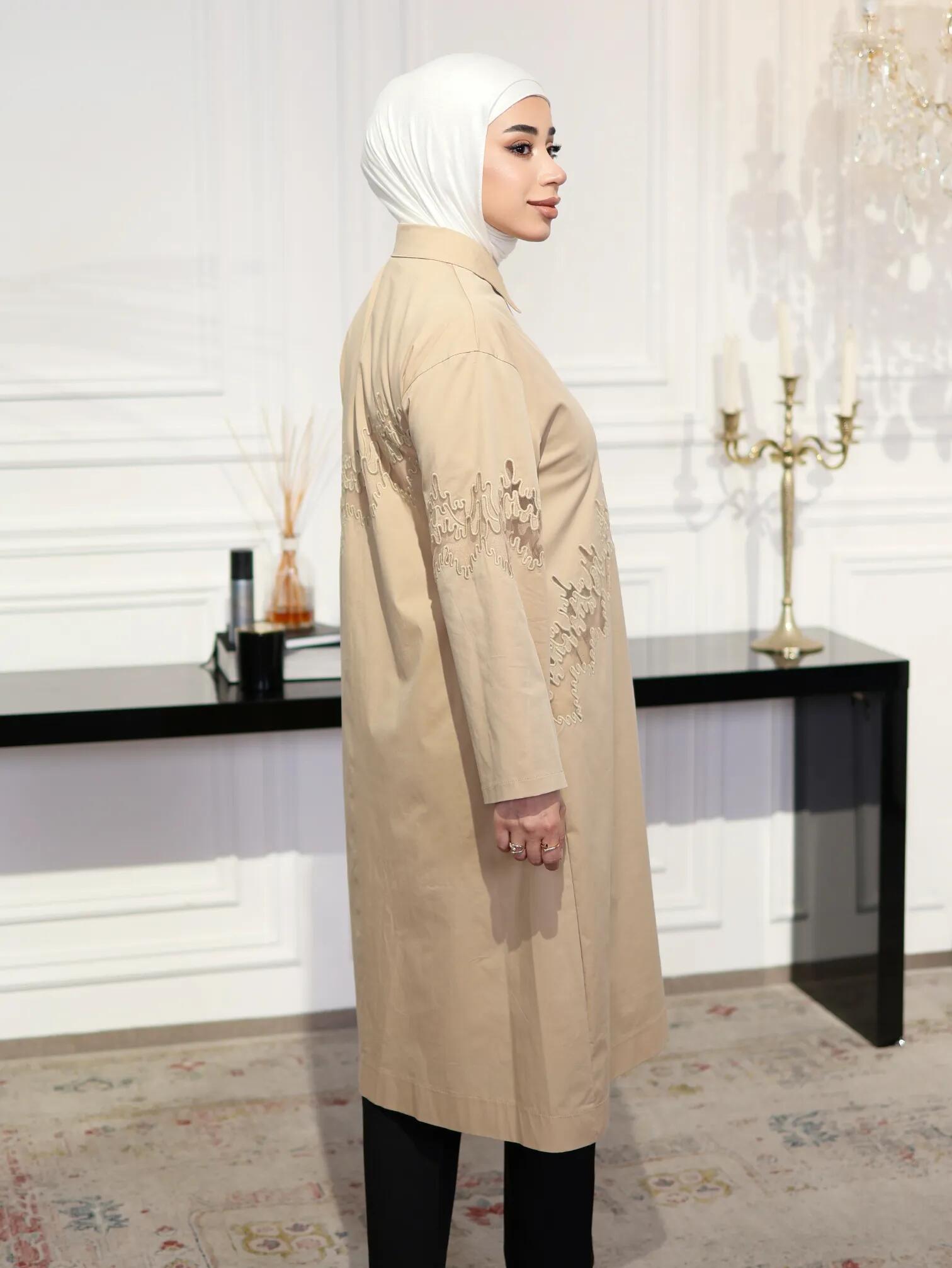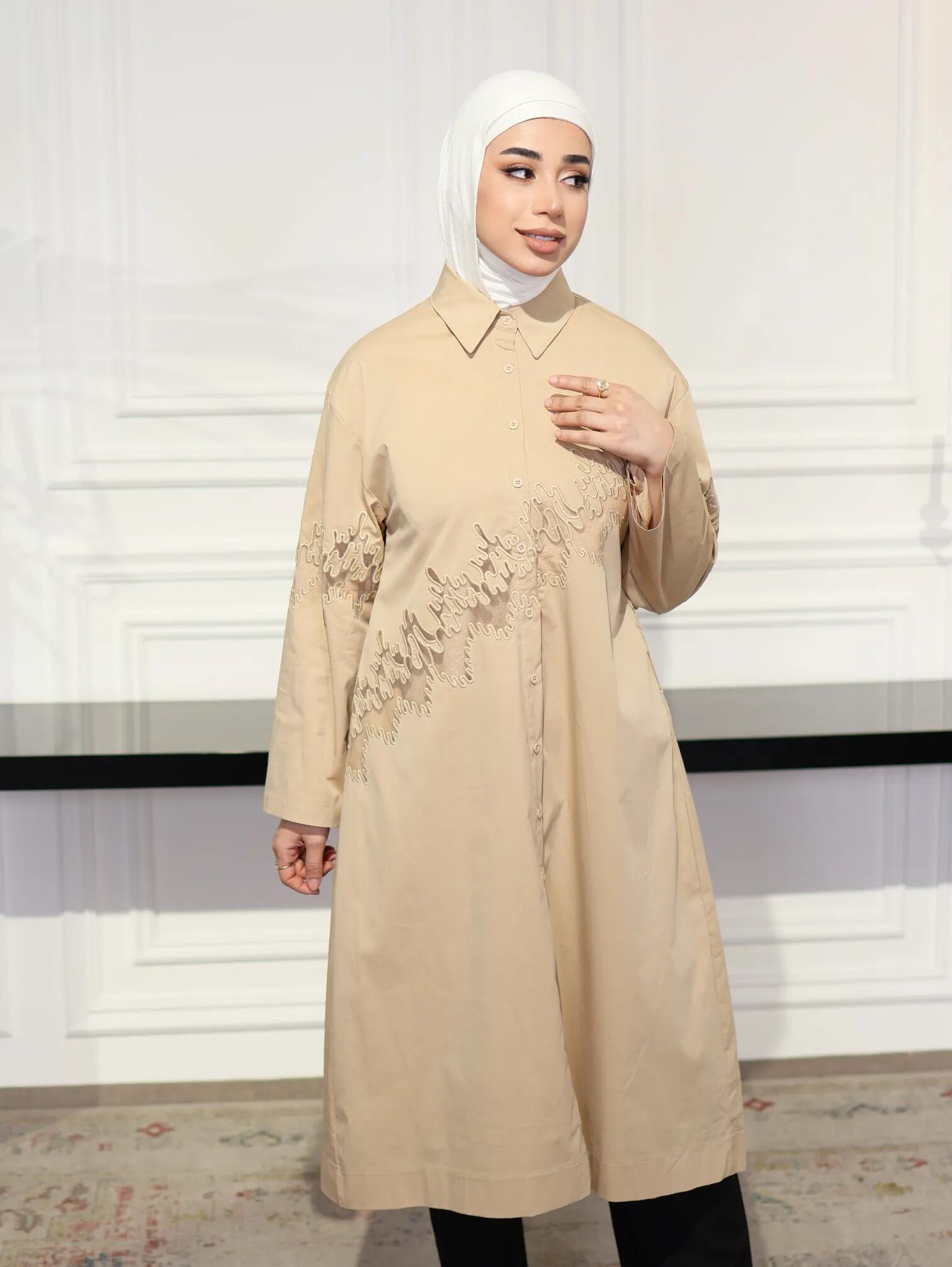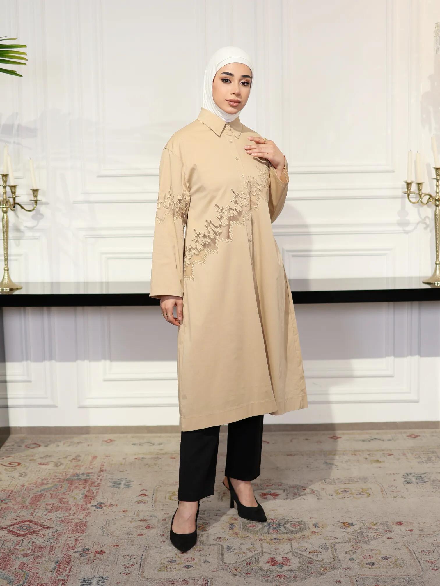 الرئيسيةقميص طويل قطني مطرز-بيج-1قميص طويل قطني مطرز-بيج-1بلاك وايت0الوصفقميص قطني طويل يتسم بالأناقة الهادئة مع تطريزات يدوية متقنة من نفس لون القماش تزين منطقة الصدر والأكمام⚡ بادر الآن! فقط 3 القطع المتاحة