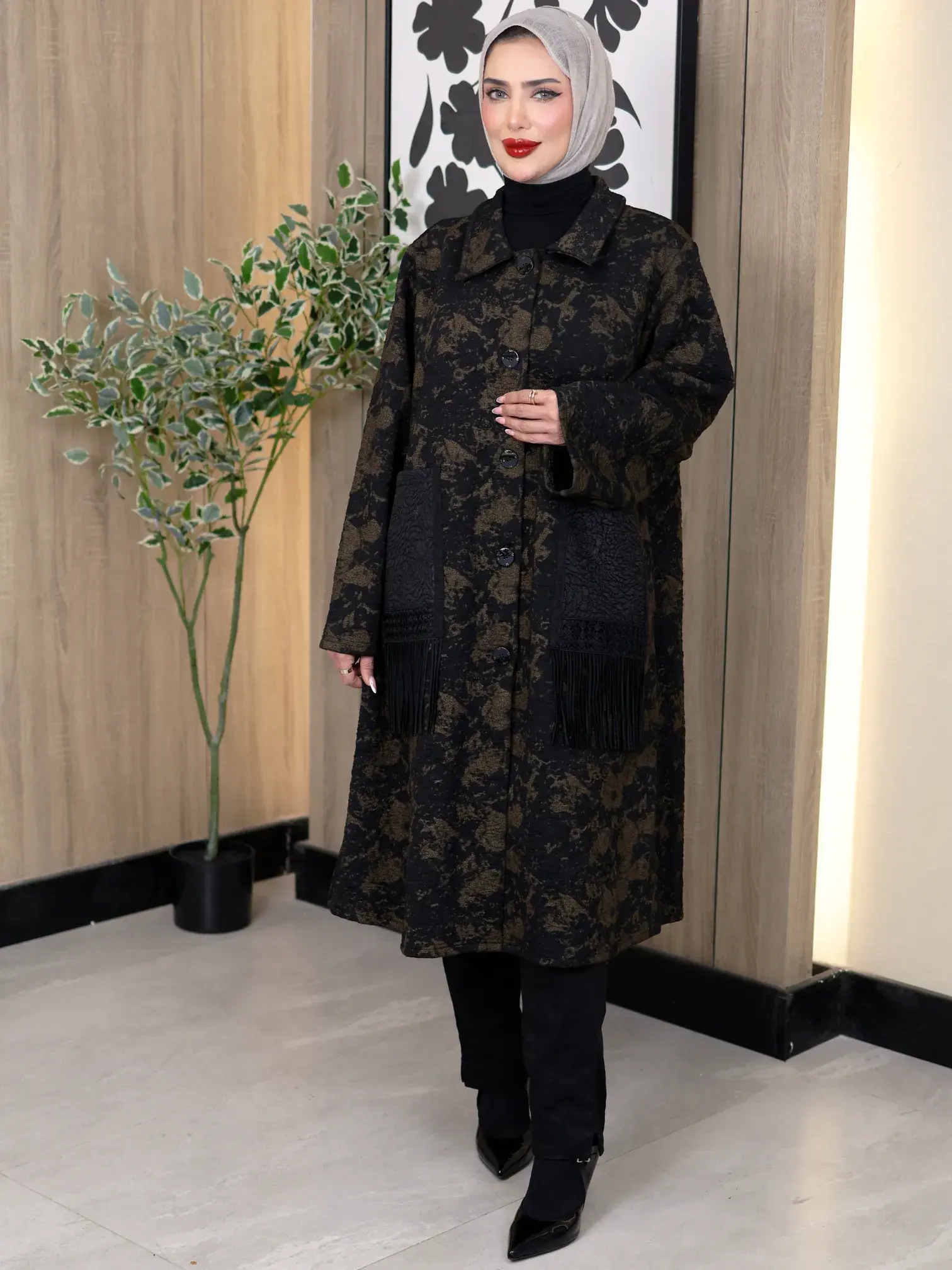 الرئيسيةجاكيت طويل بجيوب وألوان مموجةجاكيت طويل بجيوب وألوان مموجةبلاك وايت0الوصفجاكيت طويل نسائي من خام القطن الستريتش بألوان مموجة مع جيبين مزينين بالورد والخيوط المنسدلة. تصميم فني فريد يجمع بين الراحة والأناقة المتميزة، ليضيف لمسة جمالية استثنائية لإطلالتكاللونزيتيذهبي