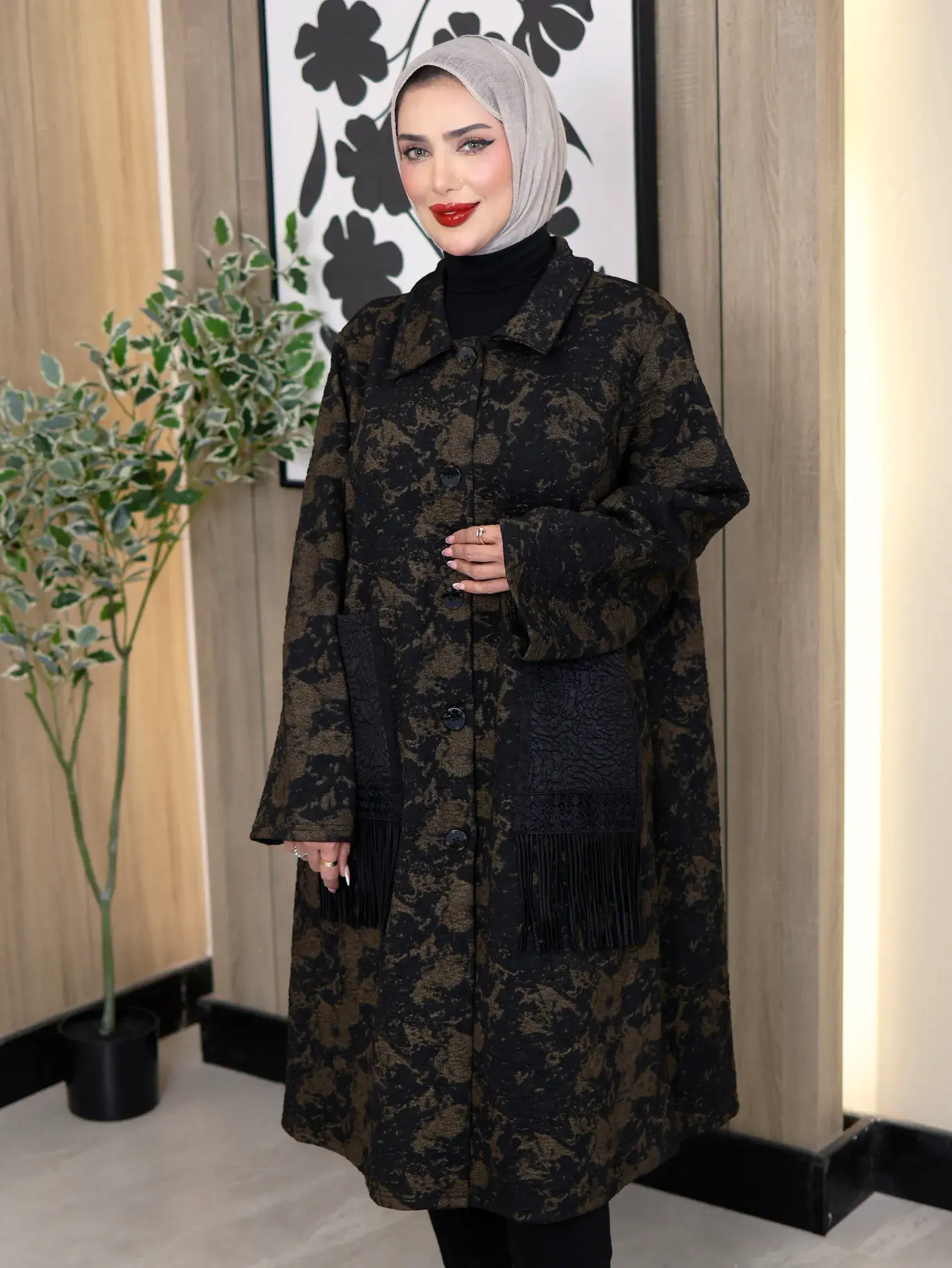 الرئيسيةجاكيت طويل بجيوب وألوان مموجة-ذهبي-FSجاكيت طويل بجيوب وألوان مموجة-ذهبي-FSبلاك وايت0الوصفجاكيت طويل نسائي من خام القطن الستريتش بألوان مموجة مع جيبين مزينين بالورد والخيوط المنسدلة. تصميم فني فريد يجمع بين الراحة والأناقة المتميزة، ليضيف لمسة جمالية استثنائية لإطلالتك