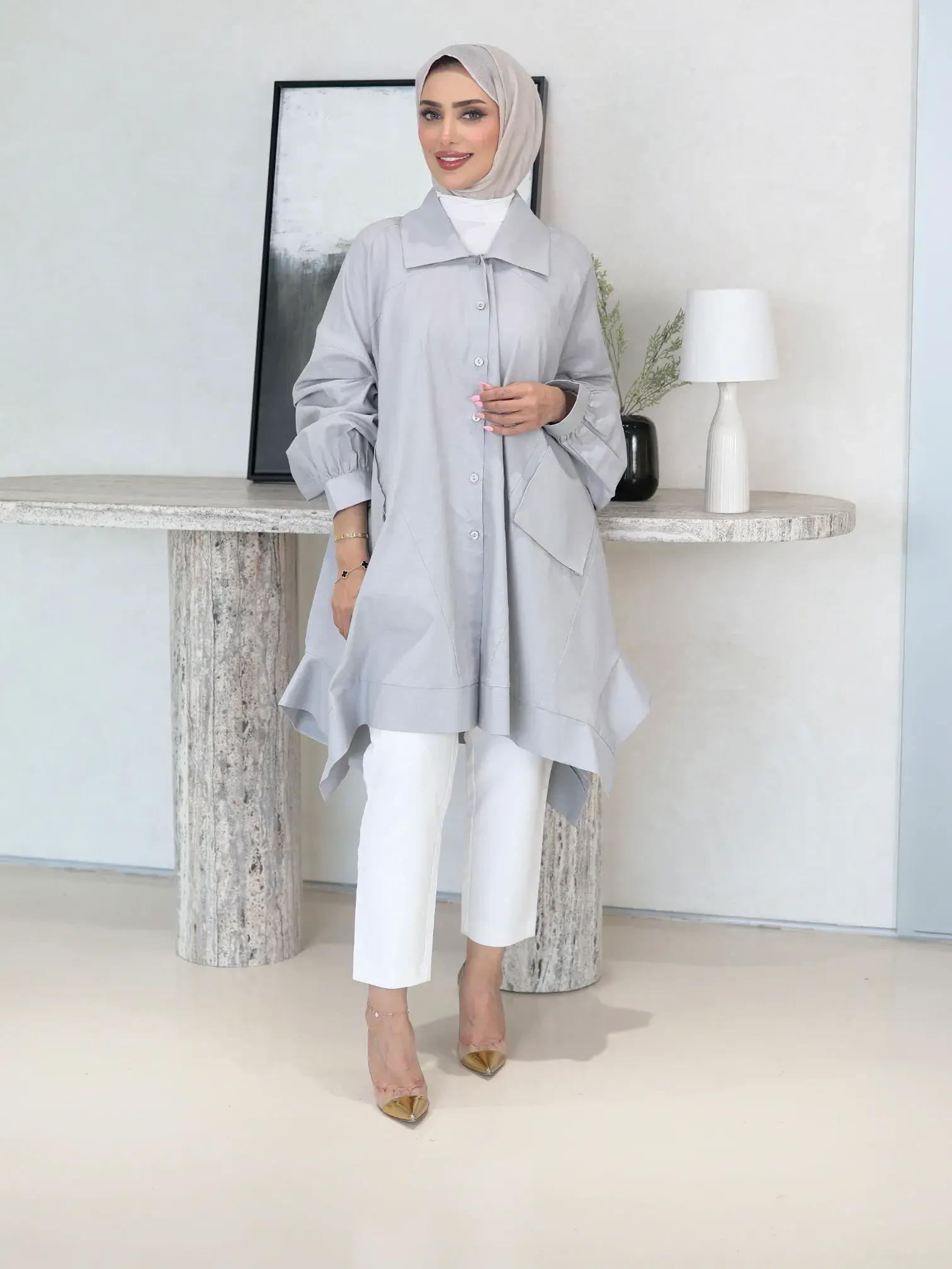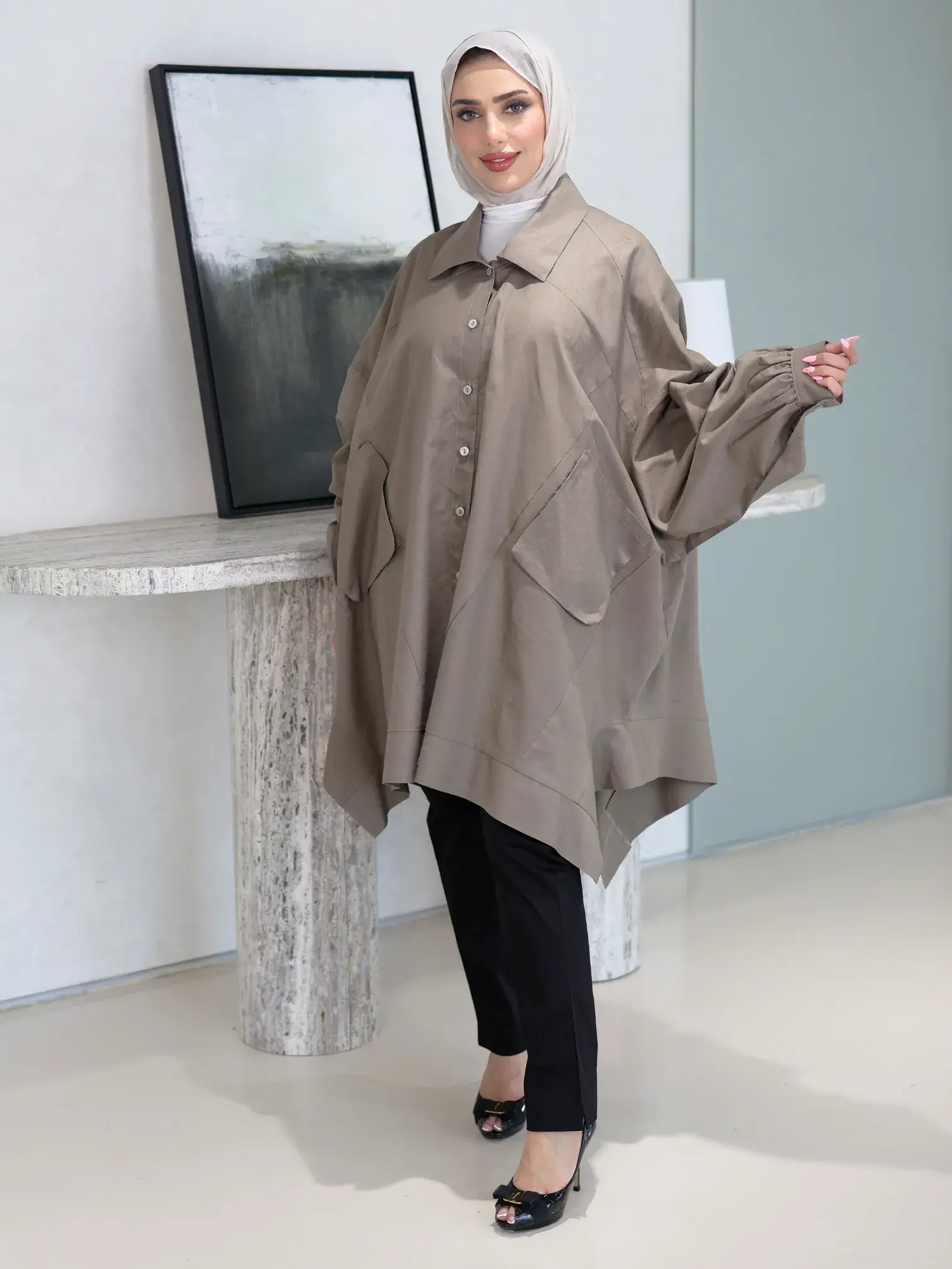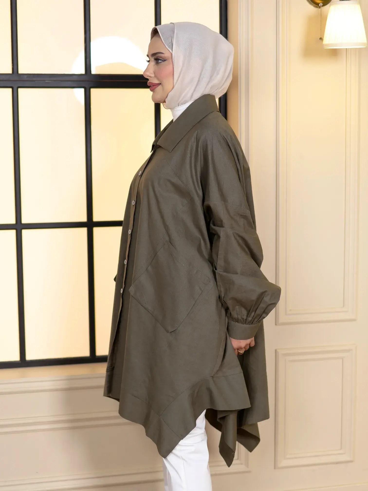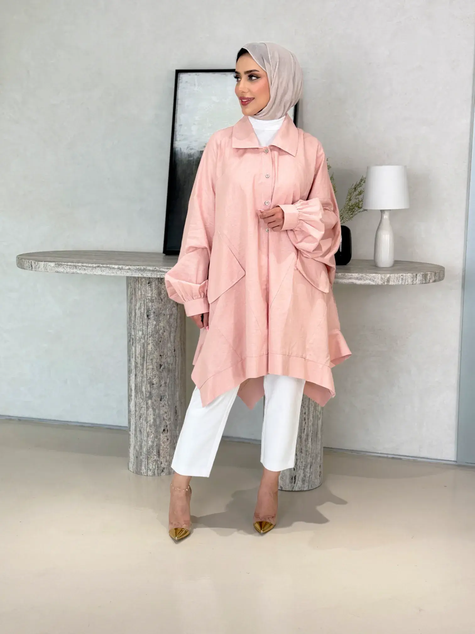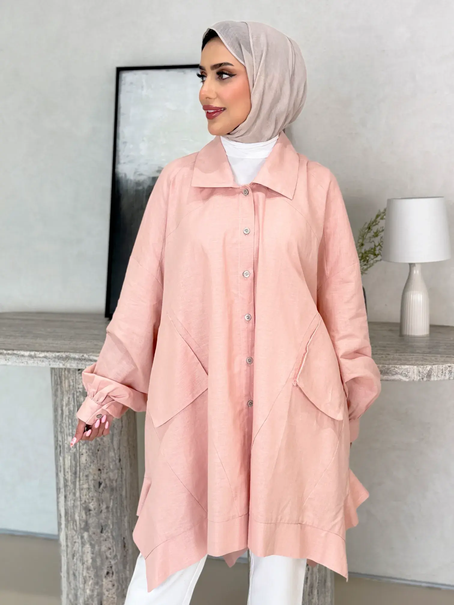 الرئيسيةقميص طويل من اللنن المميزقميص طويل من اللنن المميزبلاك وايت0الوصفقميص نسائي طويل وفضفاض من قماش اللنن السادة، يتميز بتصميم أنيق مع جيوب عملية، ليضفي لمسة من الأناقة والراحةاللونزيتيورديبيج كمونيرصاصياسود