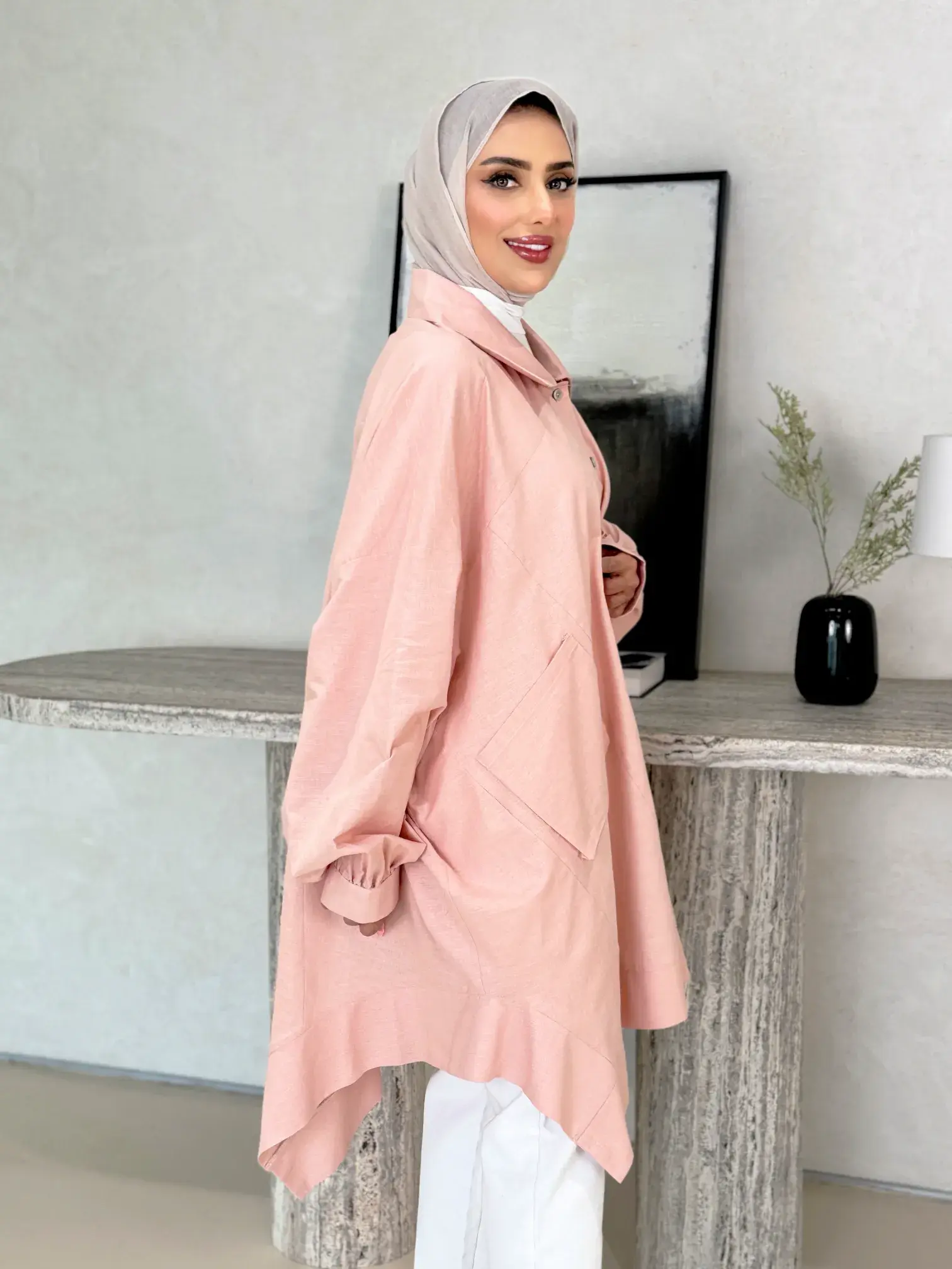 الرئيسيةقميص طويل من اللنن المميز - وردي - FSقميص طويل من اللنن المميز - وردي - FSبلاك وايت0الوصفقميص نسائي طويل وفضفاض من قماش اللنن السادة، يتميز بتصميم أنيق مع جيوب عملية، ليضفي لمسة من الأناقة والراحة