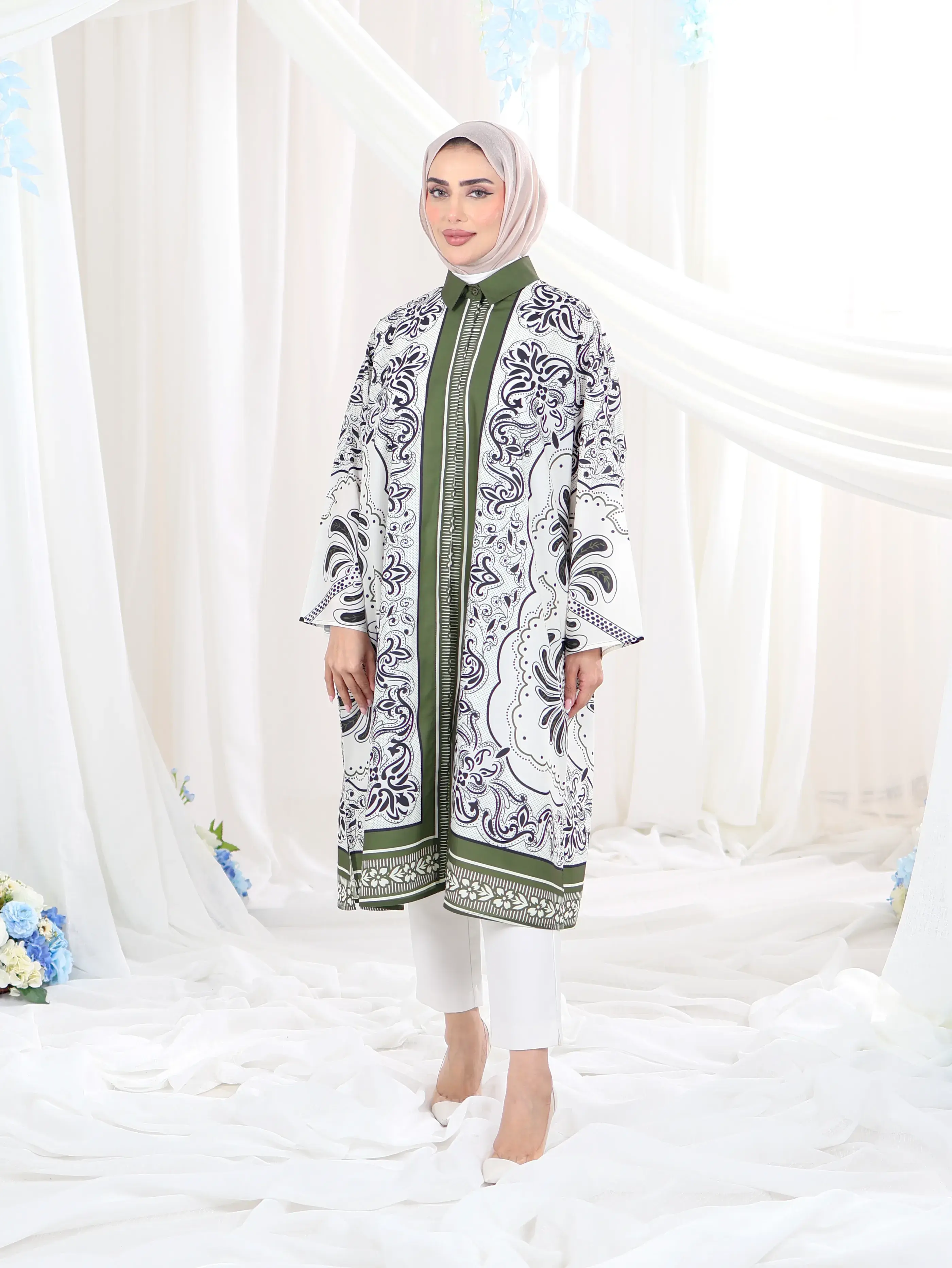 متجر ملابس محجبات وإكسسوارات | بلاك وايت | قميص طويل من القطن الفاخر