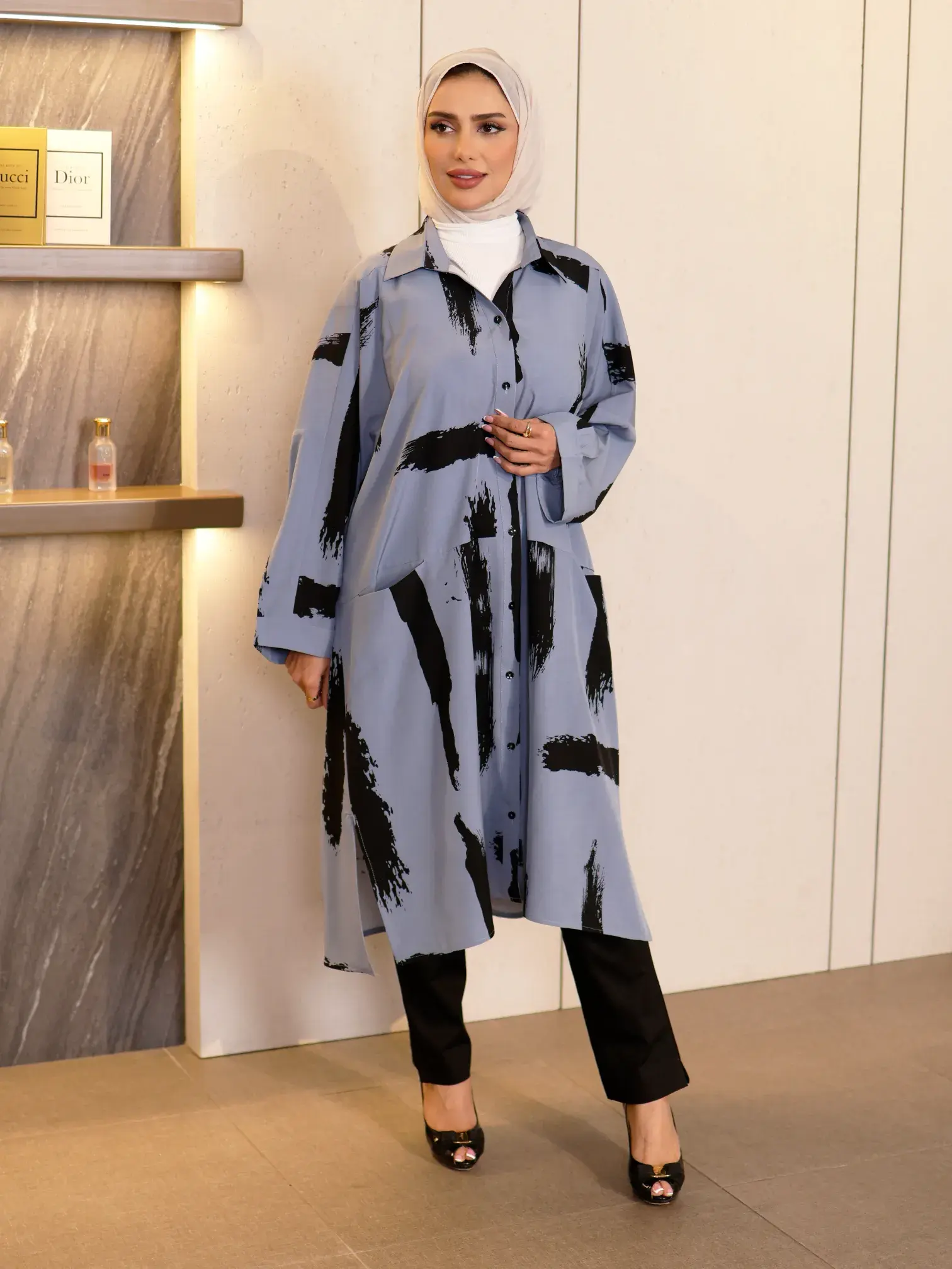 الرئيسيةقميص طويل من الكريب الفاخر - سماوي - FSقميص طويل من الكريب الفاخر - سماوي - FSبلاك وايت0الوصفقميص نسائي طويل وفضفاض من قماش الكريب، يتميز بجيوب أمامية ليمنحك إطلالة عصرية ومريحة