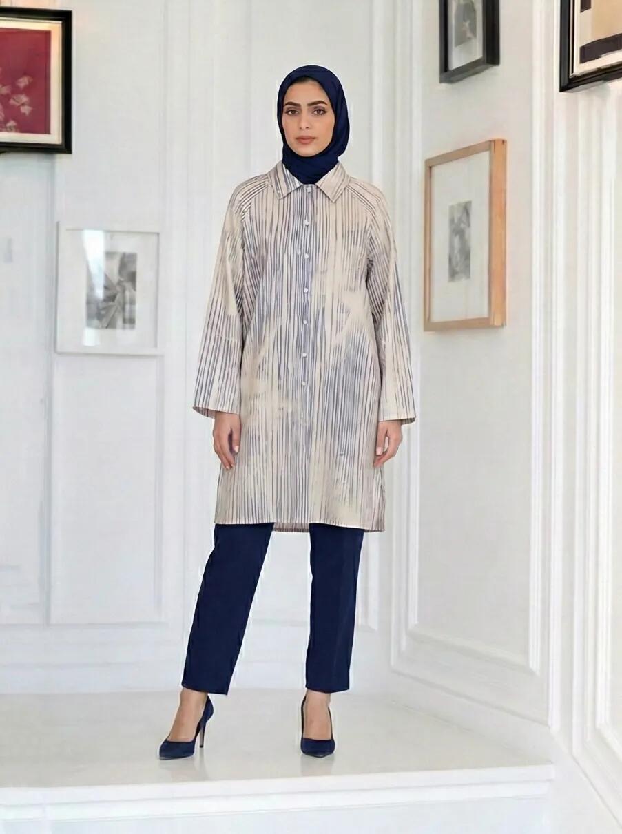 الرئيسيةقميص طويل من القطن البارد-ازرق مقلم-FSقميص طويل من القطن البارد-ازرق مقلم-FSبلاك وايت0الوصفقميص نسائي بتصميم "فضفاض" من القطن البارد المريح، يأتي بنقش خطوط متداخلة يضفي على إطلالتك لمسة عصرية ومميزة