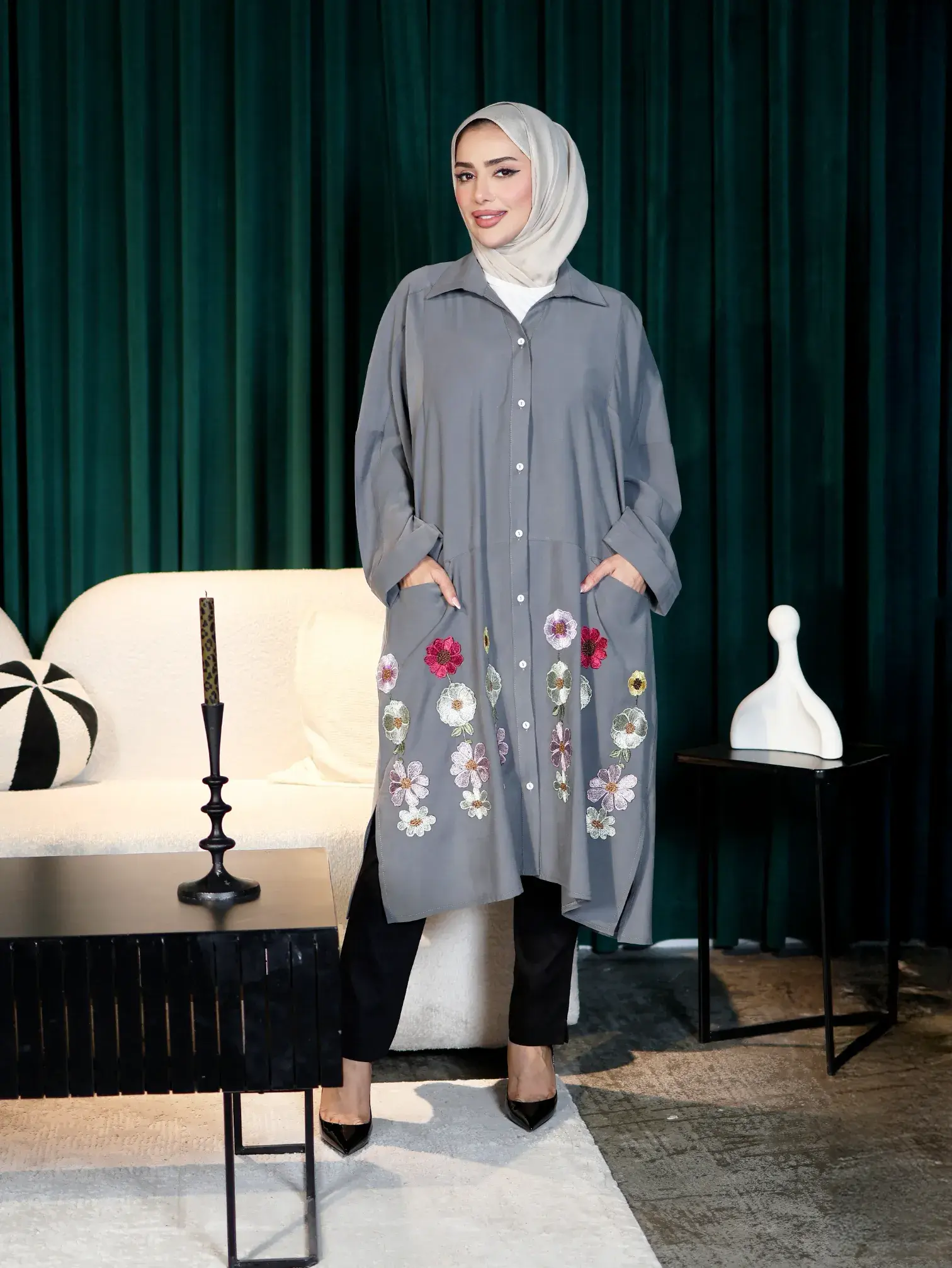 الرئيسيةقميص طويل من التنسل الناعم-رمادي غامق-FSقميص طويل من التنسل الناعم-رمادي غامق-FSبلاك وايت0الوصفقميص طويل نسائي من خام التنسل بقصة واسعة، يتميز بوجود مخابي بمنتصف القميص وورد مثبت بشكل يدوي في الأسفل. قطعة أنيقة وعملية تضفي لمسة فنية فريدة إلى مظهرك