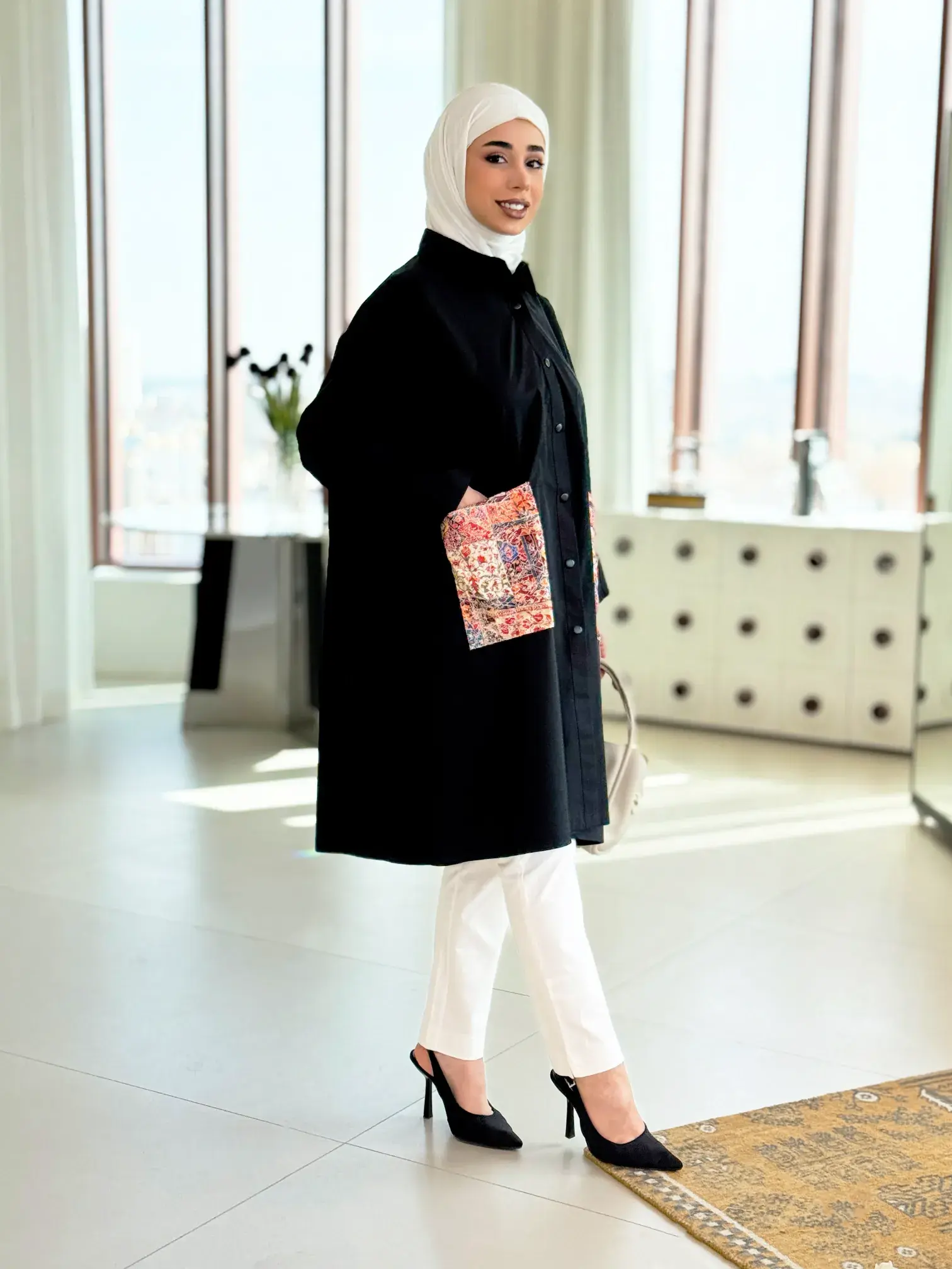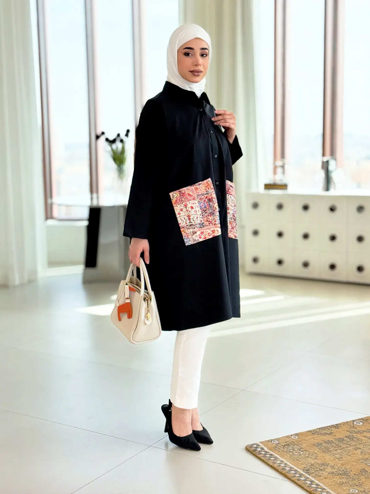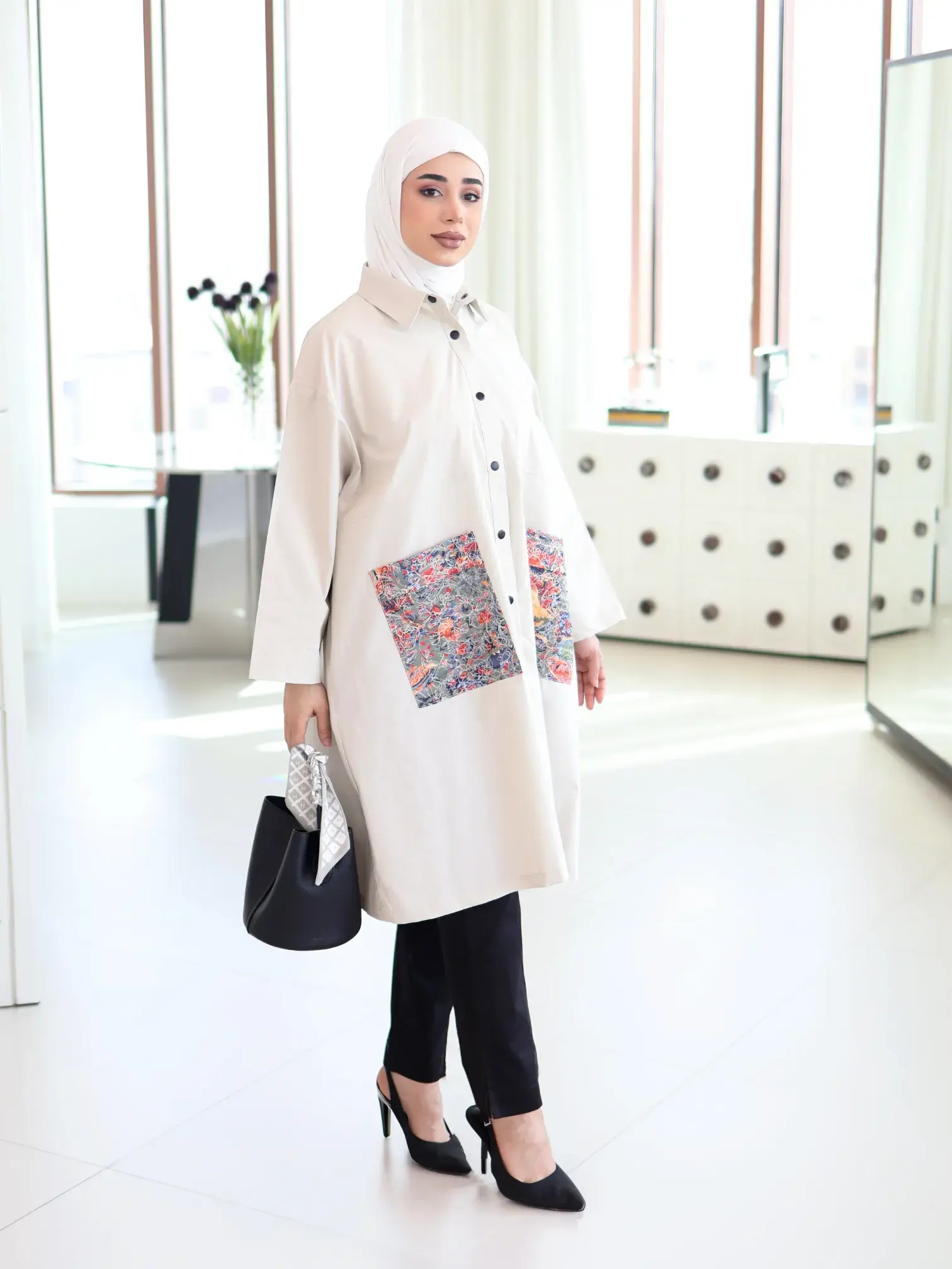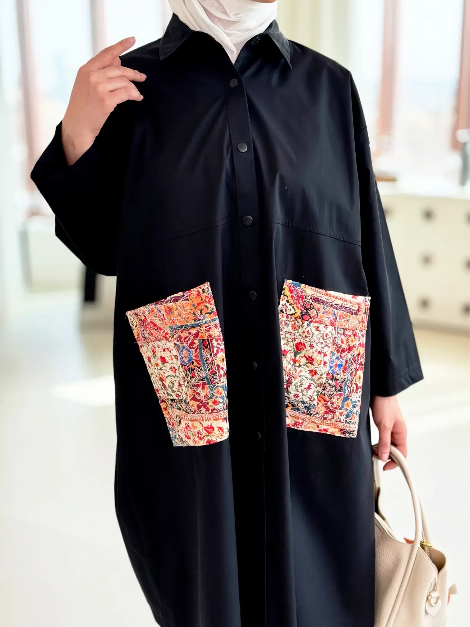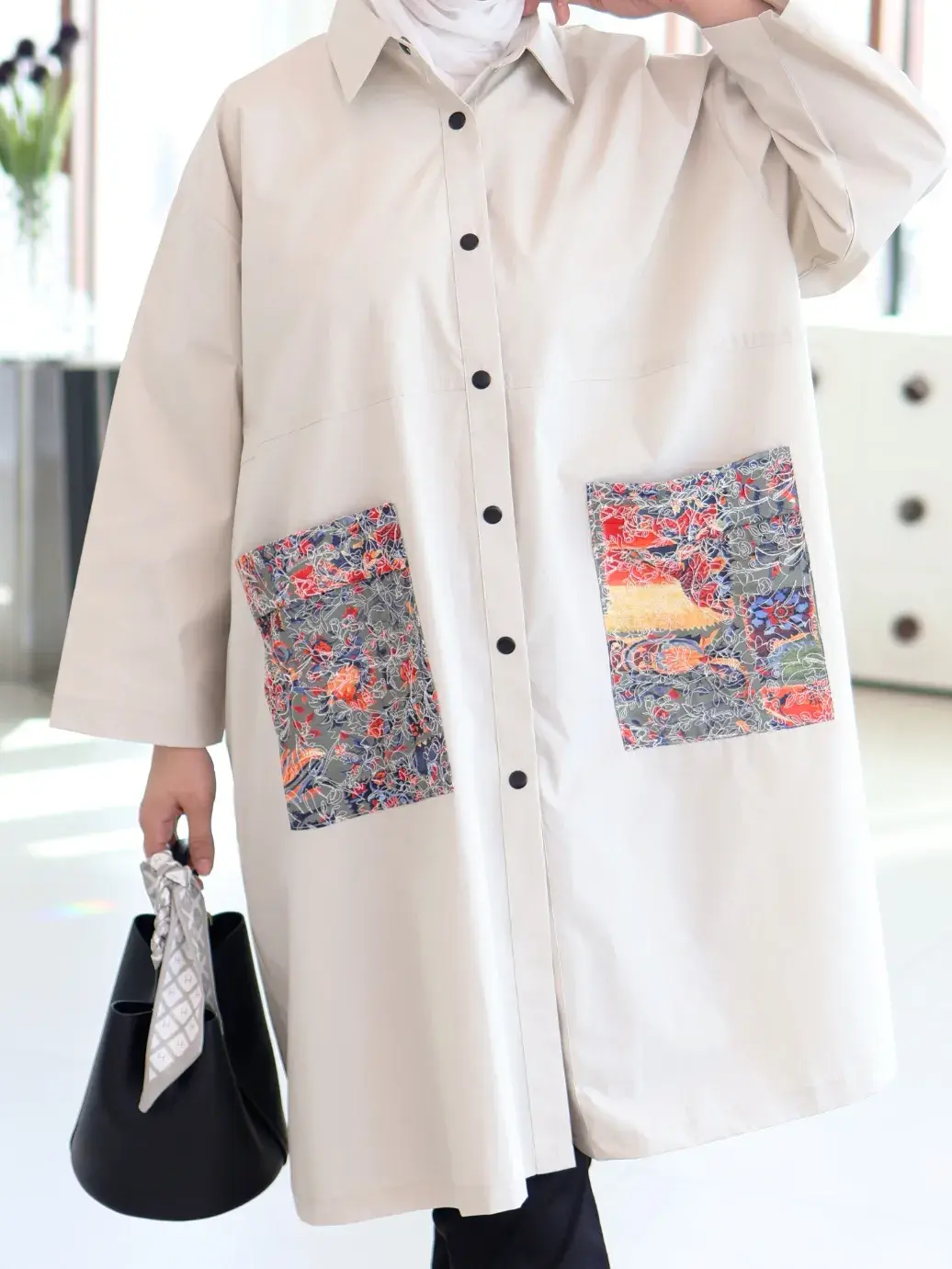 الرئيسيةقميص طويل بجيوب مشجرةقميص طويل بجيوب مشجرةبلاك وايت0الوصفقميص نسائي طويل من القطن بقصة واسعة سادة، يتميز بجيوب عريضة مشجرة بتطريز أبيض أنيق وأزرار كبس عملية، مع لمسة مميزة من الكسرات الناعمة بخط عريض على الظهر؛ ليكون خياركِ الأمثل لإطلالة مريحة وعصريةاللونبيجاسود