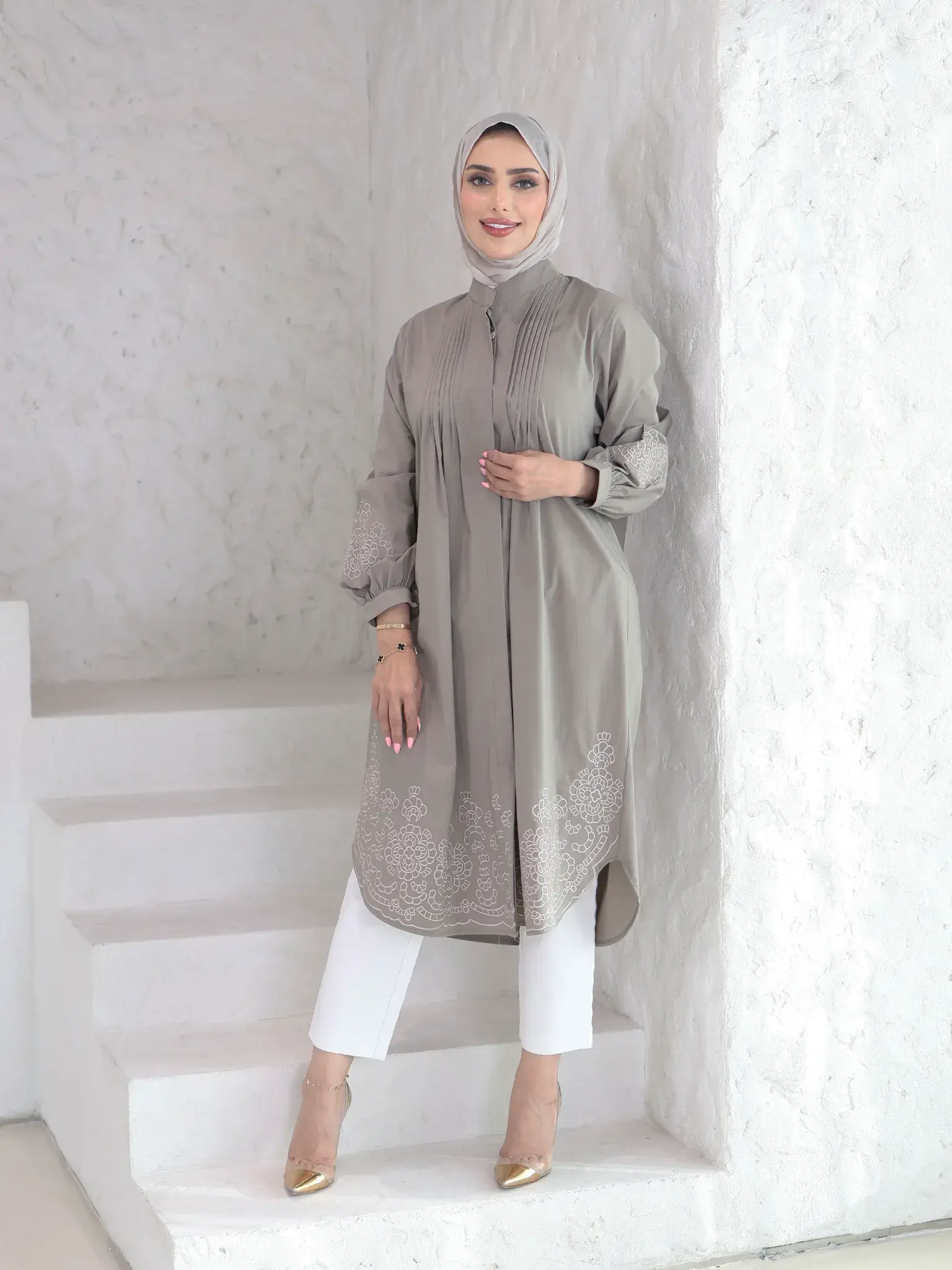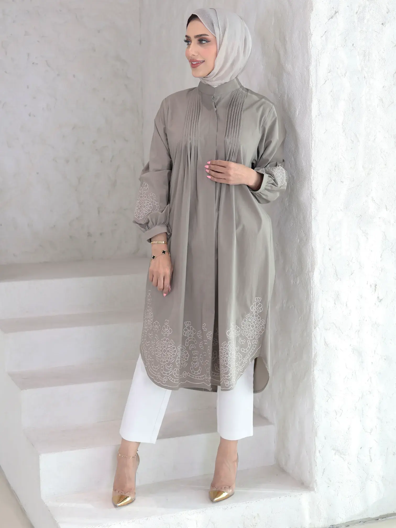 الرئيسيةقميص طويل بكسرات على الصدر - بيج ترابي - 4قميص طويل بكسرات على الصدر - بيج ترابي - 4بلاك وايت0الوصفقميص نسائي طويل من قطن بوبلين، يتميز بكسرات أنيقة على الصدر وتطريزات دقيقة على الأكمام وأسفل القميص، مما يضفي لمسة من الأناقة والجمال⚡ بادر الآن! فقط 2 القطع المتاحة