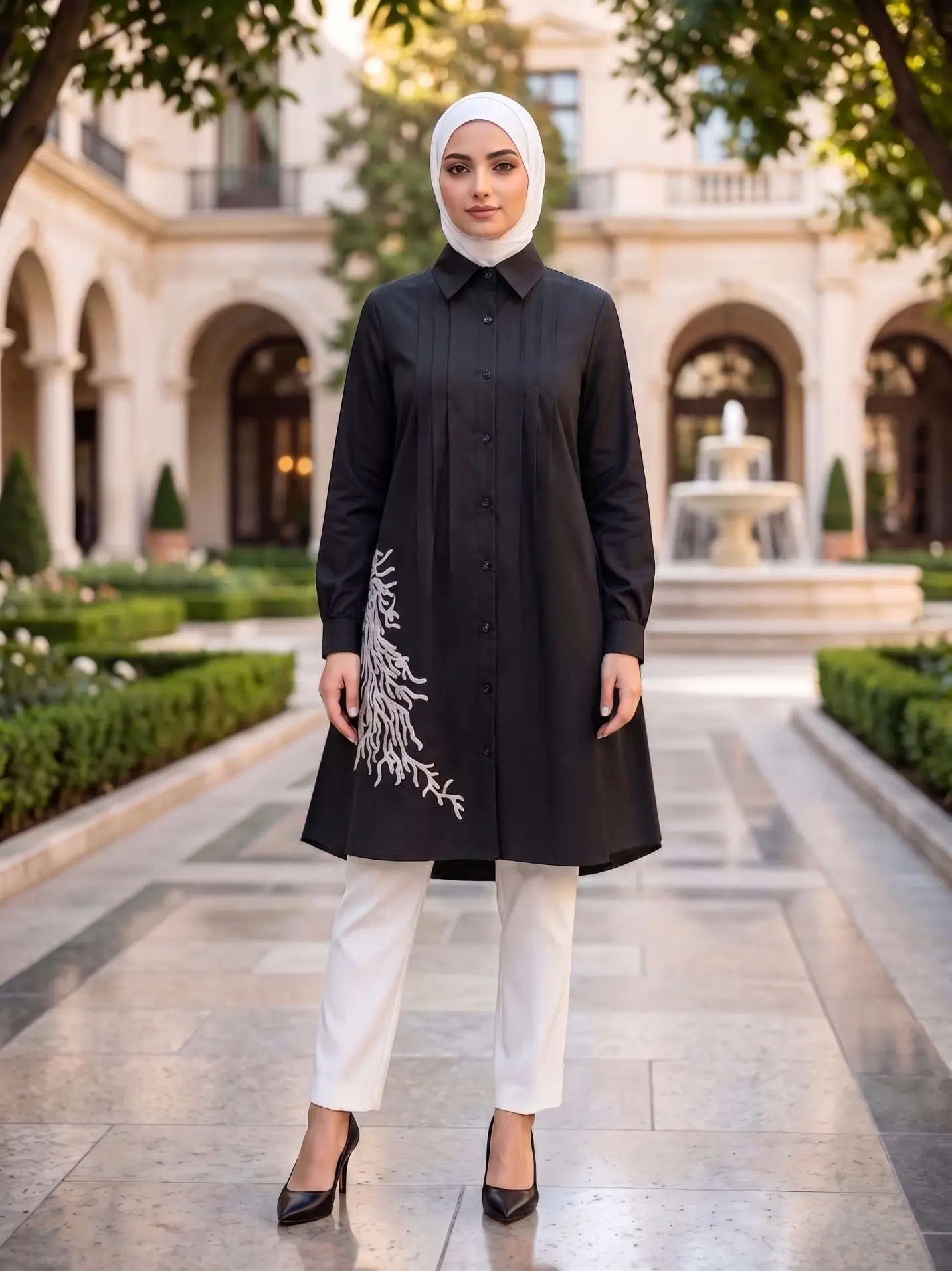 الرئيسيةقميص طويل بكسرات ناعمةقميص طويل بكسرات ناعمةبلاك وايت0الوصفقميص طويل نسائي من قطن البوبلين يتميز بكسرات ناعمة على الصدر وتطريزات متقنة أسفل القميص تأتي على شكل أغصان شجر ليمنحكِ مظهراً متألقاً وعملياًاللونزيتياسودالقياس1234