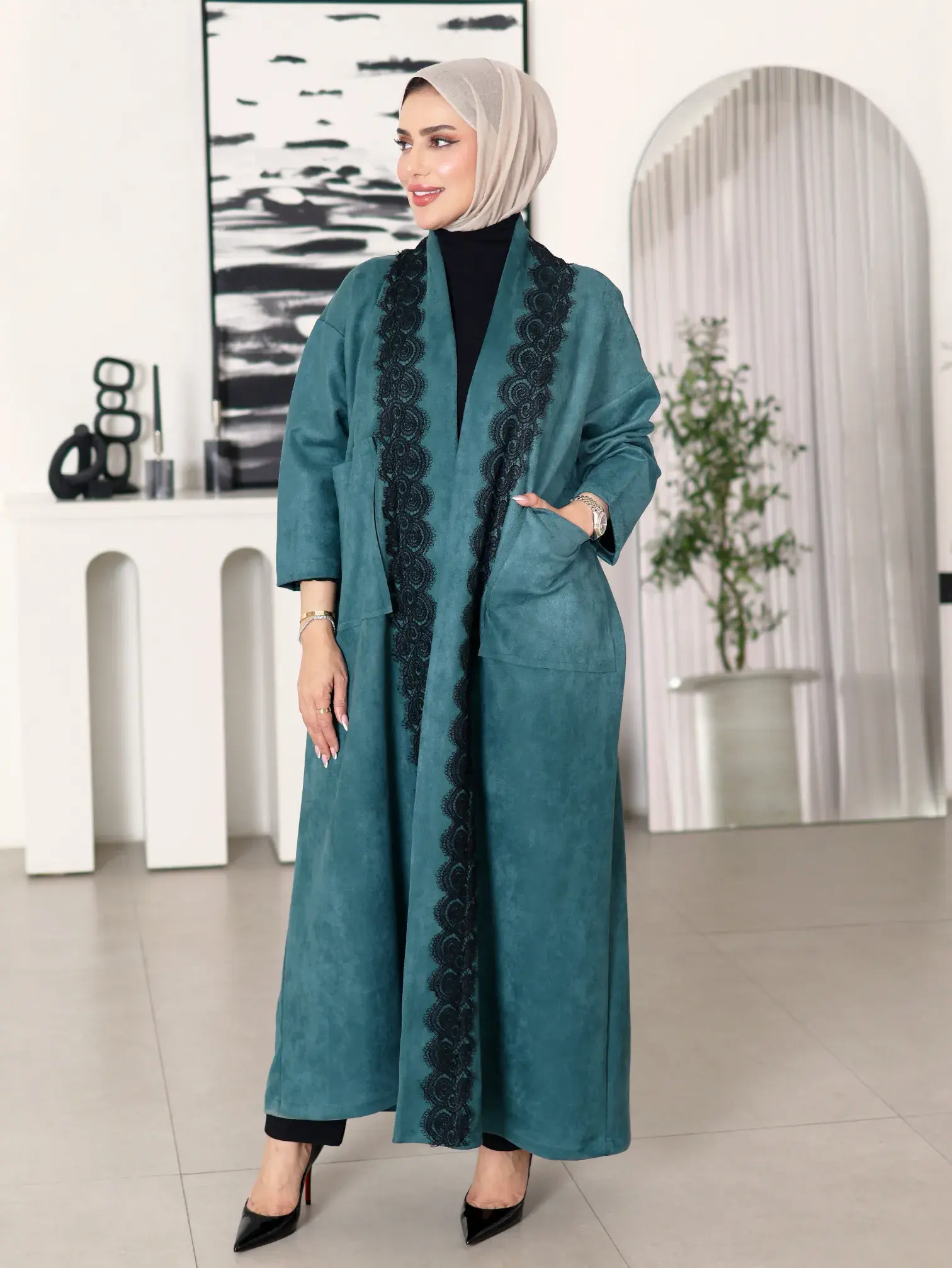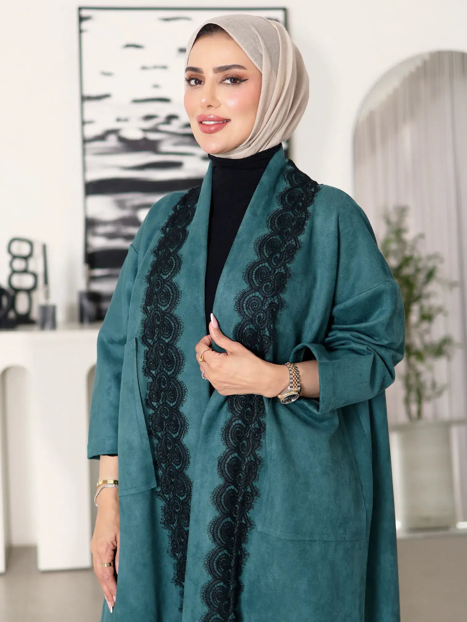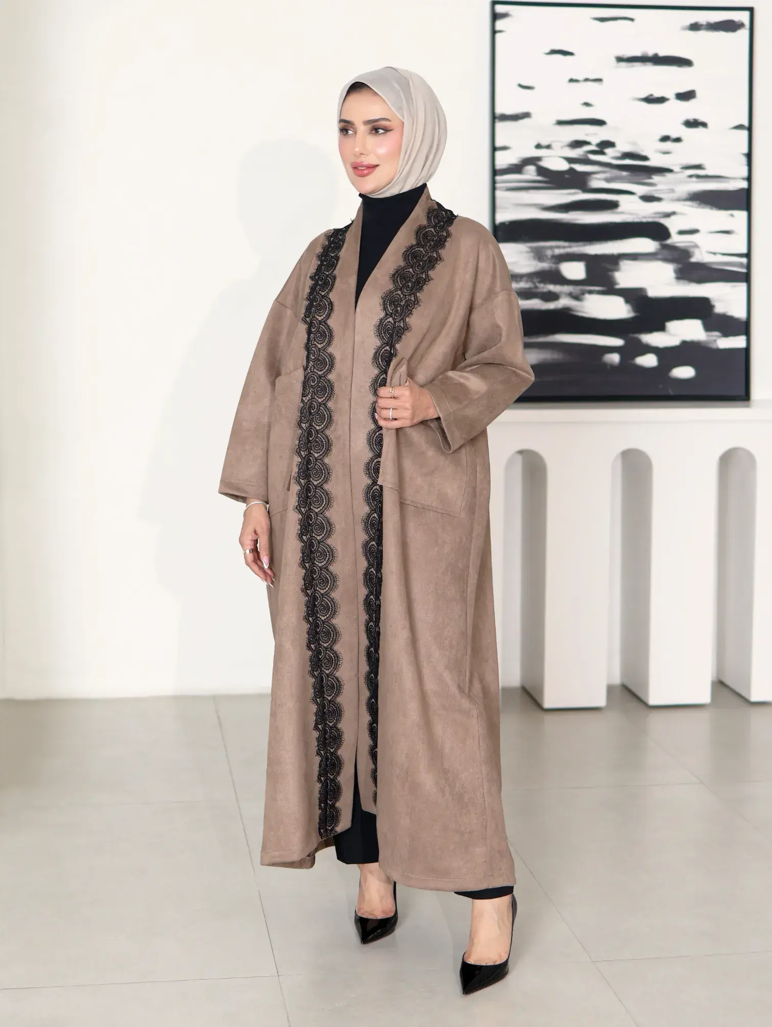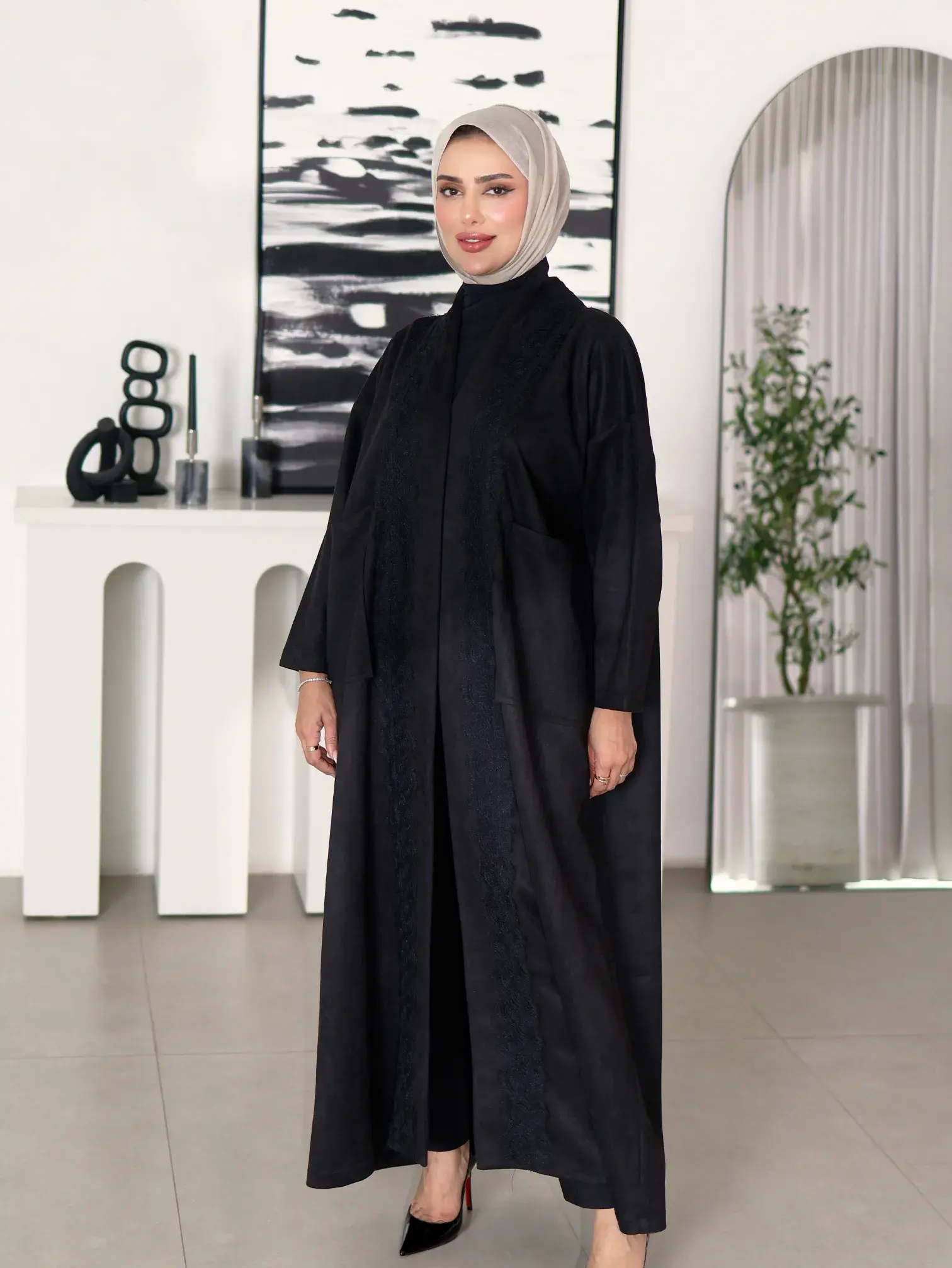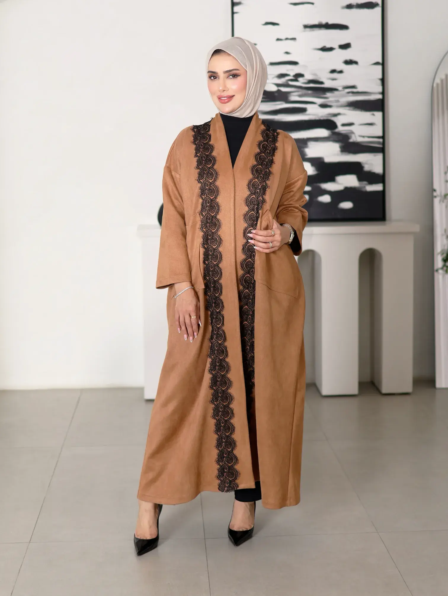 الرئيسيةجاكيت طويل من الشامواهجاكيت طويل من الشامواهبلاك وايت0الوصفجاكيت طويل نسائي من خامة الشامواه بتصميم مستوحى من البشت، مزين بالدانتيل الأسود ومزوّد بجيوب عملية. قطعة فاخرة تمنحك حضورًا ملكيًا وإطلالة راقية بكل تفاصيلهااللونبيجعسليبترولياسود