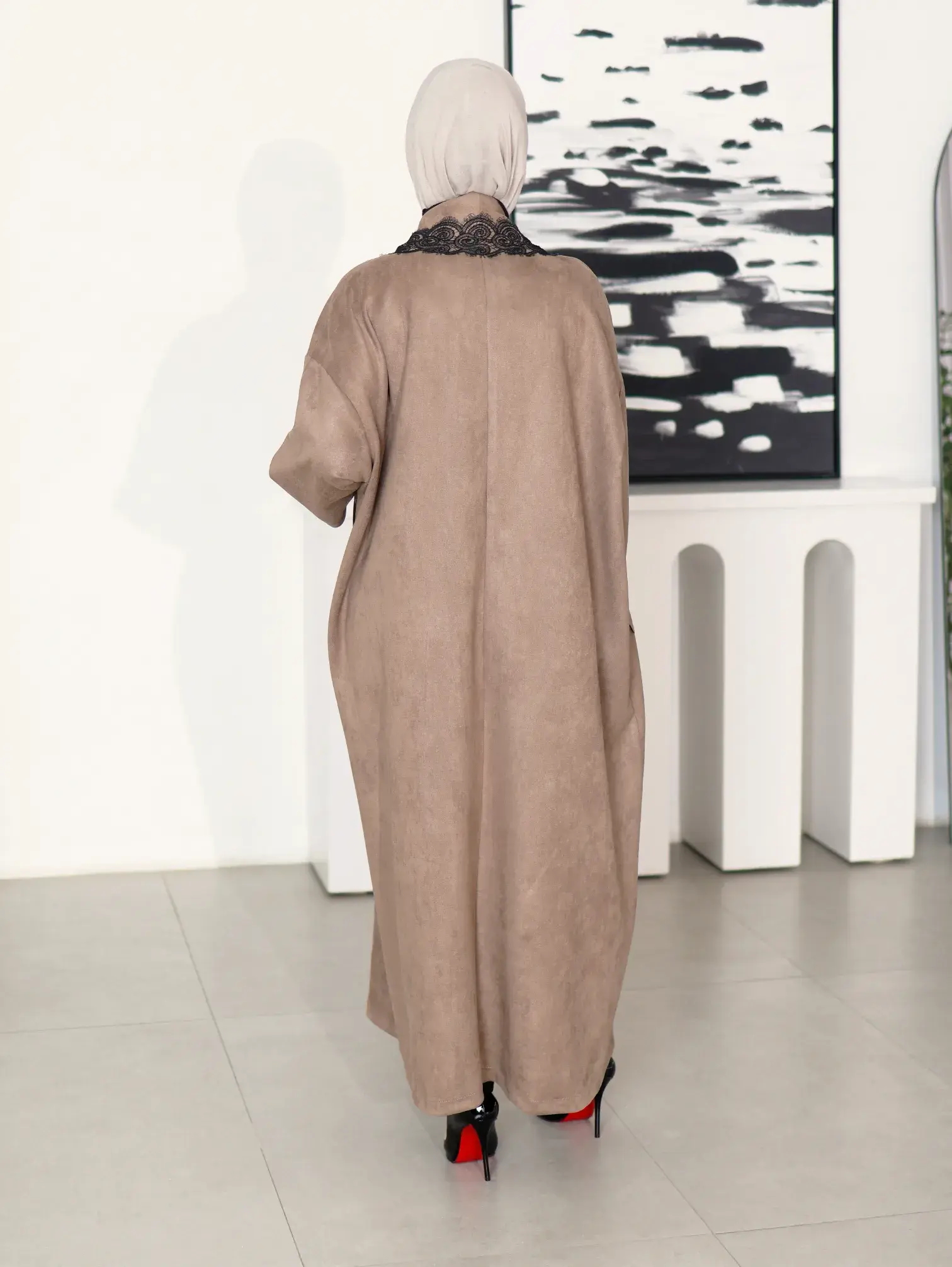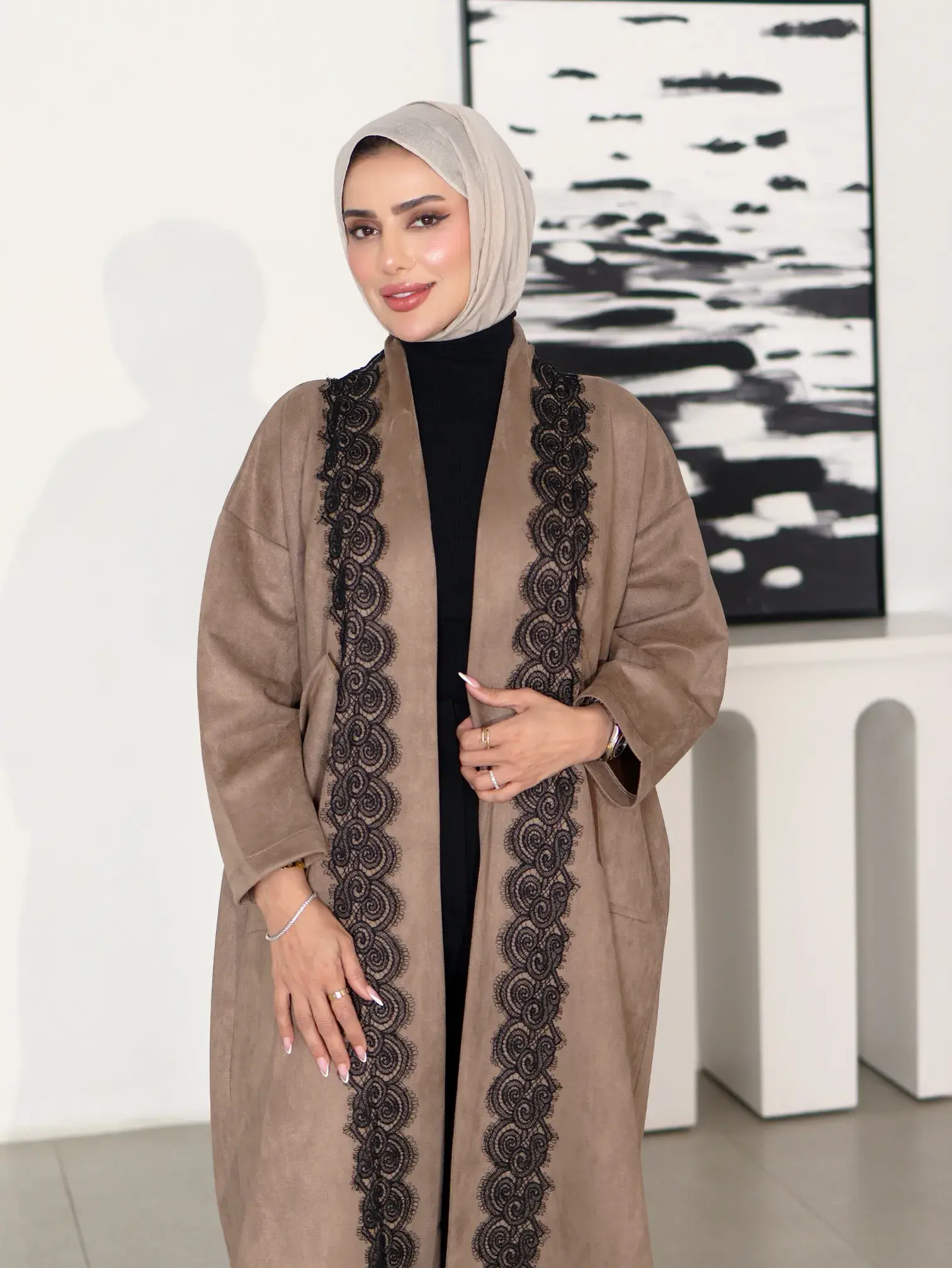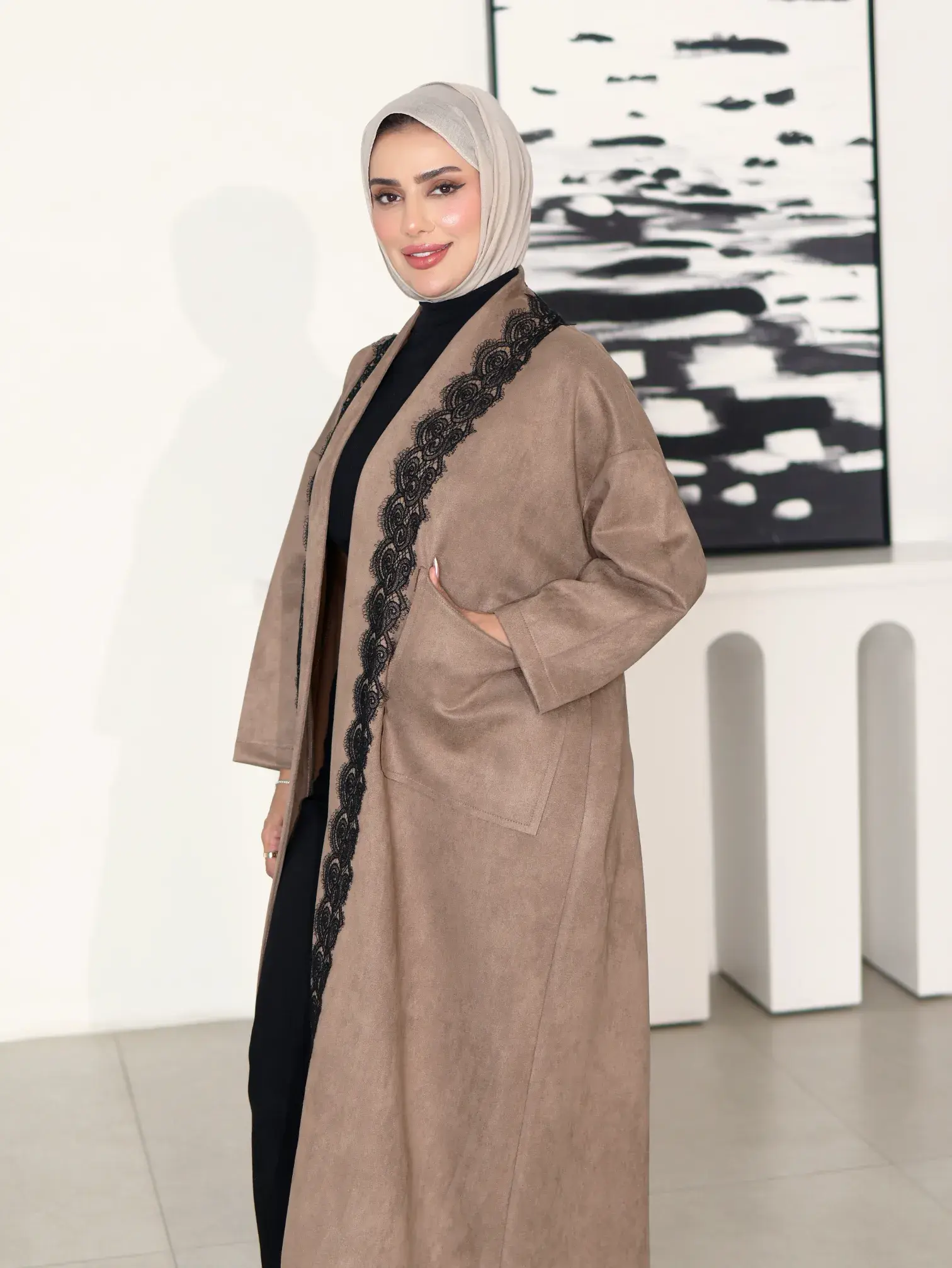 الرئيسيةجاكيت طويل من الشامواه-بيج-FSجاكيت طويل من الشامواه-بيج-FSبلاك وايت0الوصفجاكيت طويل نسائي من خامة الشامواه بتصميم مستوحى من البشت، مزين بالدانتيل الأسود ومزوّد بجيوب عملية. قطعة فاخرة تمنحك حضورًا ملكيًا وإطلالة راقية بكل تفاصيلها