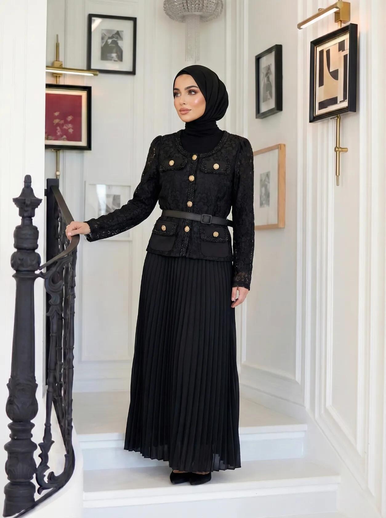 الرئيسيةفستان فاخر من الكريب والدانتيلفستان فاخر من الكريب والدانتيلبلاك وايت0الوصففستان نسائي يجمع بين فخامة خام الدانتيل في الجزء العلوي ونعومة تنورة الكريب المتميزة بكسراتها المنسدلة، مع حزام يحدد الخصر وياقة مزينة بشك يدوي دقيق. تصميم استثنائي يعكس ذوقك الرفيع ويمنحك حضورًا ملكيًا في أرقى المناسباتاللونسكرياسود