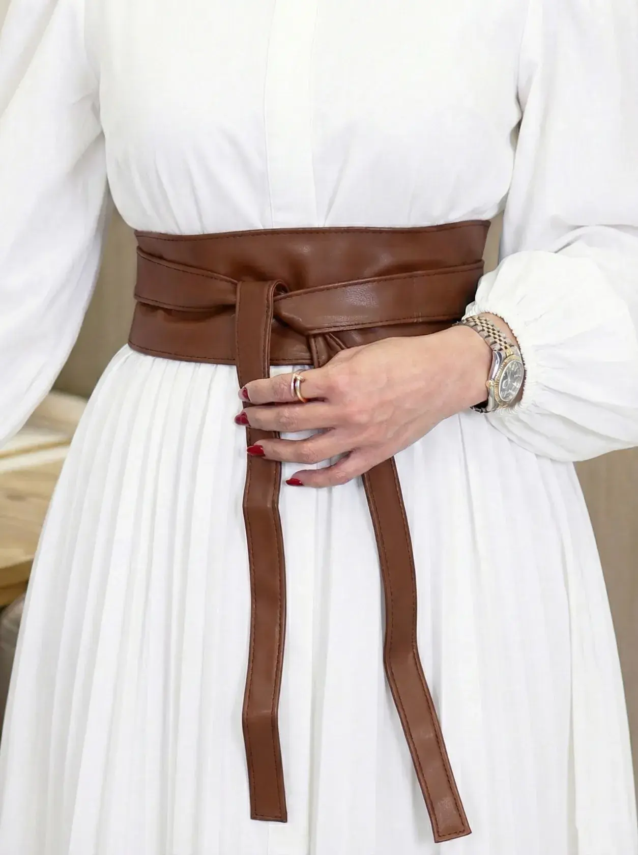 الرئيسيةحزام من الجلد الفاخر - بني - FSحزام من الجلد الفاخر - بني - FSبلاك وايت0الوصفحزام نسائي أنيق وعريض مصمم من الجلد الفاخر بأسلوب "اللف" العصري، يلتف حول الخصر بنعومة ليبرز جمال القوام ويضفي لمسة نهائية راقية ومميزة على إطلالتك