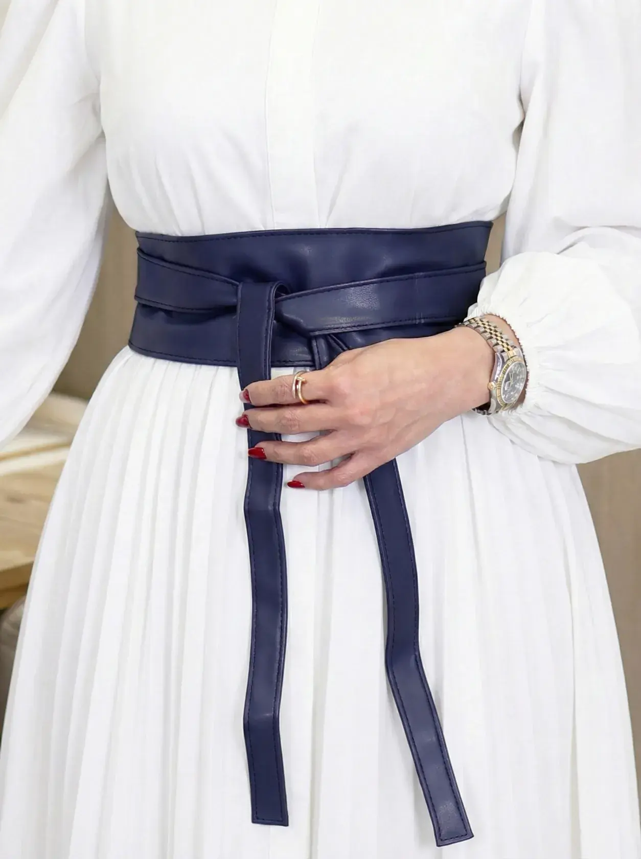 الرئيسيةحزام من الجلد الفاخر - كحلي - FSحزام من الجلد الفاخر - كحلي - FSبلاك وايت0الوصفحزام نسائي أنيق وعريض مصمم من الجلد الفاخر بأسلوب "اللف" العصري، يلتف حول الخصر بنعومة ليبرز جمال القوام ويضفي لمسة نهائية راقية ومميزة على إطلالتك